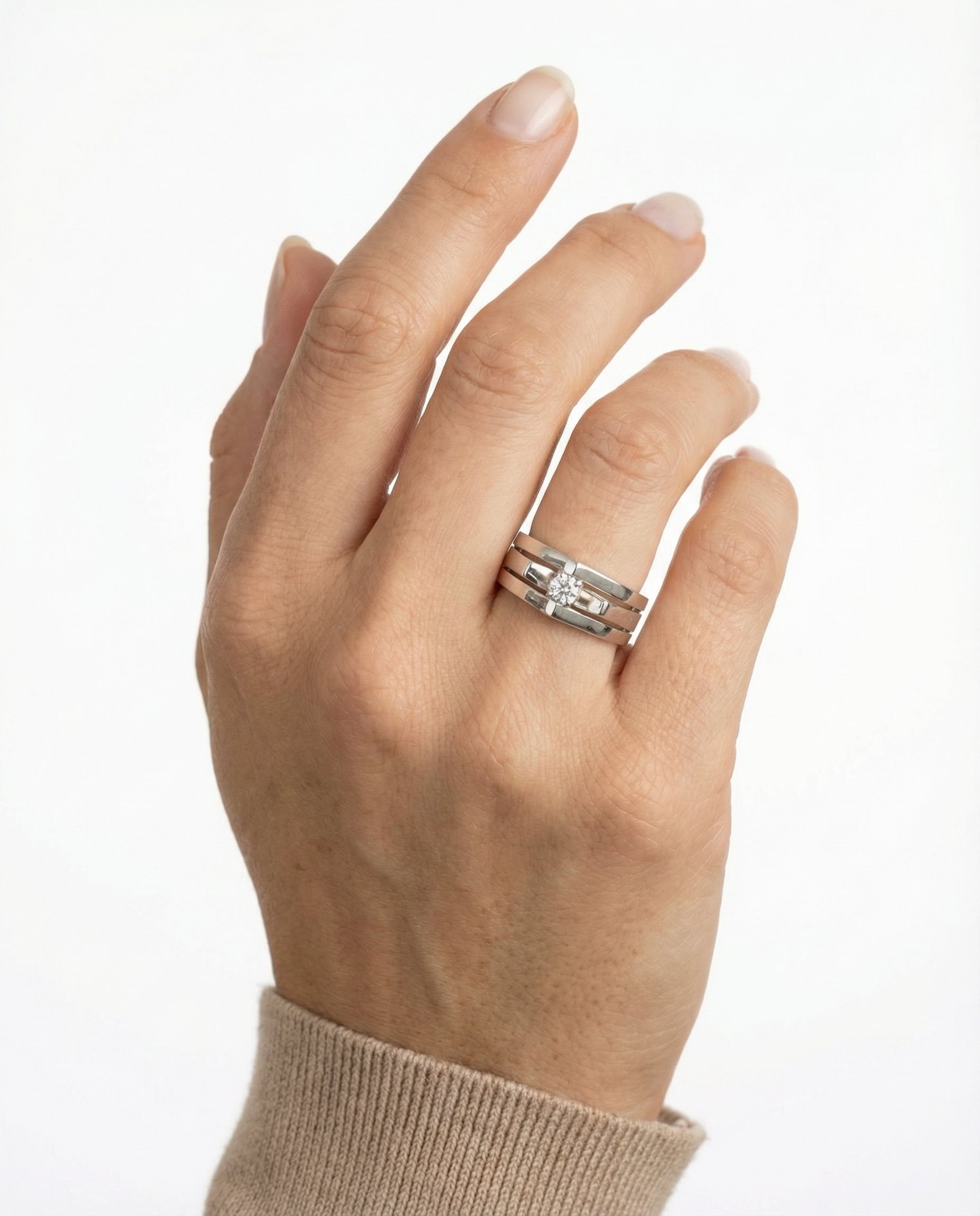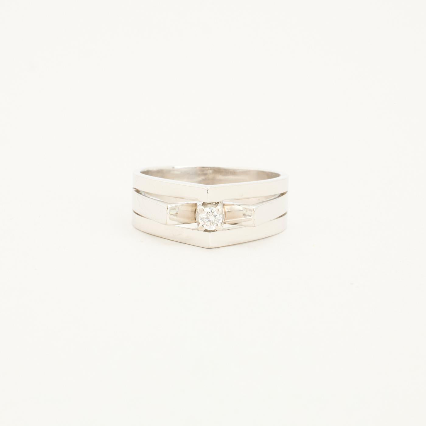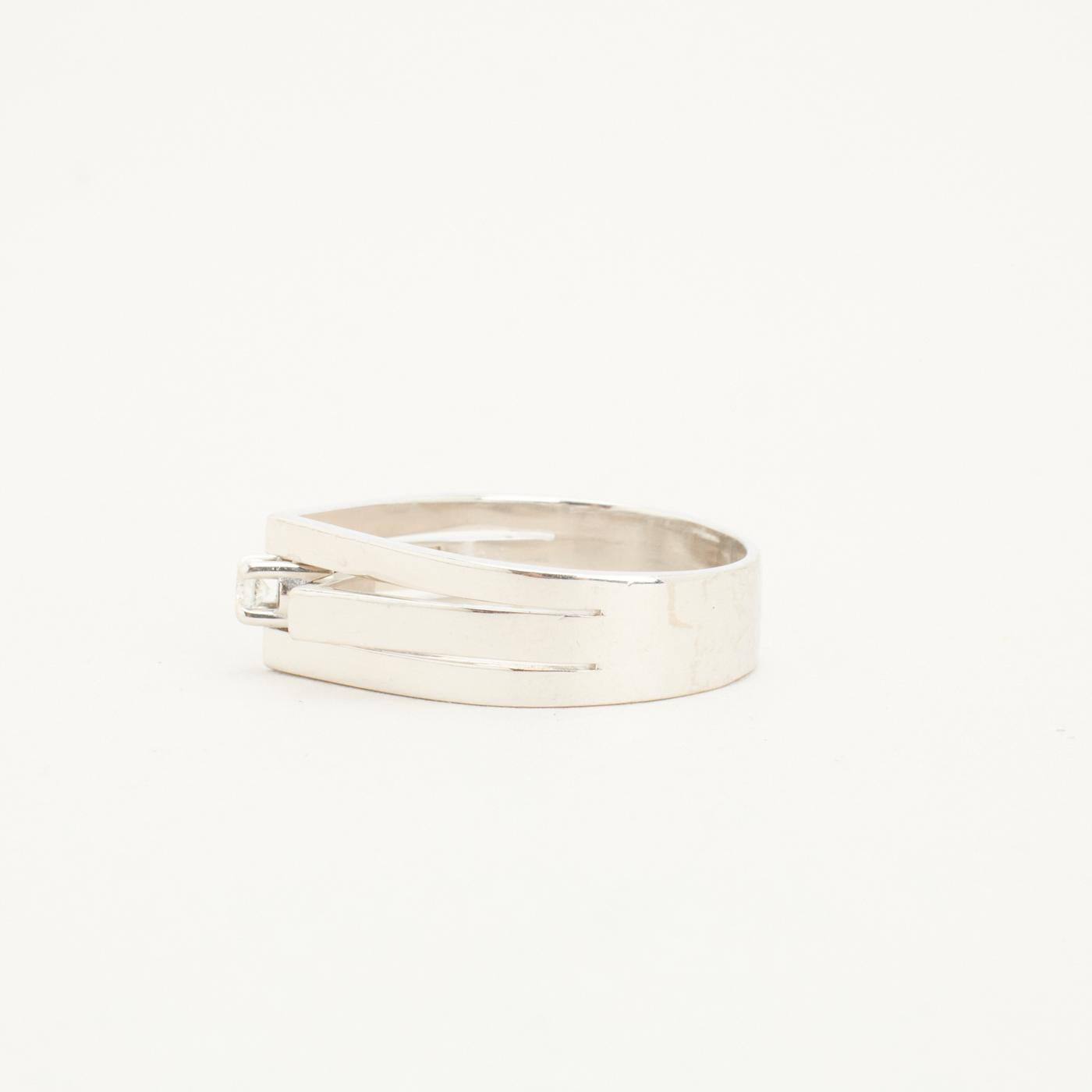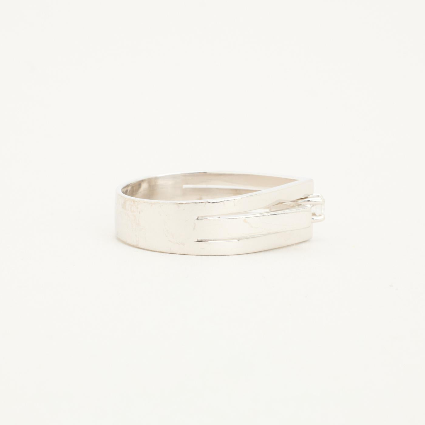 Geometrisk ring i 14K hvidguld med en diamant (0.08 ct), Str. 55