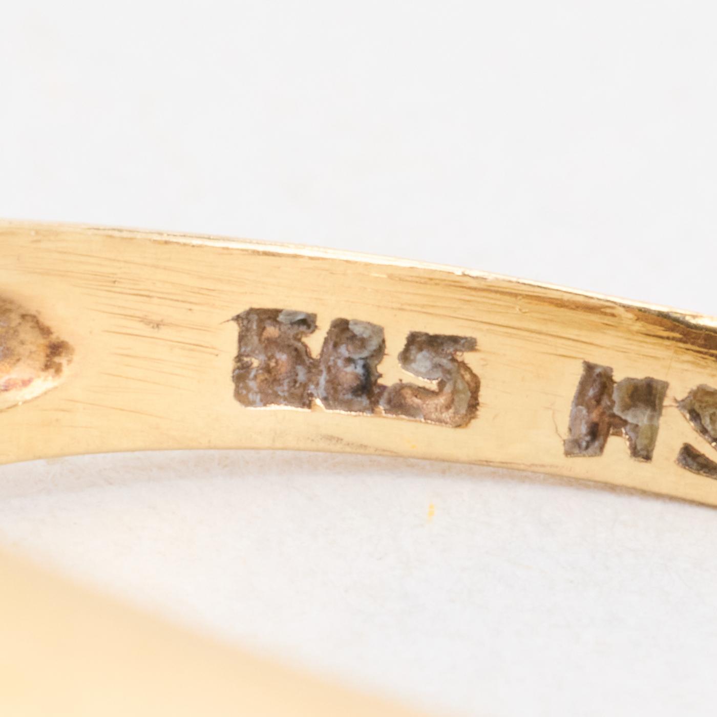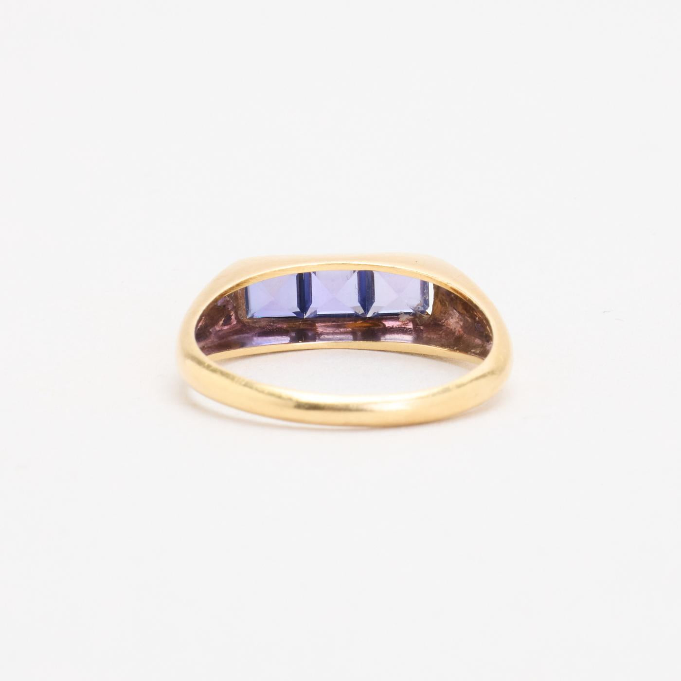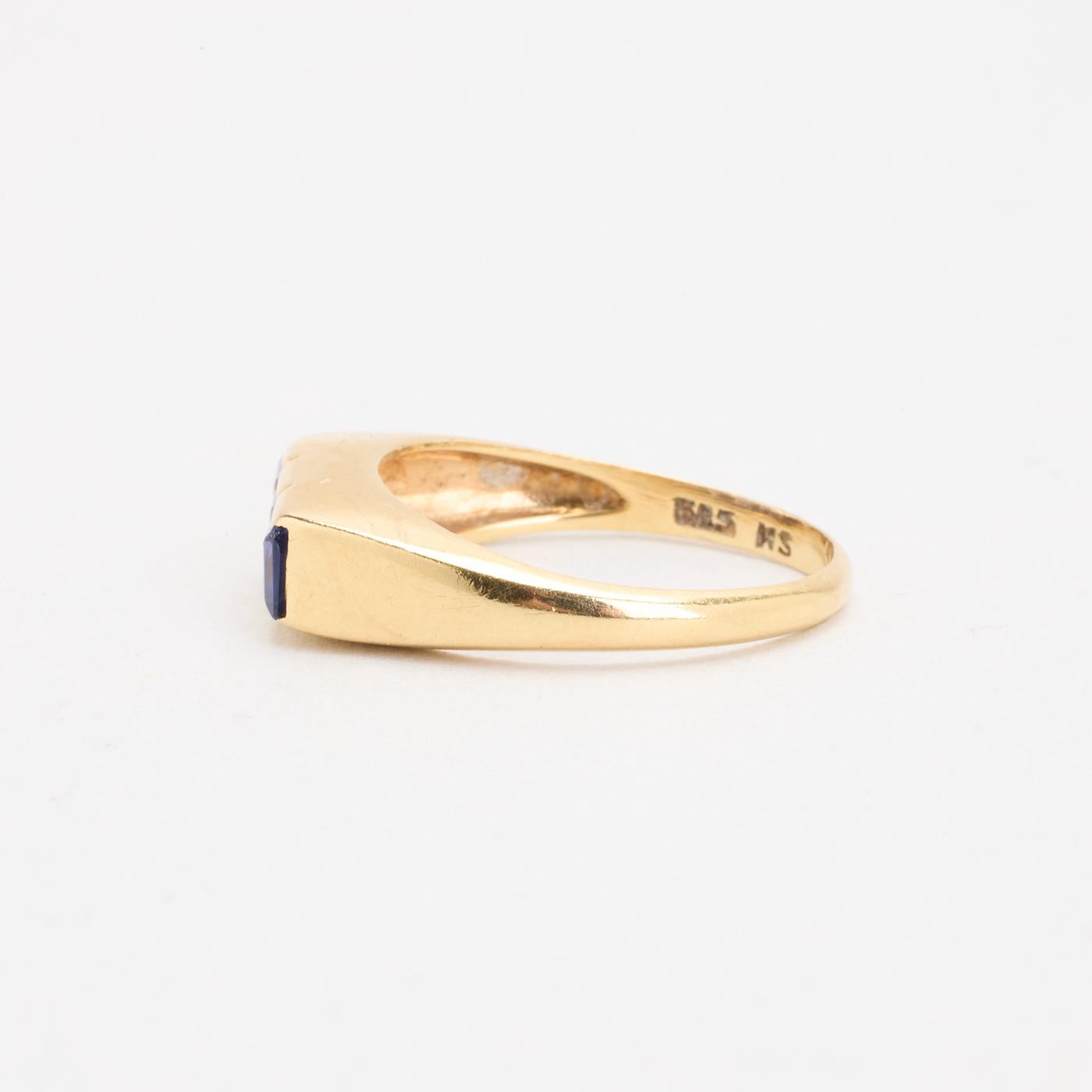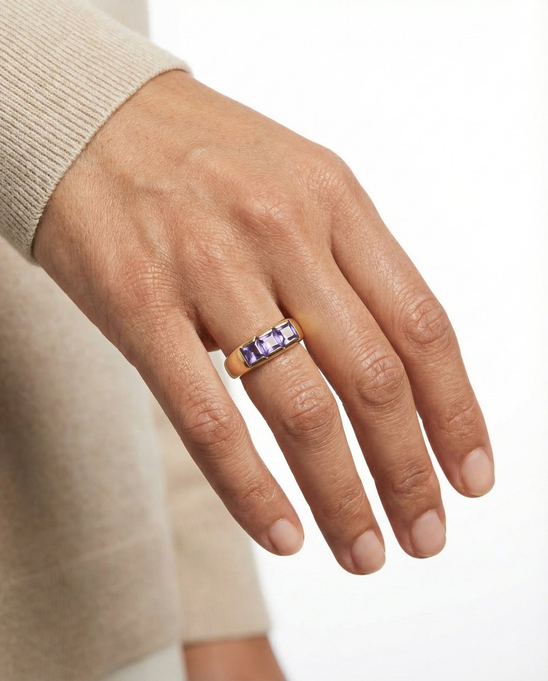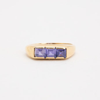 Sigetring i 14K guld med flere lilla sten, Str. 57
