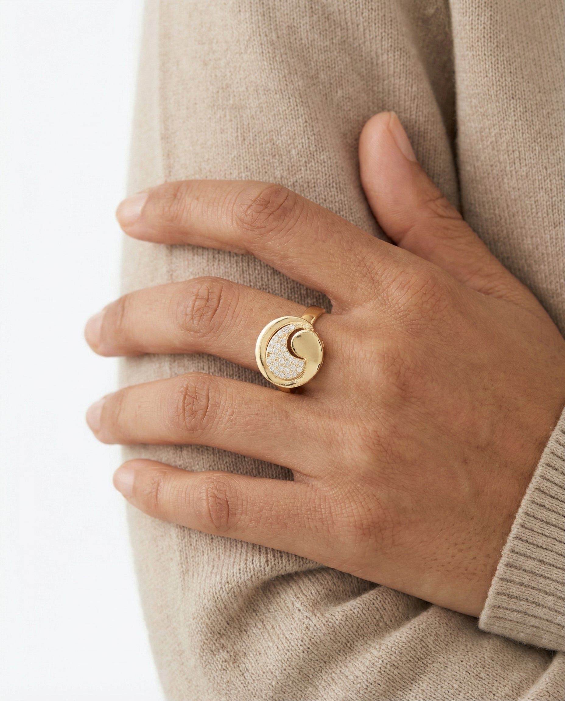 Statement ring i 14K guld med hvide zirkoniaer, Str. 55
