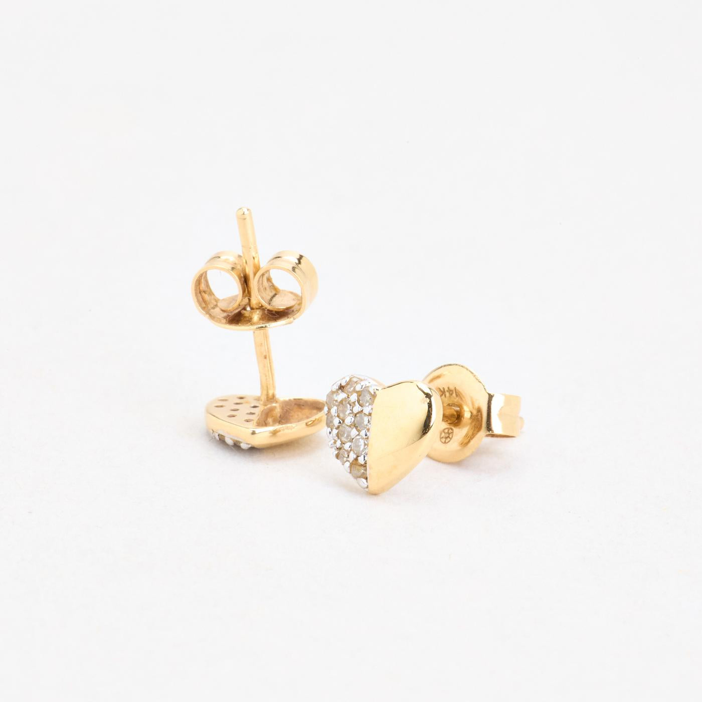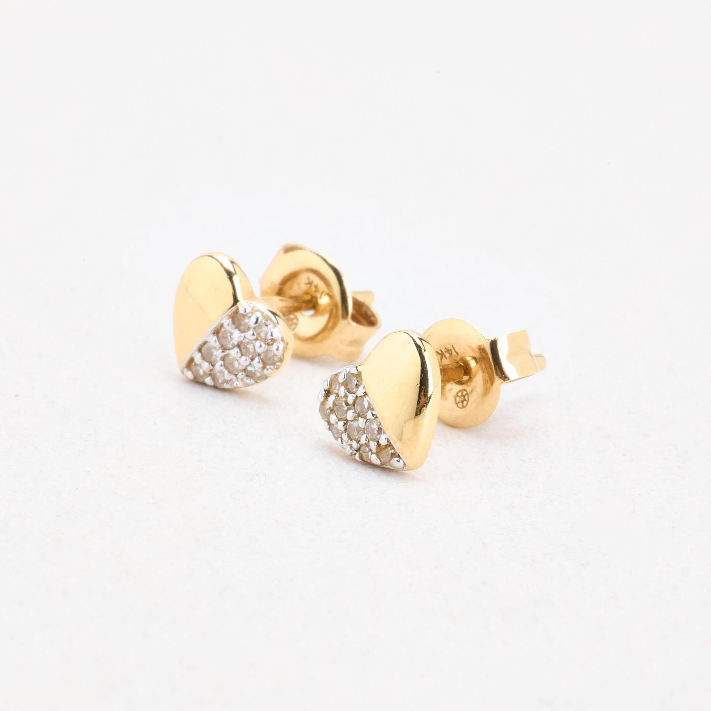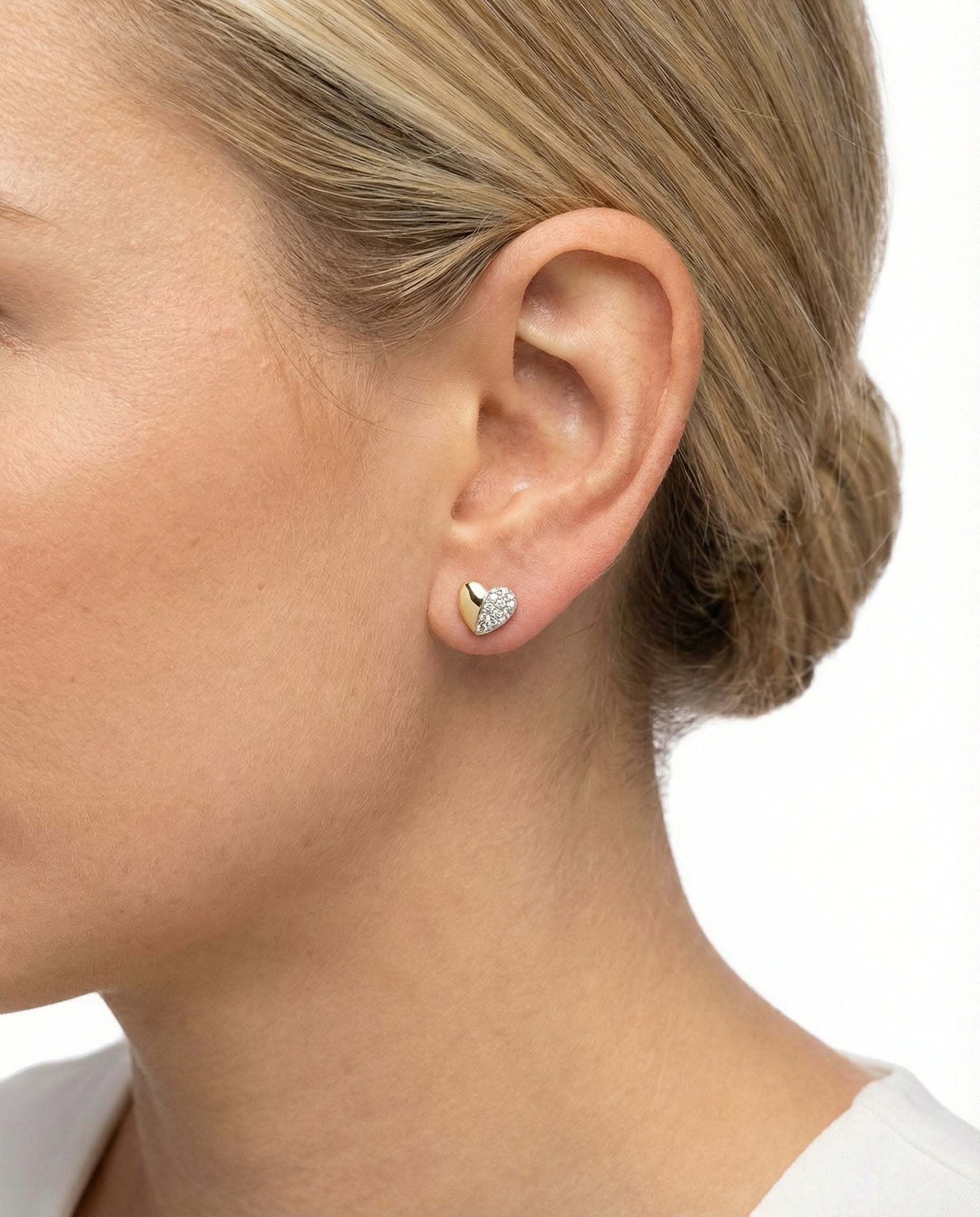 Hjerte øreringe med diamant (0.09 ct) i 14K guld og hvidguld, 0.5 cm,