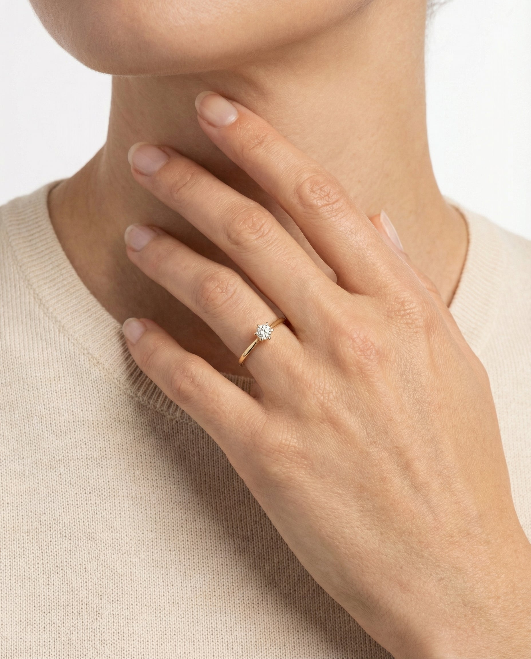 Solitairering i 14K guld med en diamant (0.06 ct), Str. 56