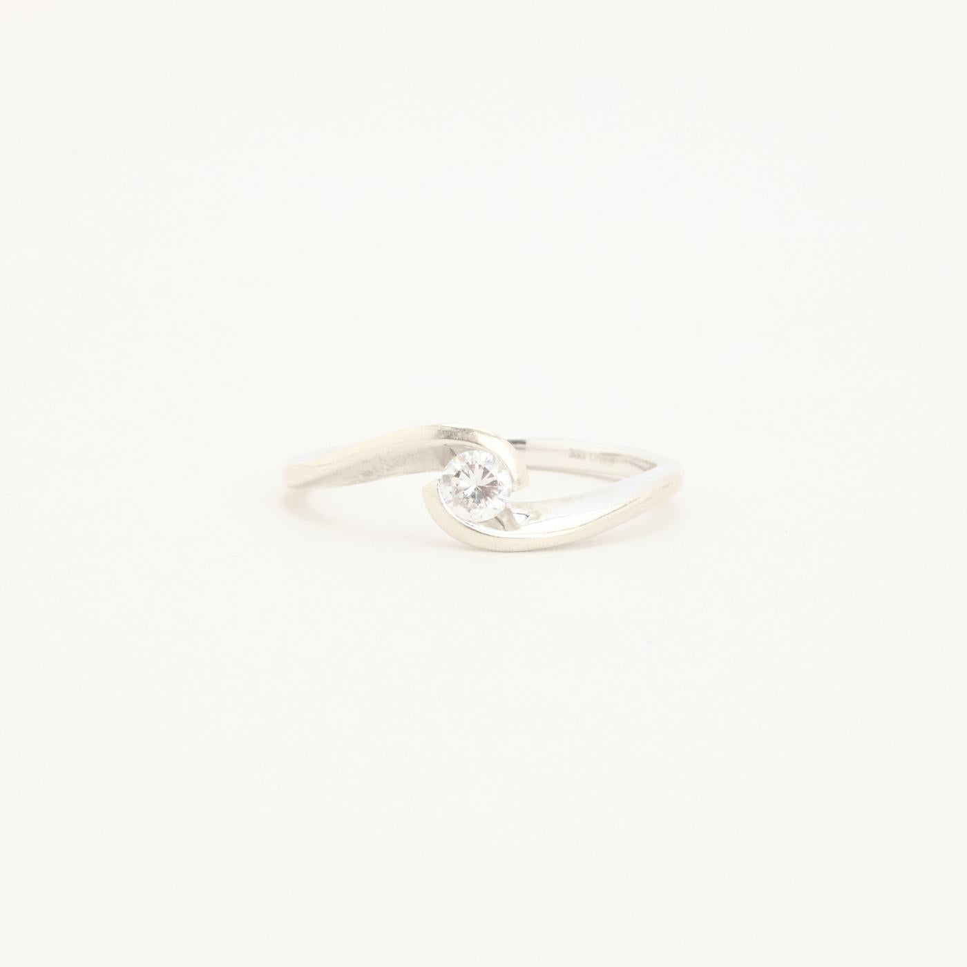 Solitairering i 8K hvidguld med en zircon, Str. 60