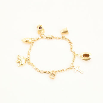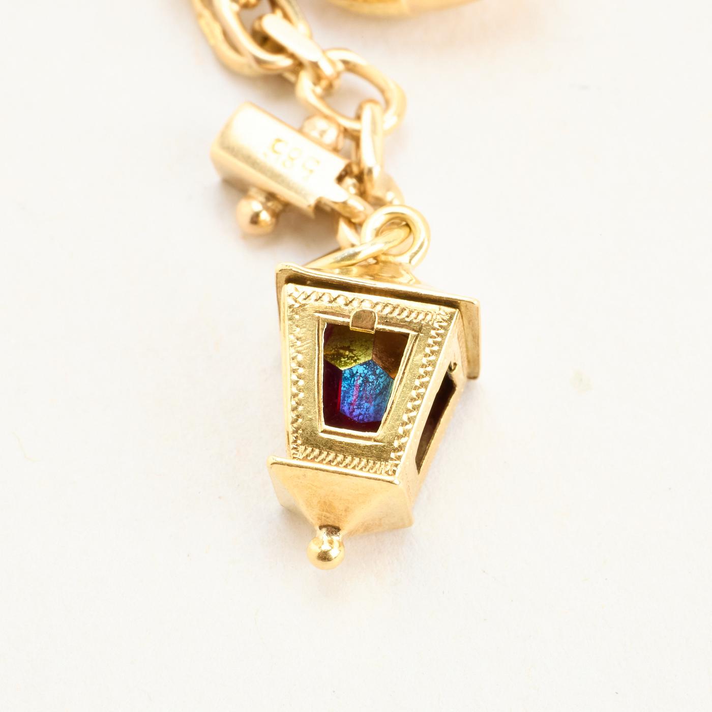 Model: Ankerkæde Charm-armbånd i 14K guld med blå sten, 19 cm, 15 g