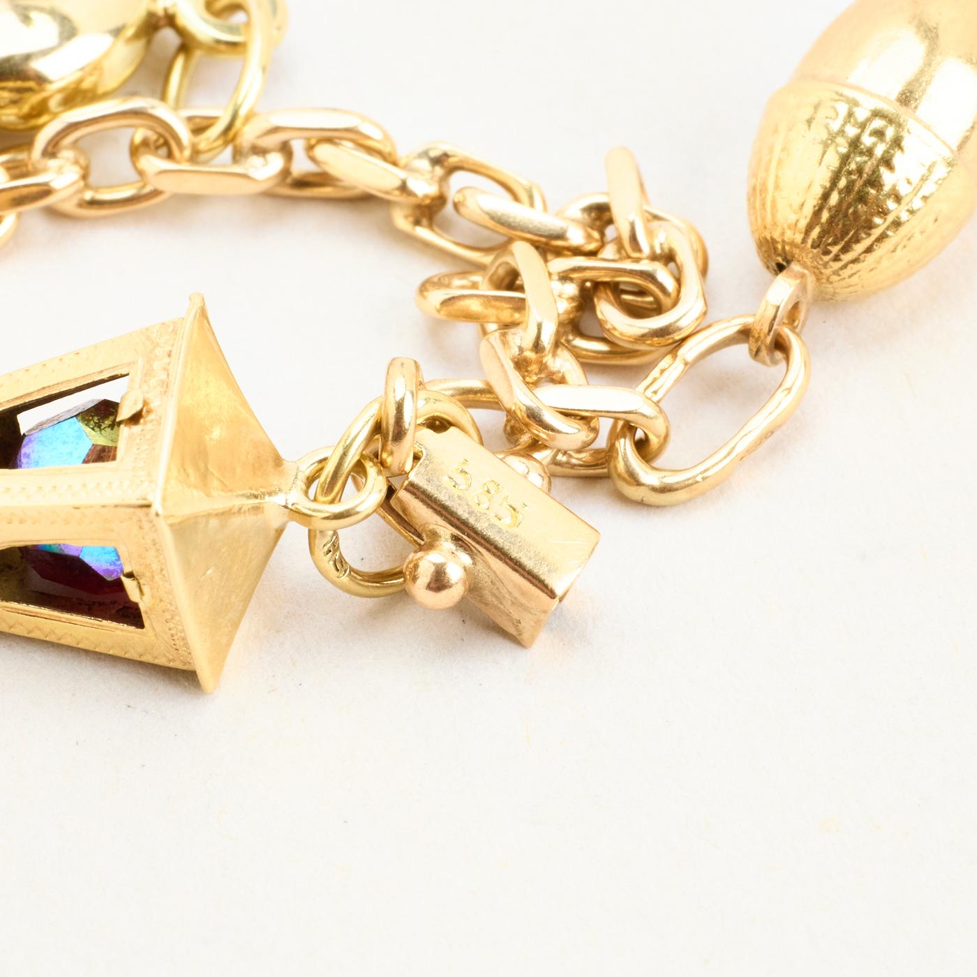Ankerkæde Charm-armbånd i 14K guld med blå sten, 19 cm, 15 g