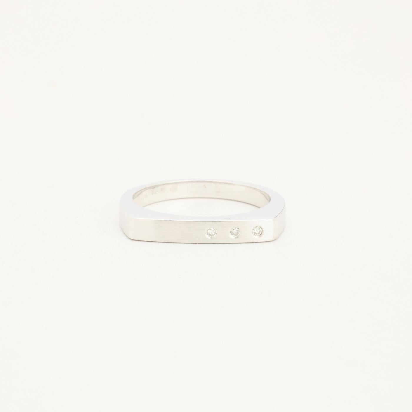 Signetring med diamant (0.03 ct) i 14K hvidguld, str. 52