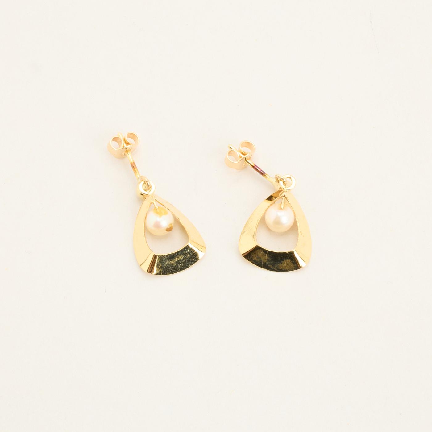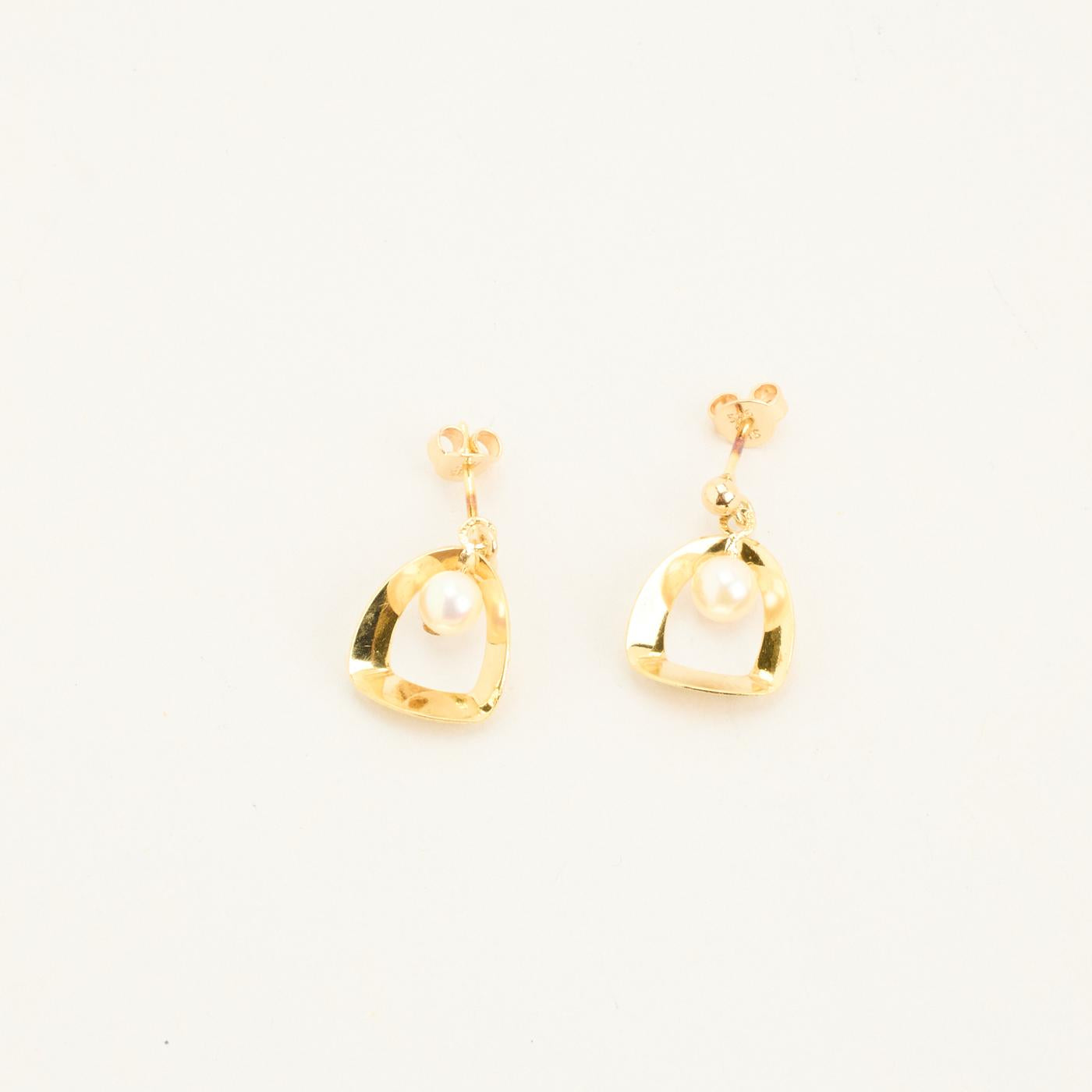 Ørehængere i 14K guld med perler, 2 cm, 2 g