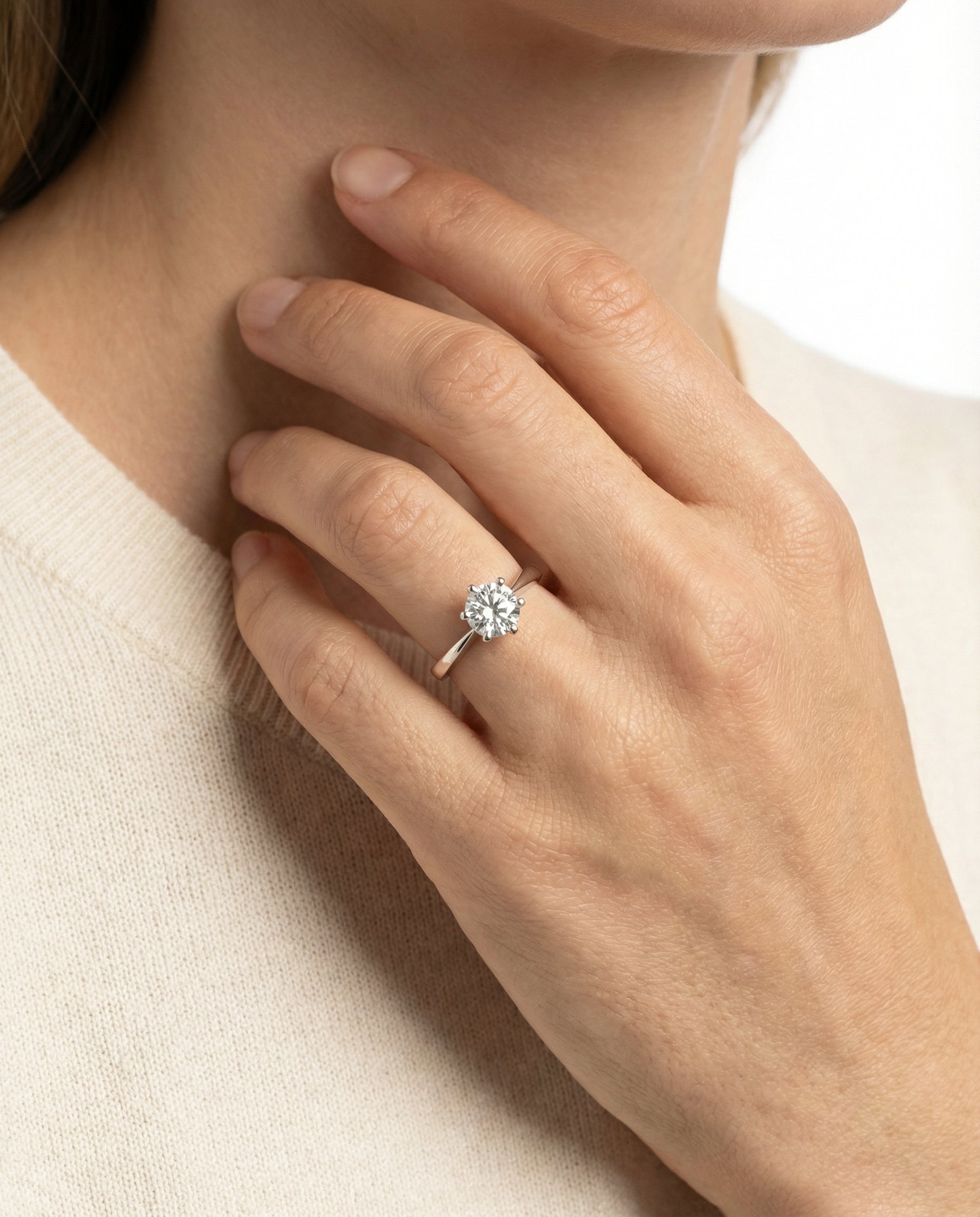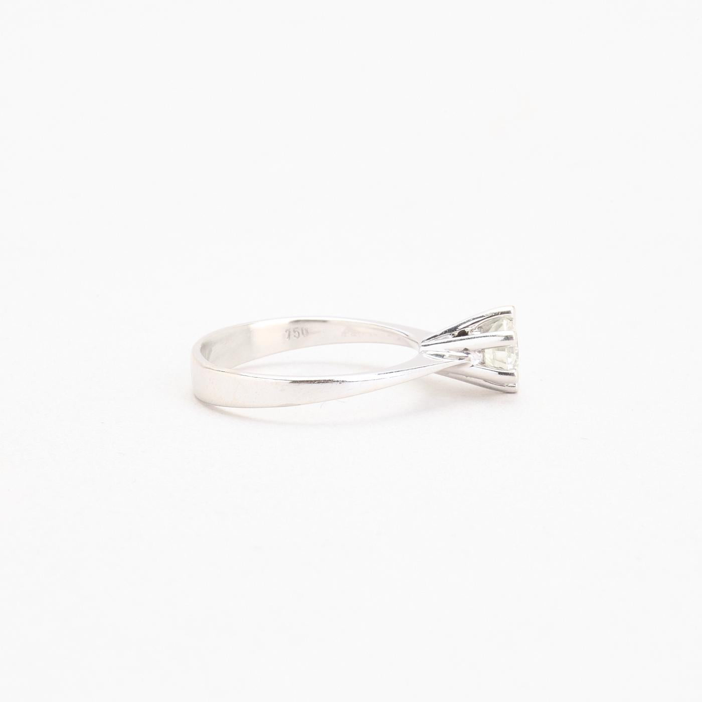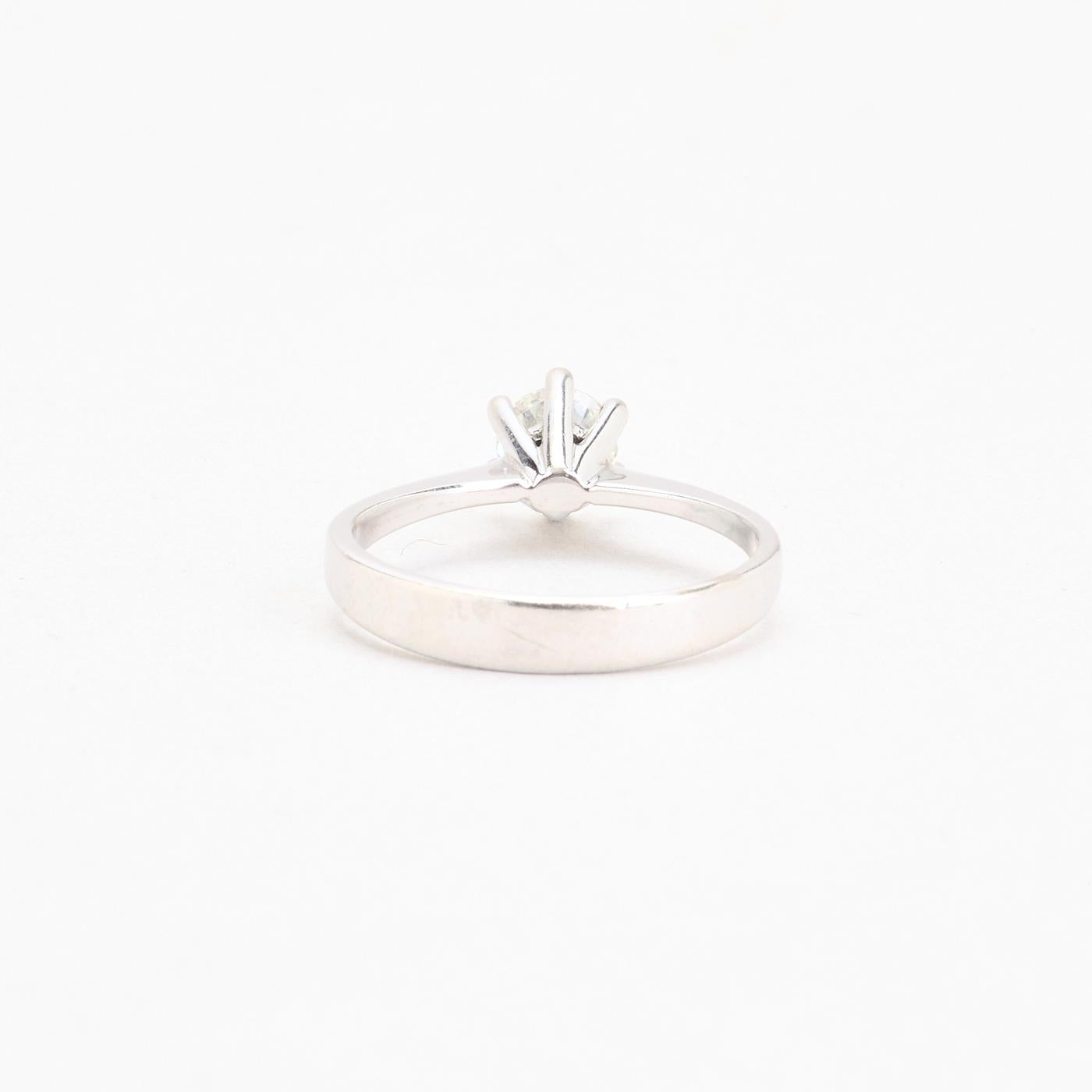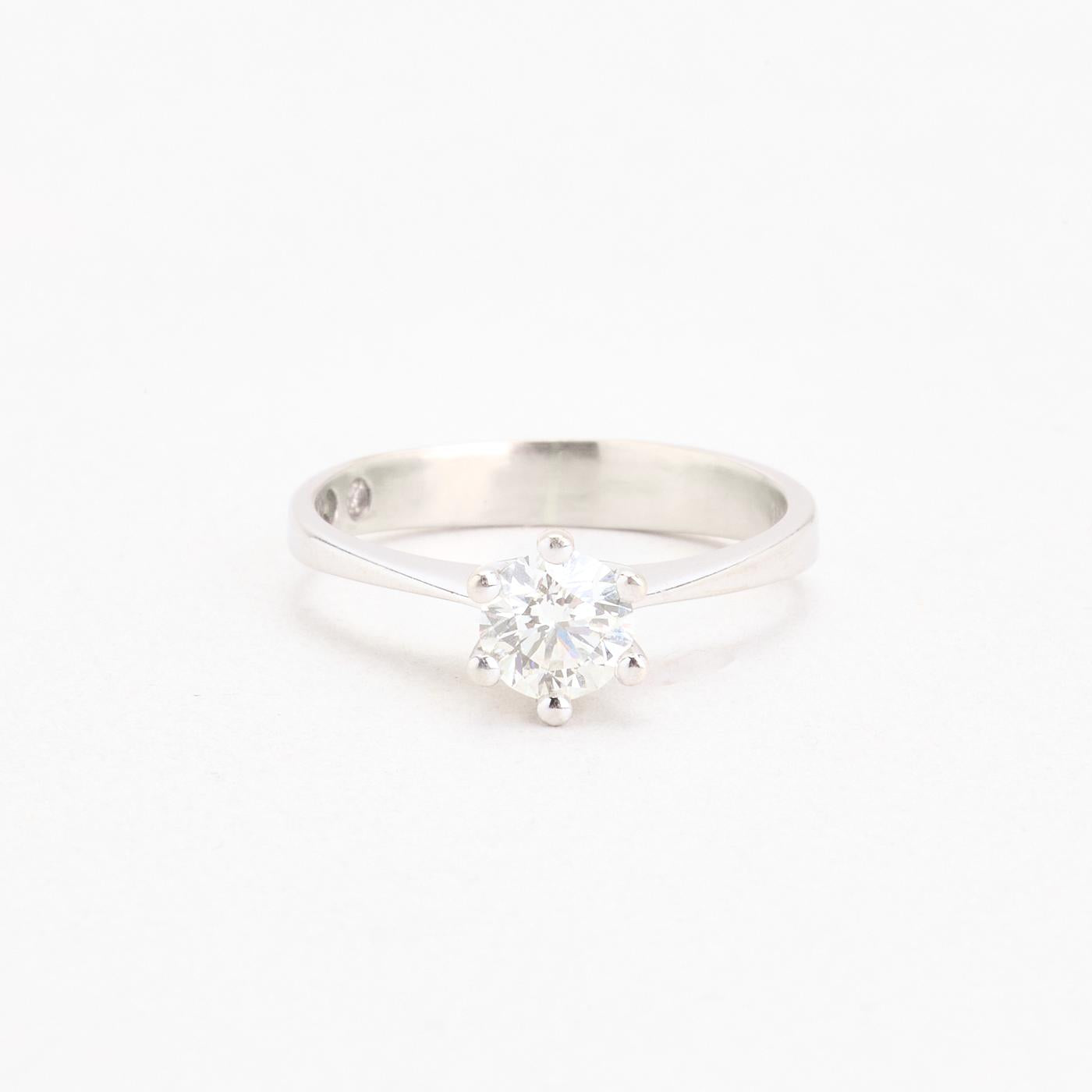 Solitairering med diamant (0.65 ct) i 18K hvidguld, str. 52