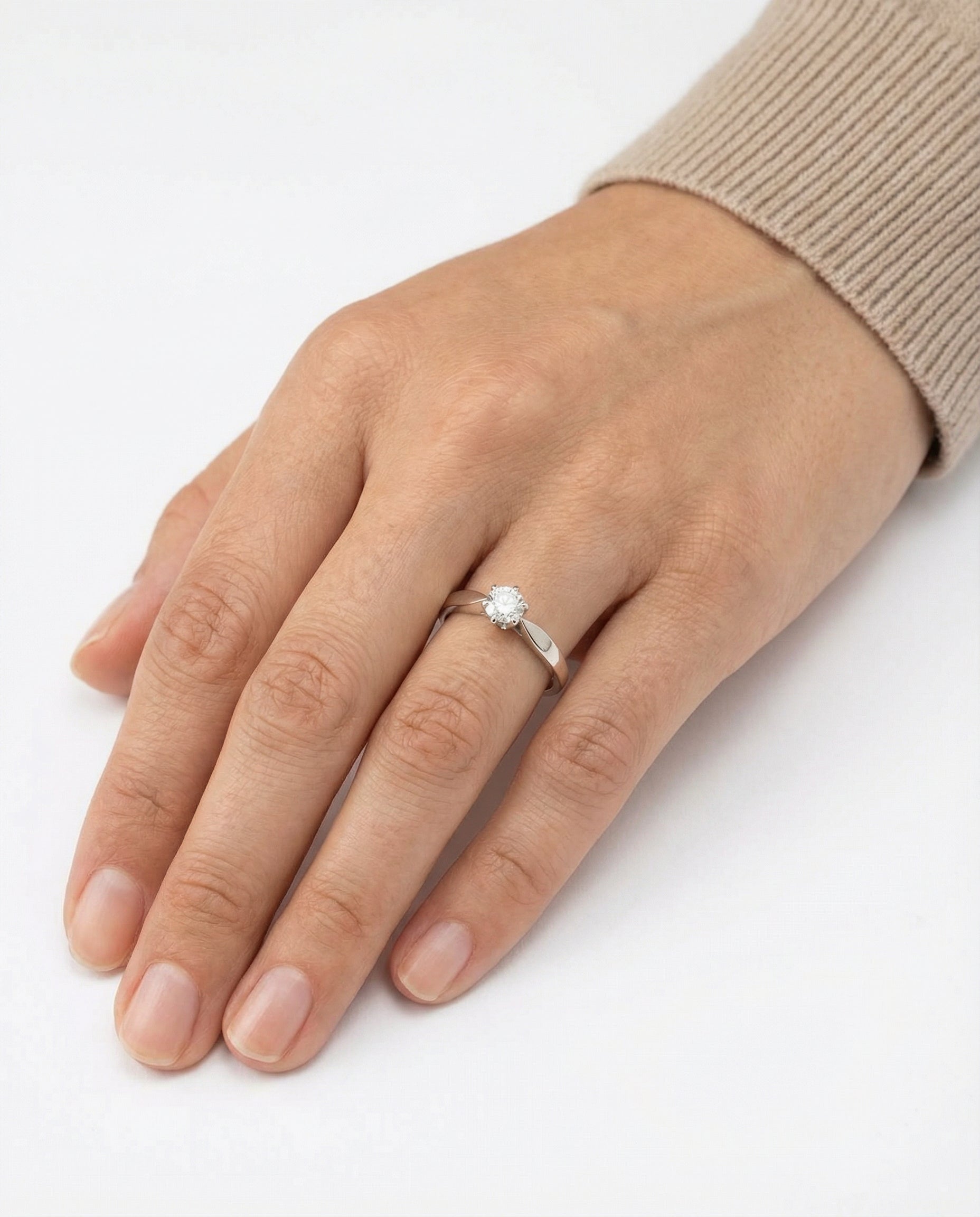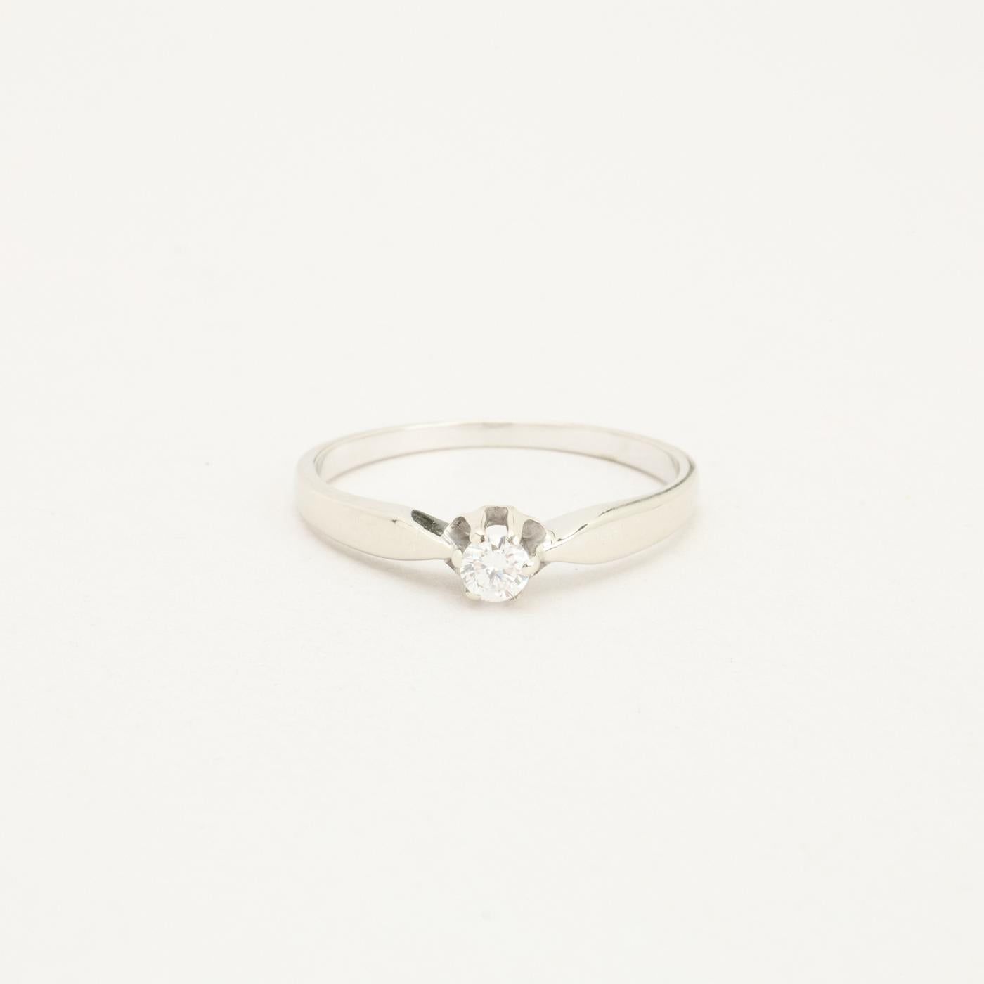 Solitairering med diamant (0.12 ct) i 14K hvidguld, str. 53