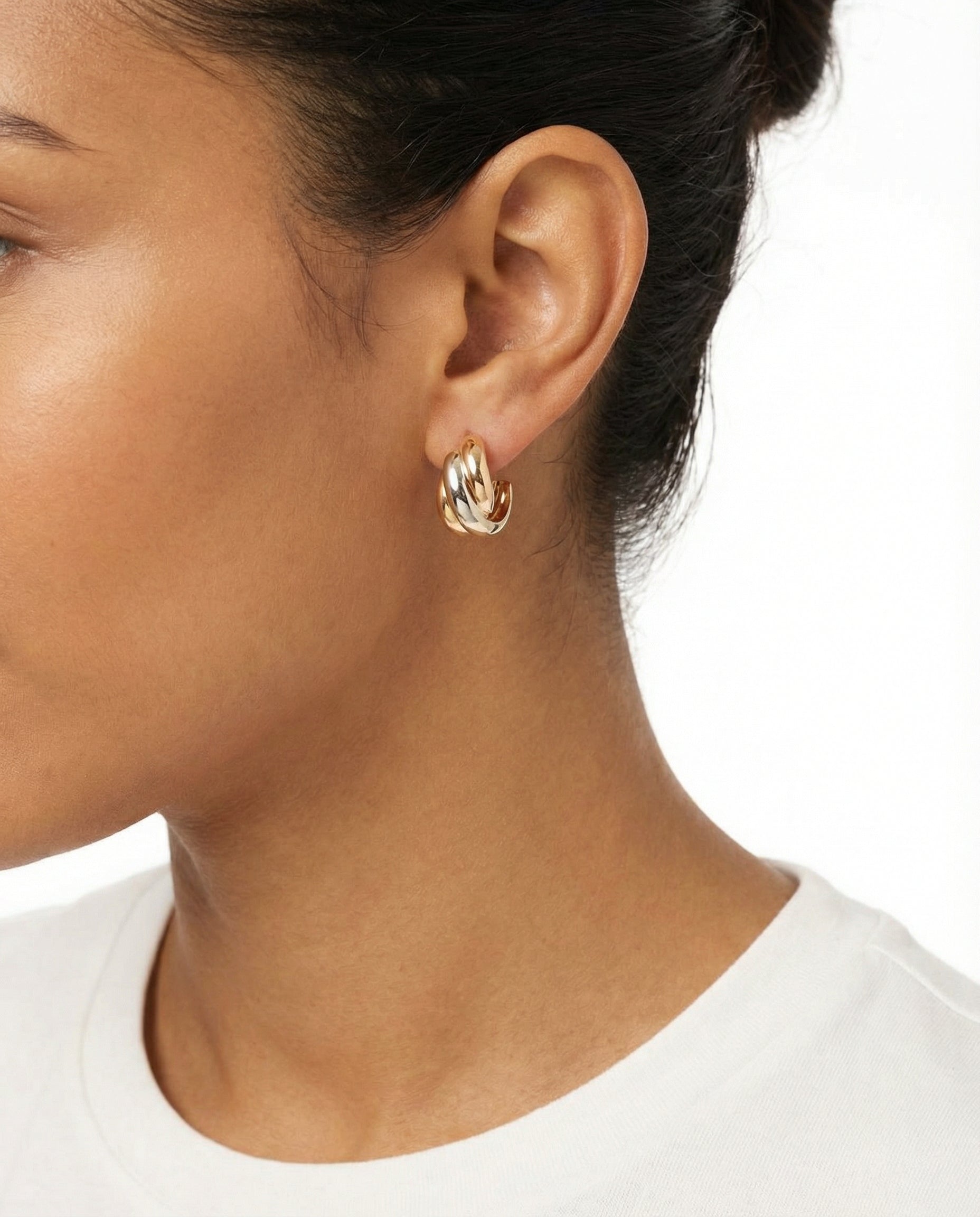 Huggies i 18K guld, hvidguld og rosaguld, 1.5 cm,