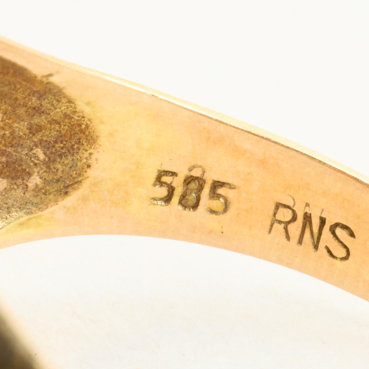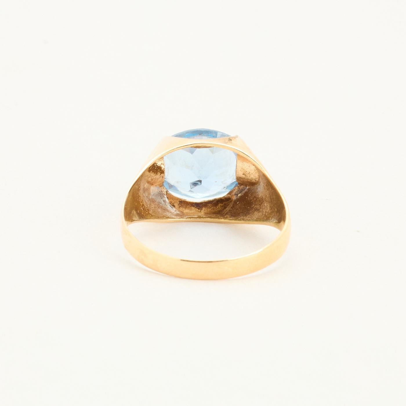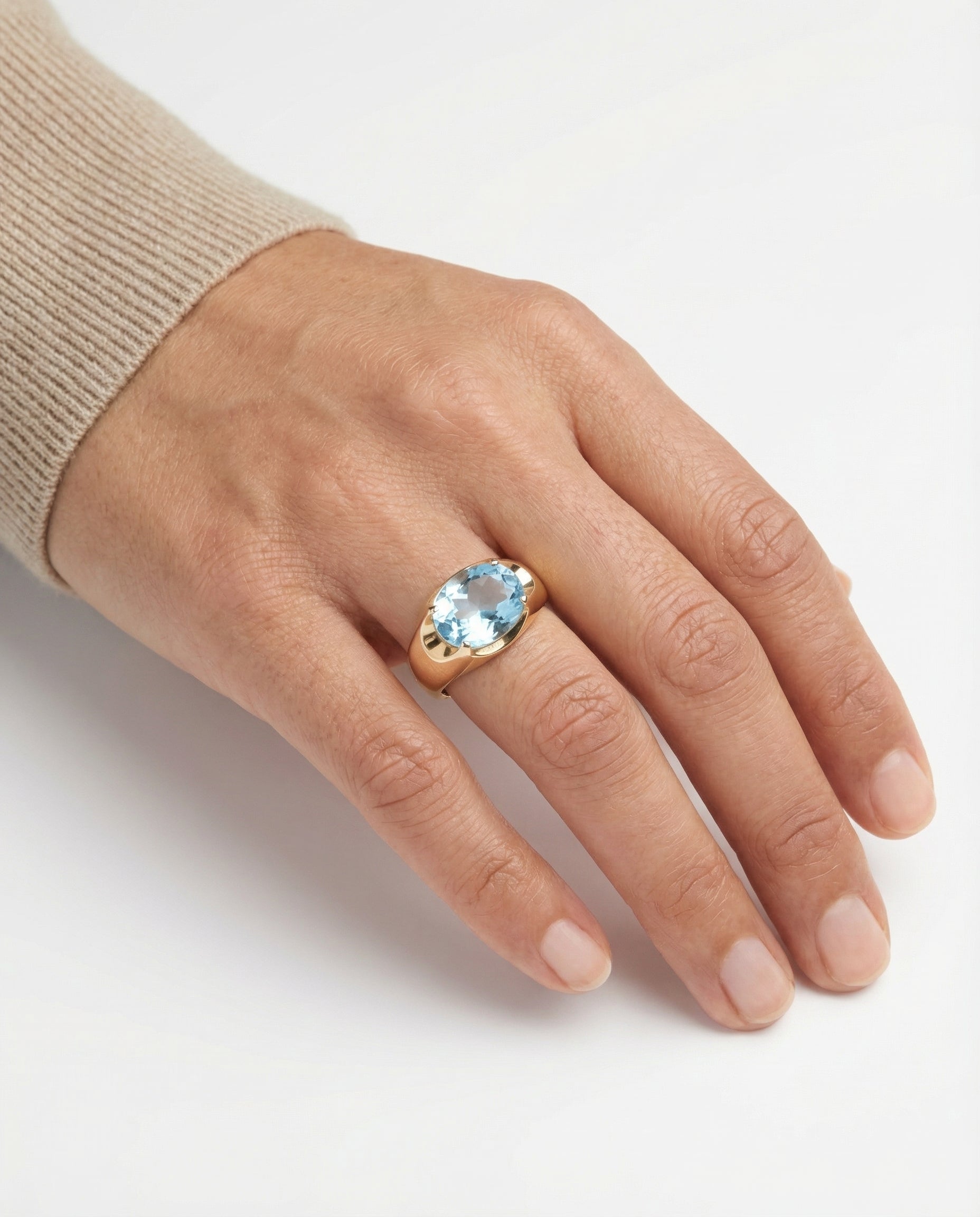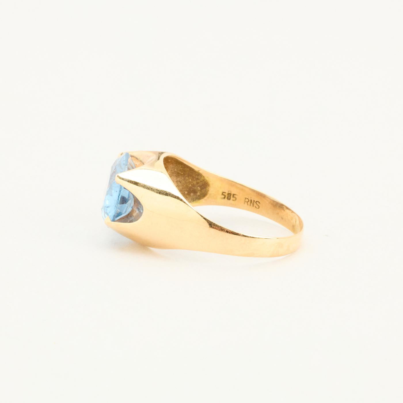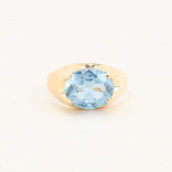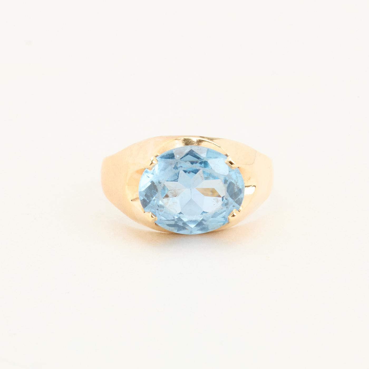 Signetring i 14K guld med en lyseblå sten, Str. 61
