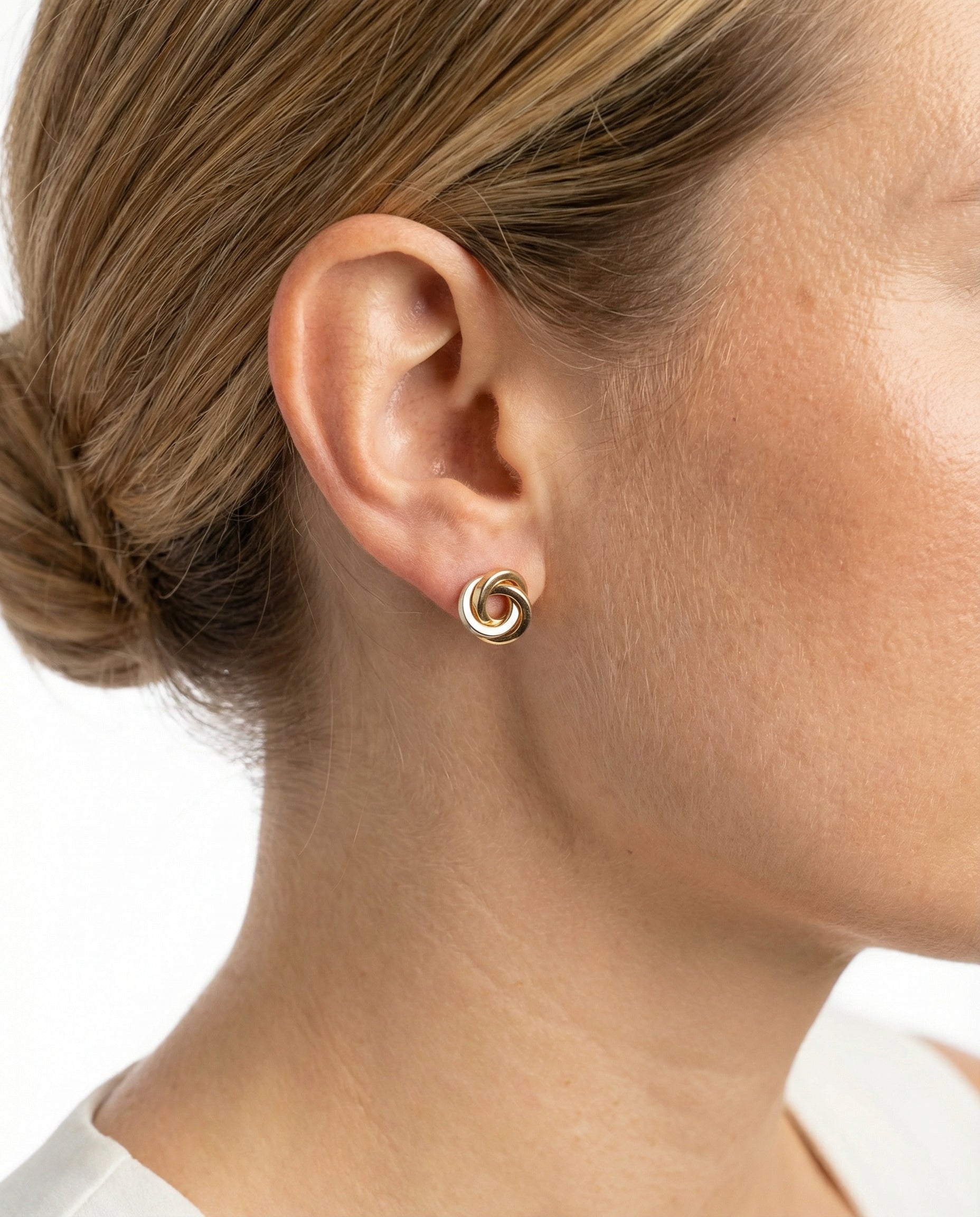 Knude Øreringe med stik i 8K guld, hvidguld og rosaguld, 0.8 cm,