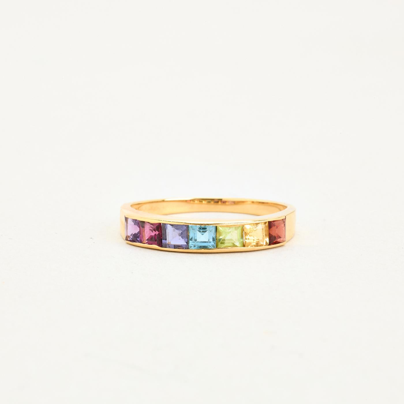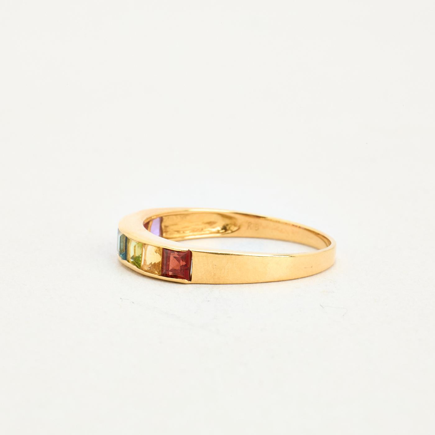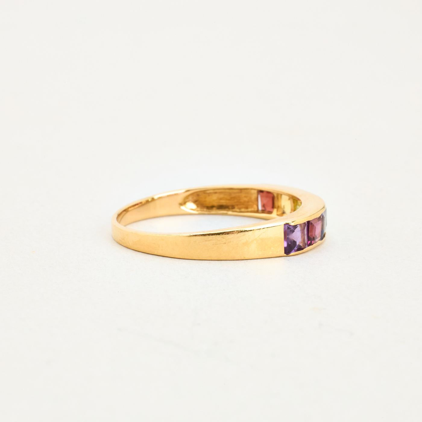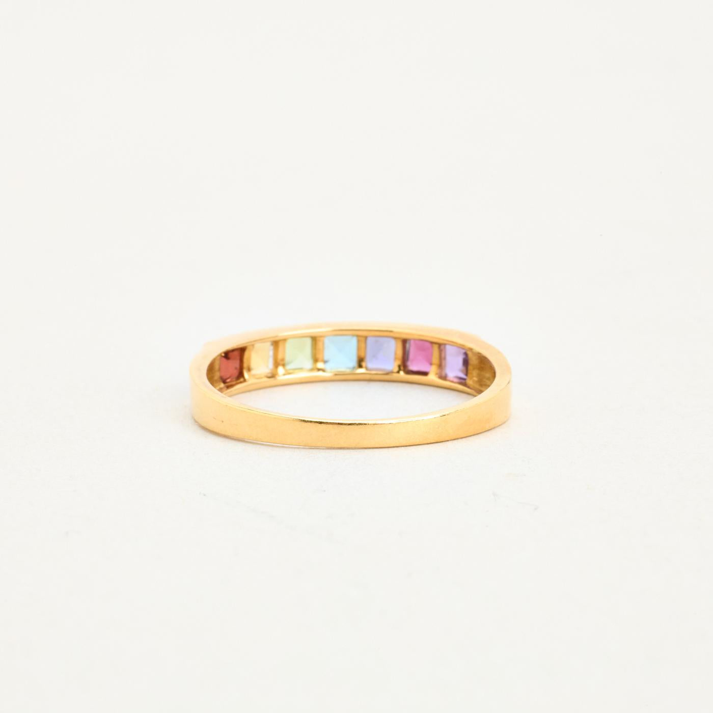Alliancering i 18K guld med flerfarvede sten, str. 59