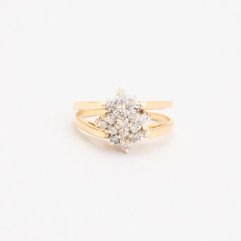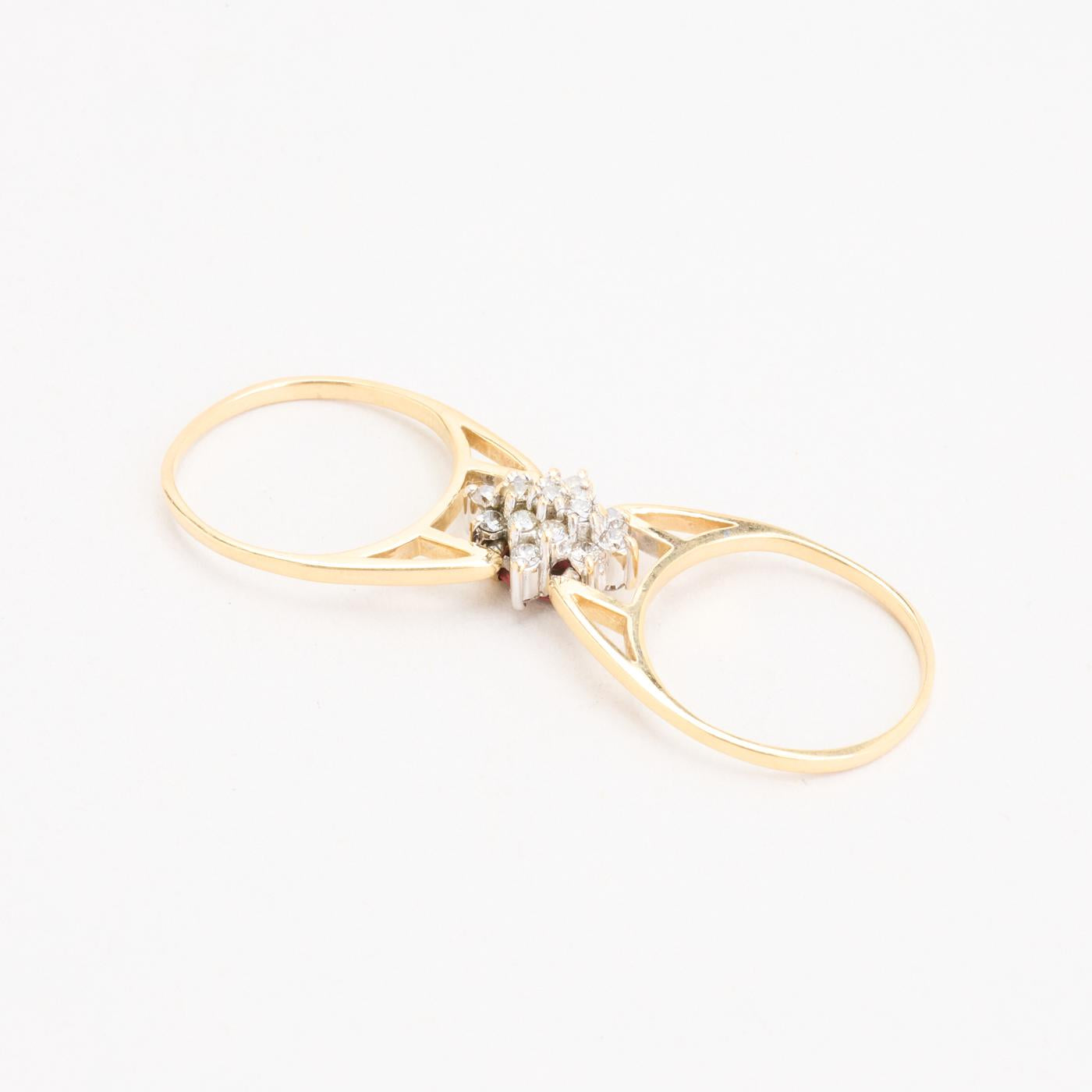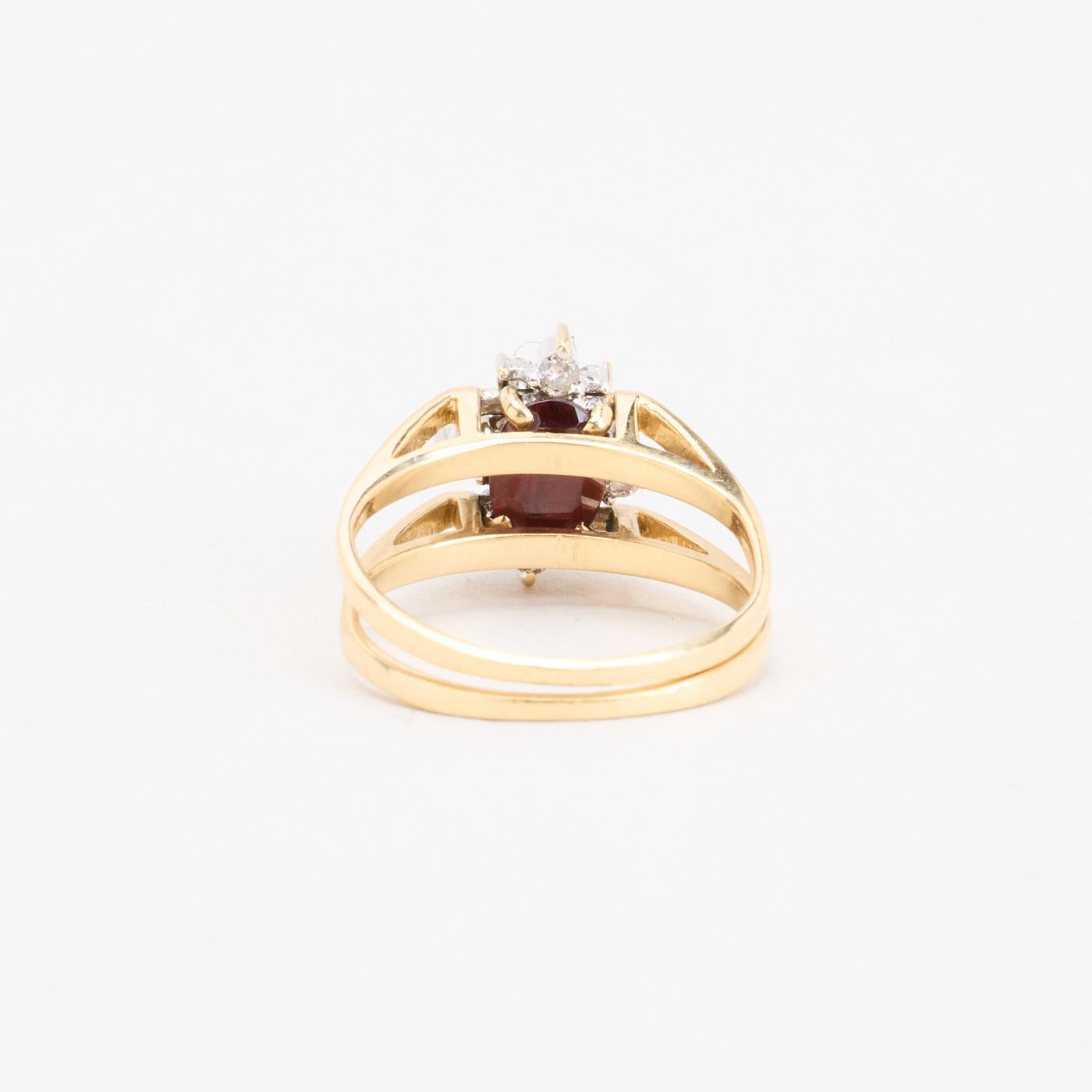 Rosetring med diamanter (0.13 ct) i 14K guld og hvidguld med rød sten, str. 52