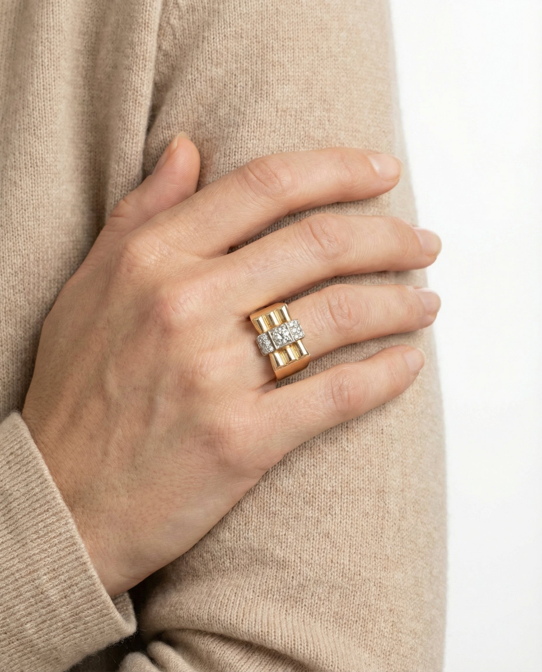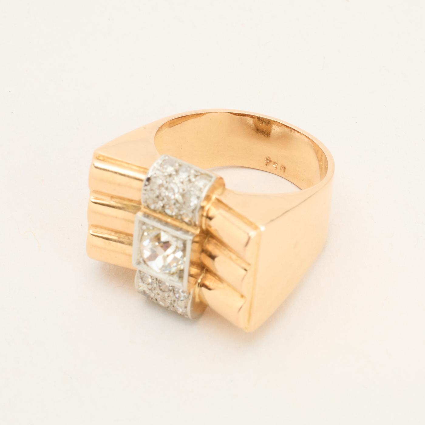 Signetring med diamant (0.65 ct) i 18K guld og hvidguld, str. 53