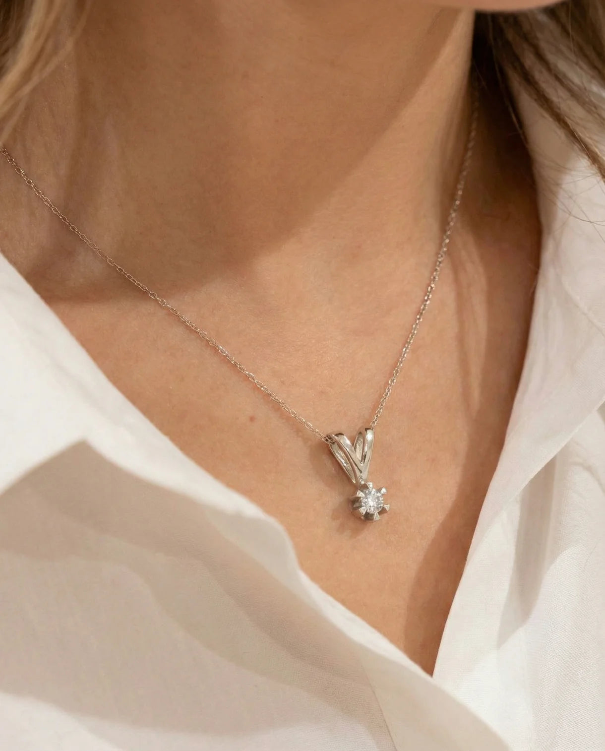 Solitaire vedhæng med diamant (0.1 ct) i 14K hvidguld, 1.5 cm, 0.81 g