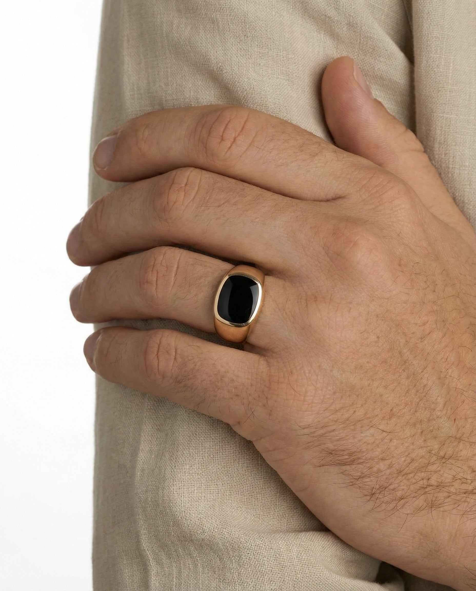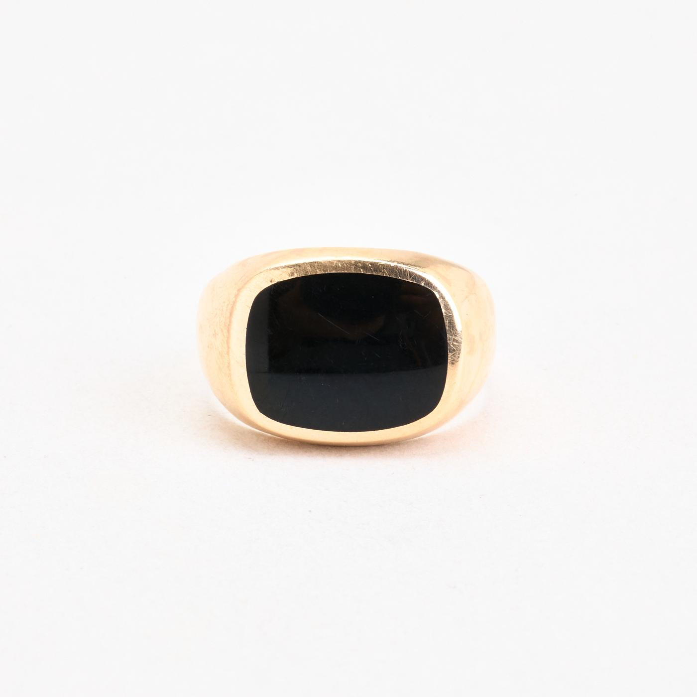 Signetring i 14K guld med en onyks, str. 62