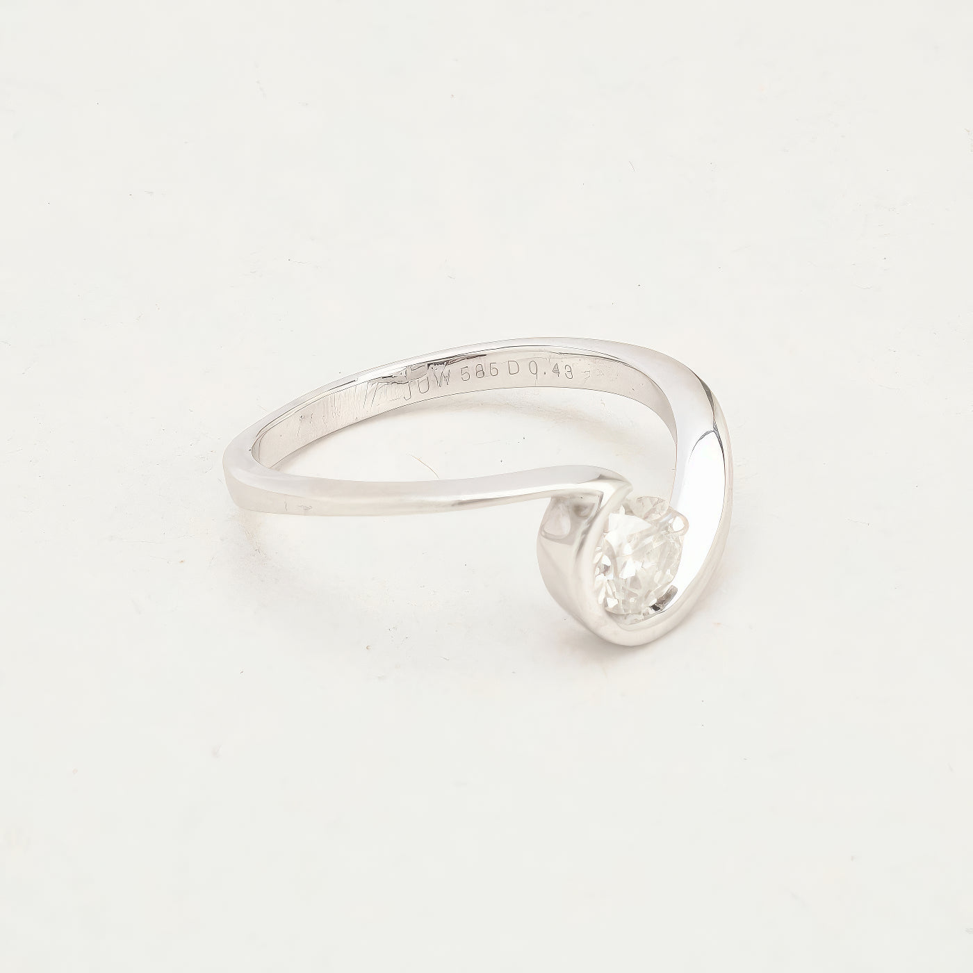 Solitairering i 14K hvidguld med en diamant (0.43 ct), Str. 54