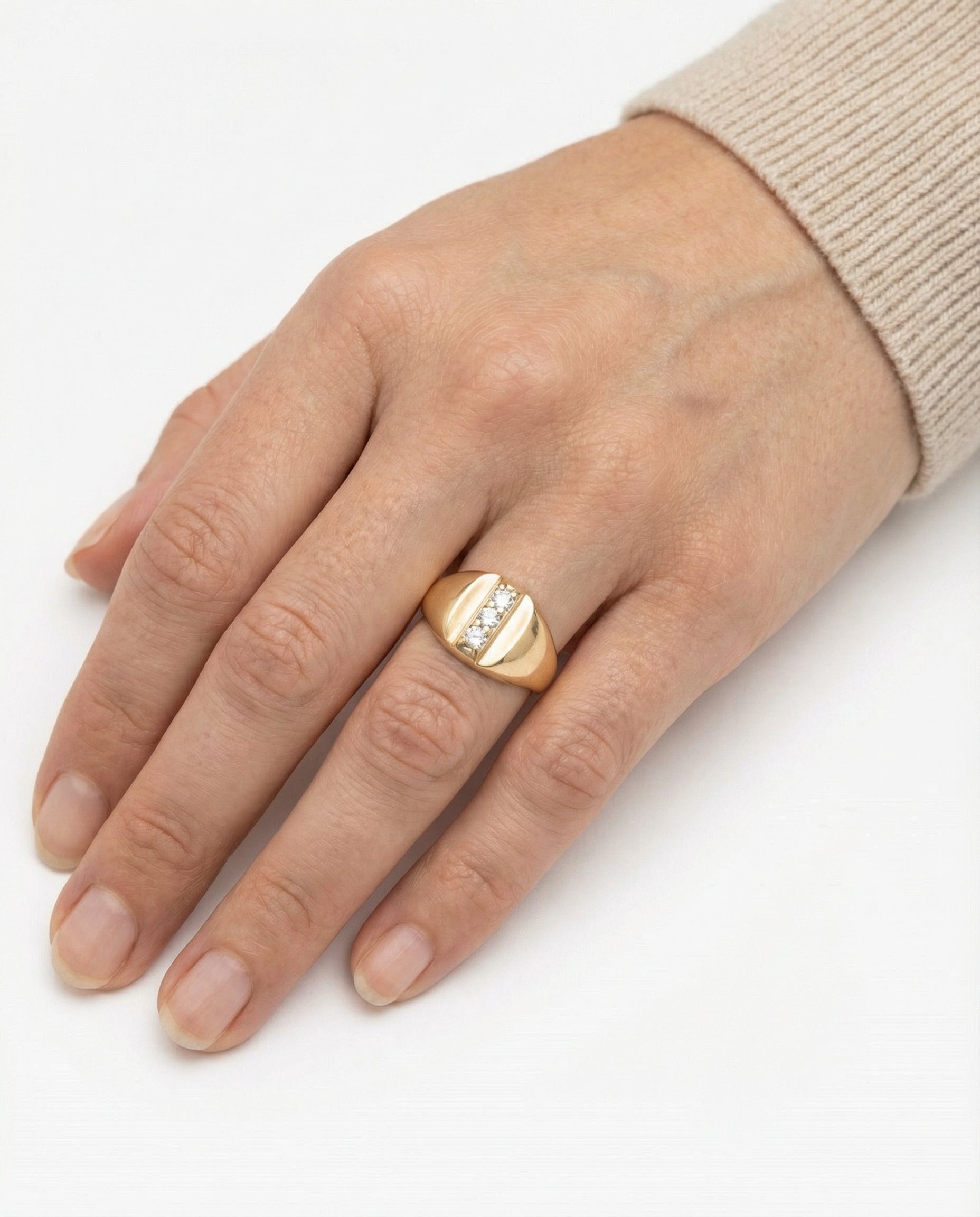 Signetring i 8K guld med en zirkonia, str. 53