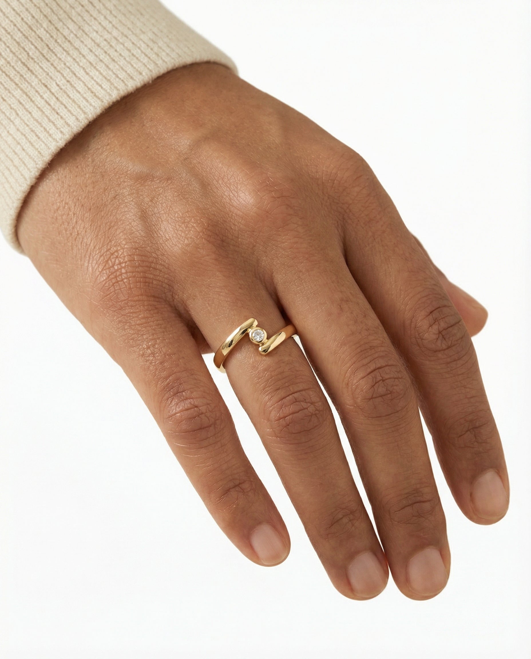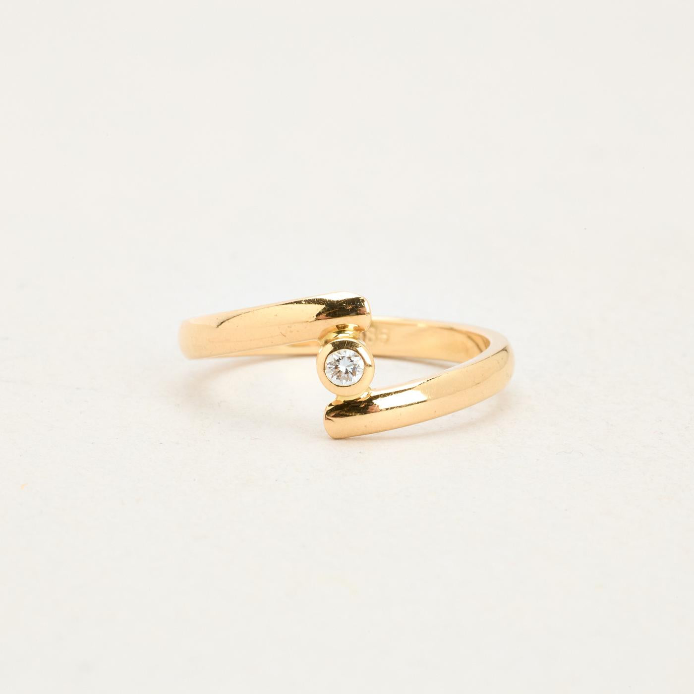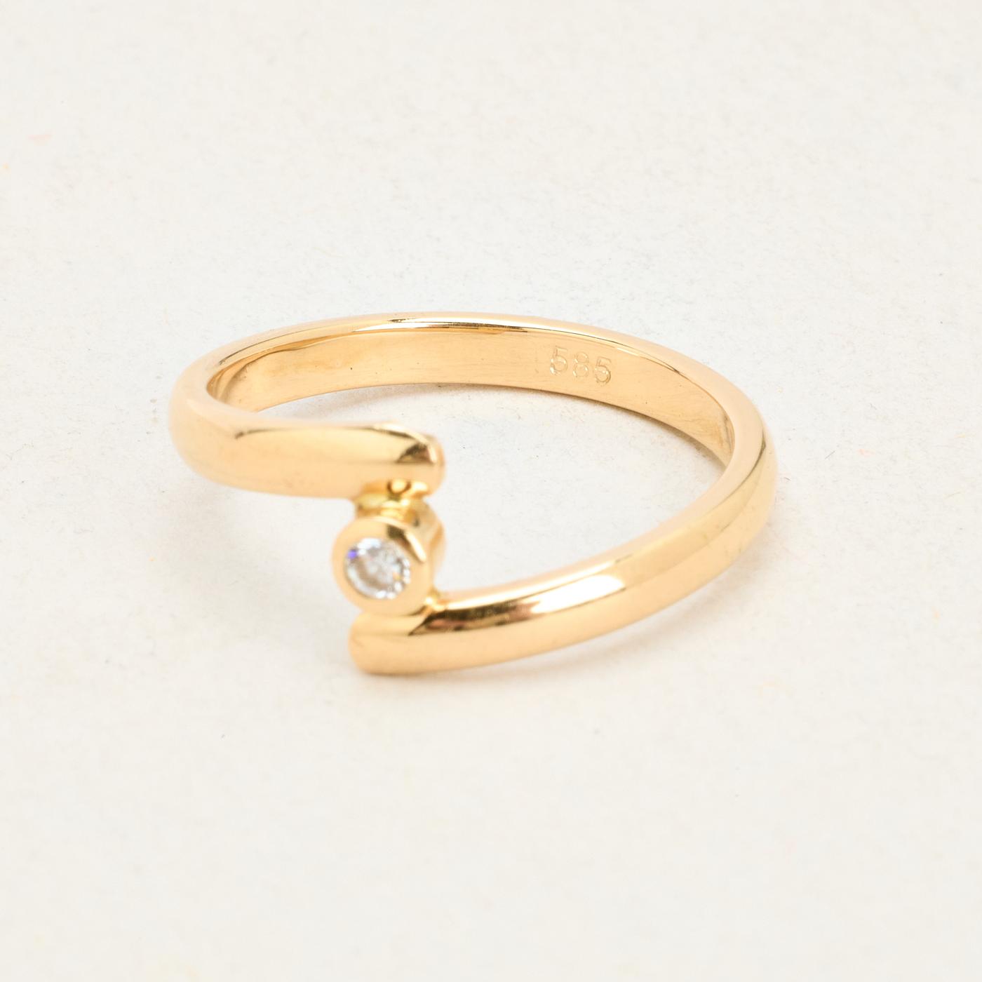 Crossoverring i 14K guld med en diamant (0.03 ct), Str. 52