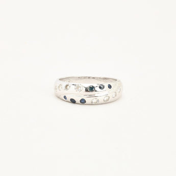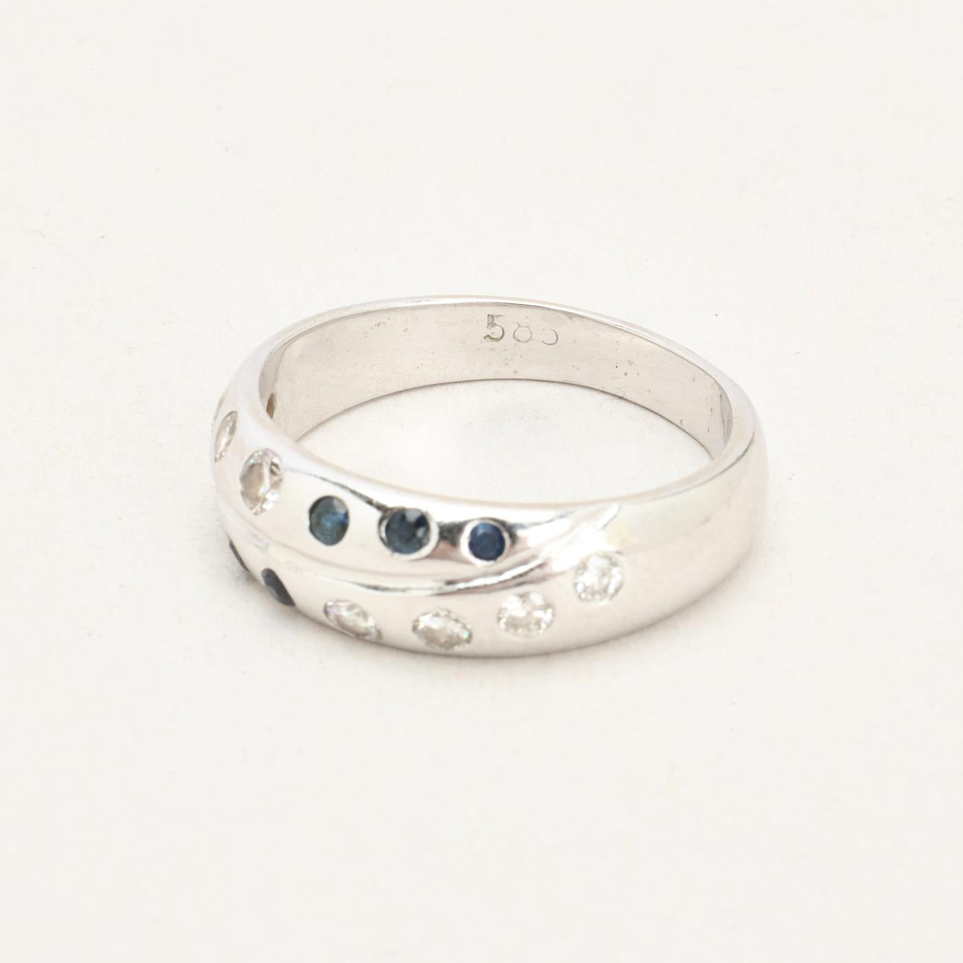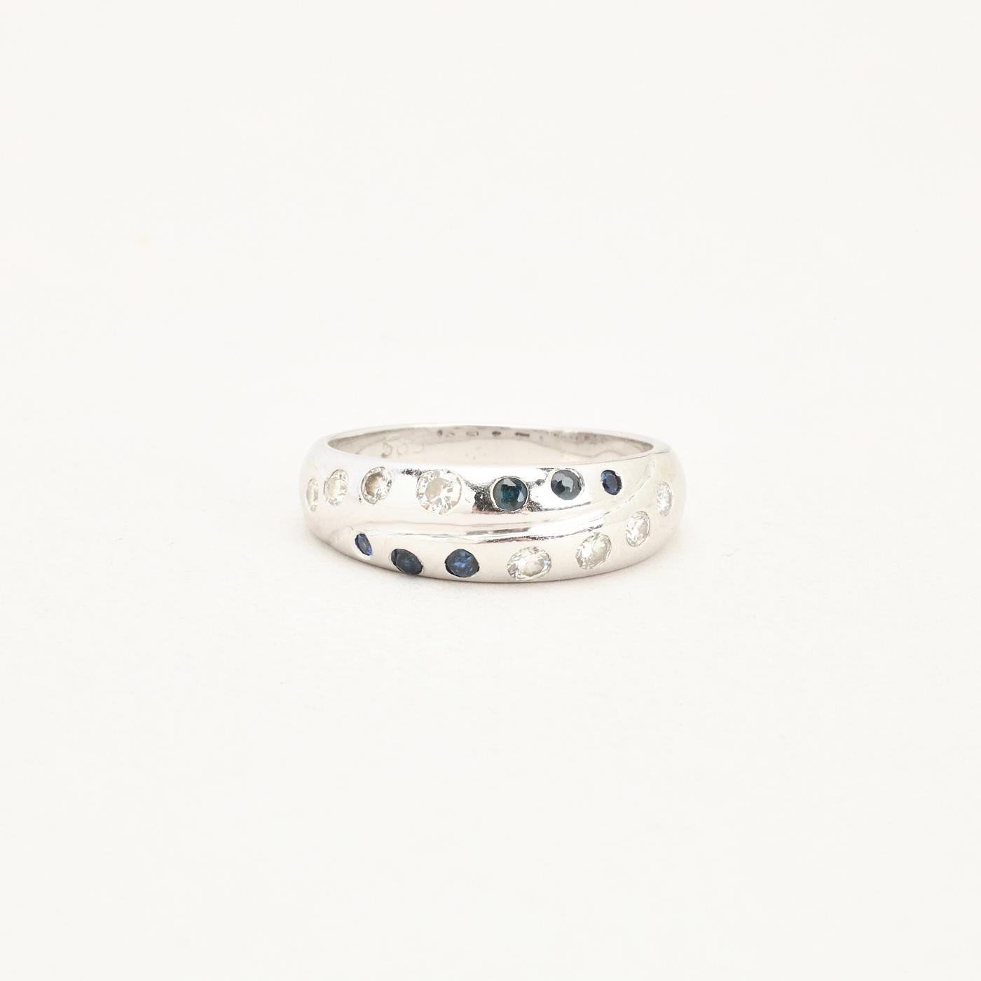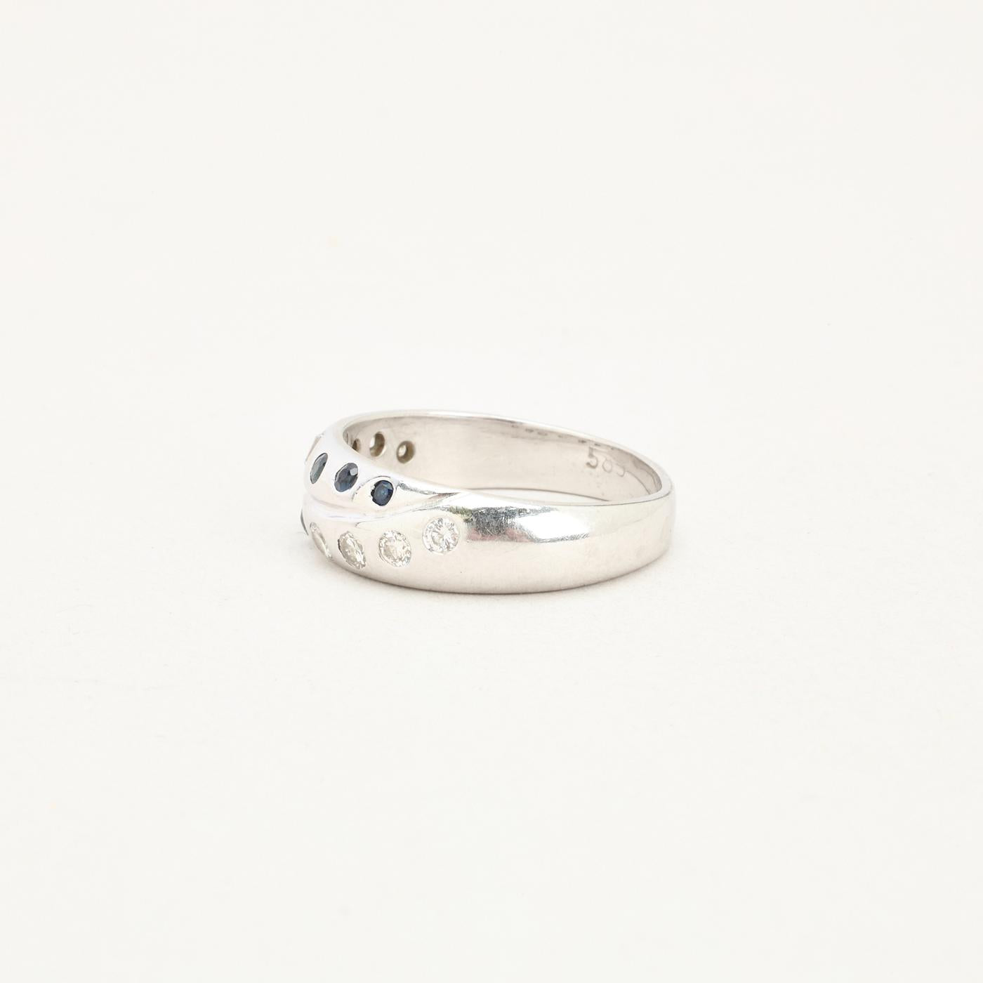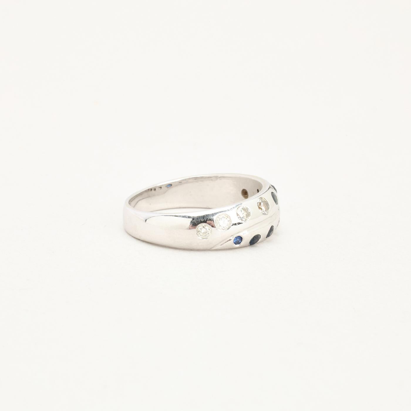 Gypsyring med diamant (0.33 ct) i 14K hvidguld med en safir, str. 58