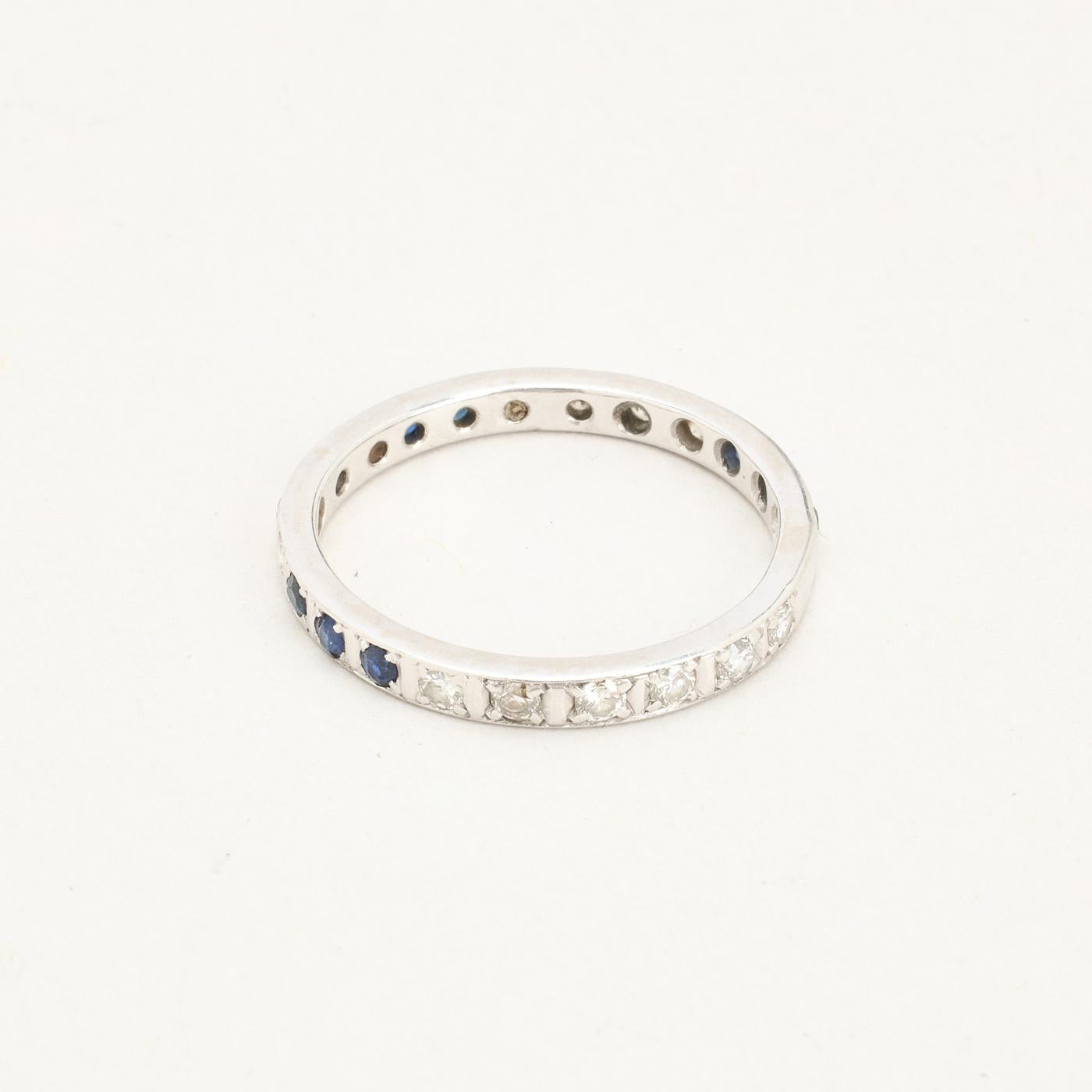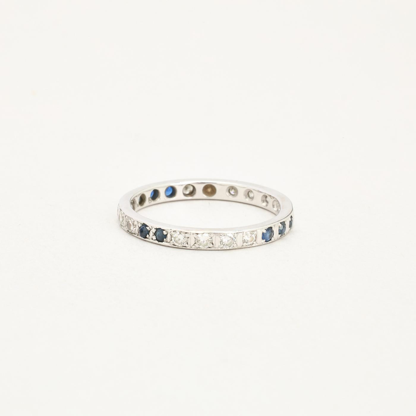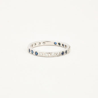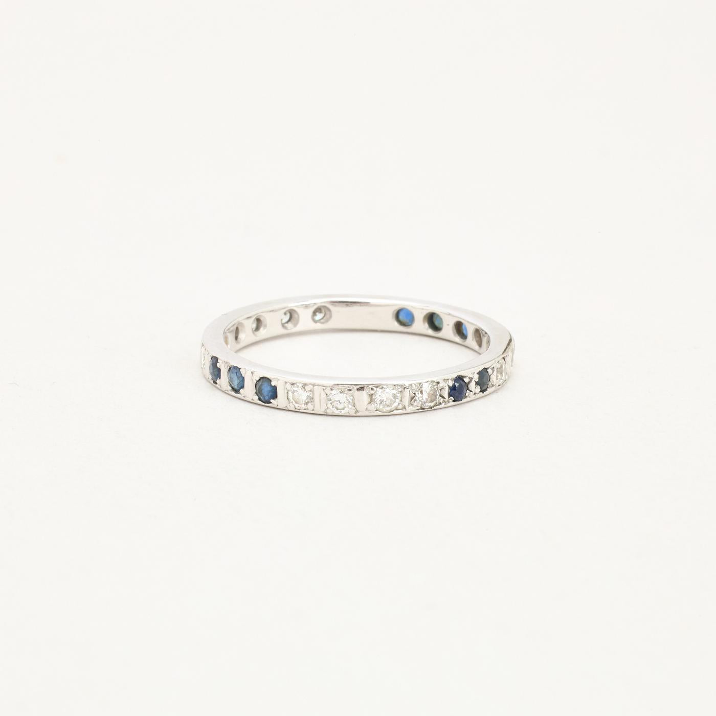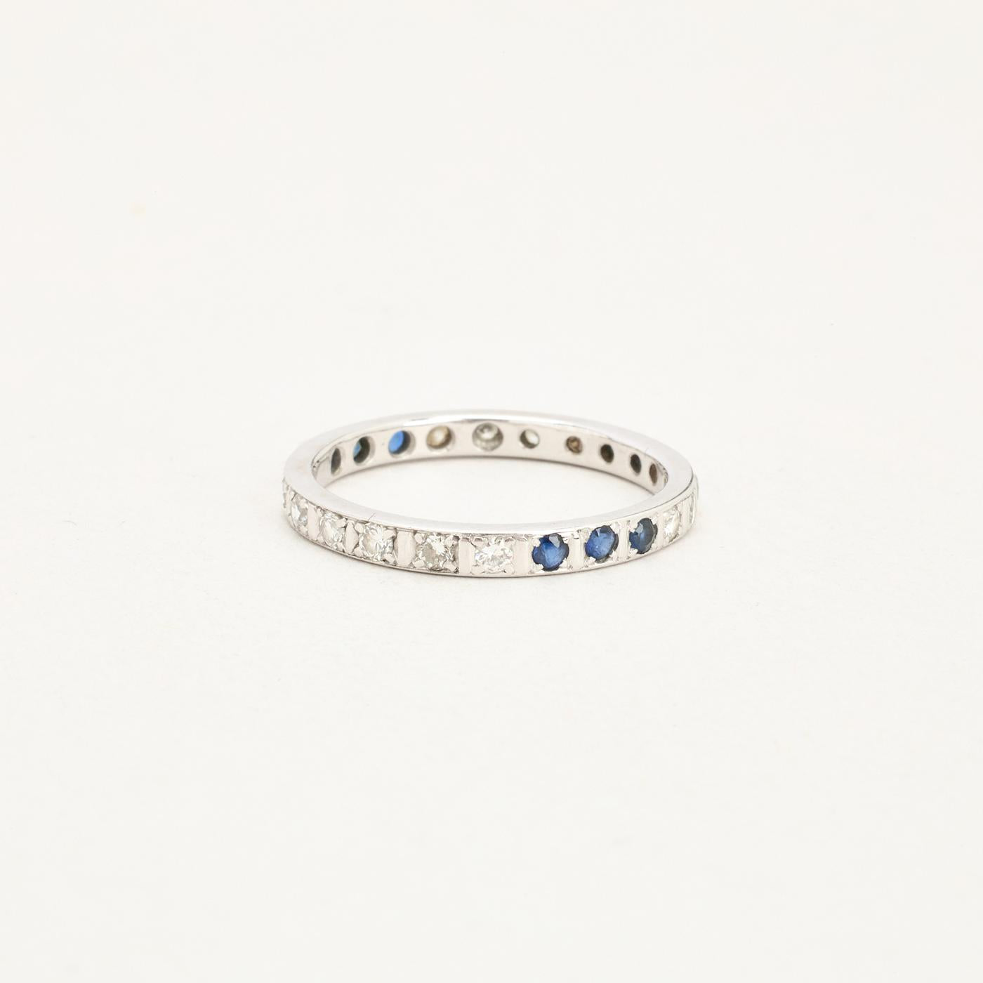 Alliancering med diamant (0.44 ct) i 14K hvidguld med en safir, str. 58