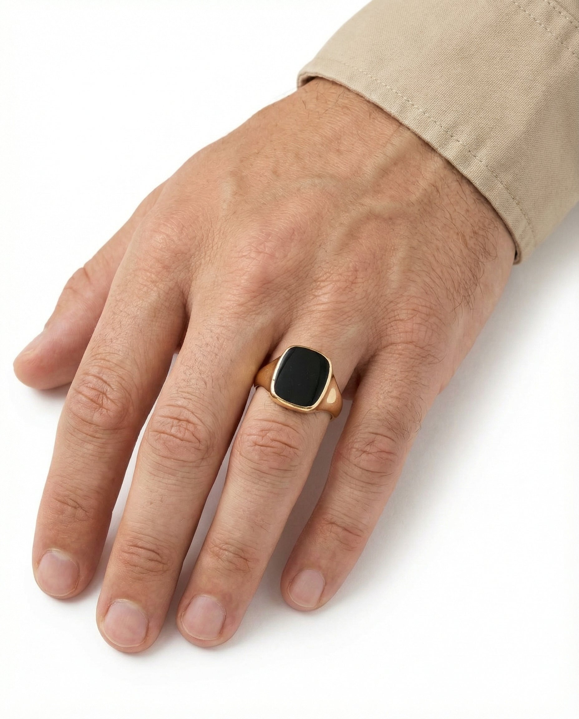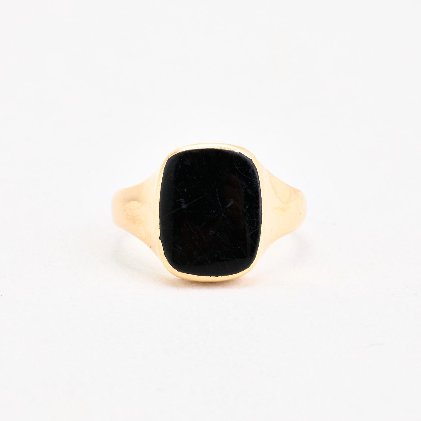 Signetring i 14K guld med en onyks, str. 64