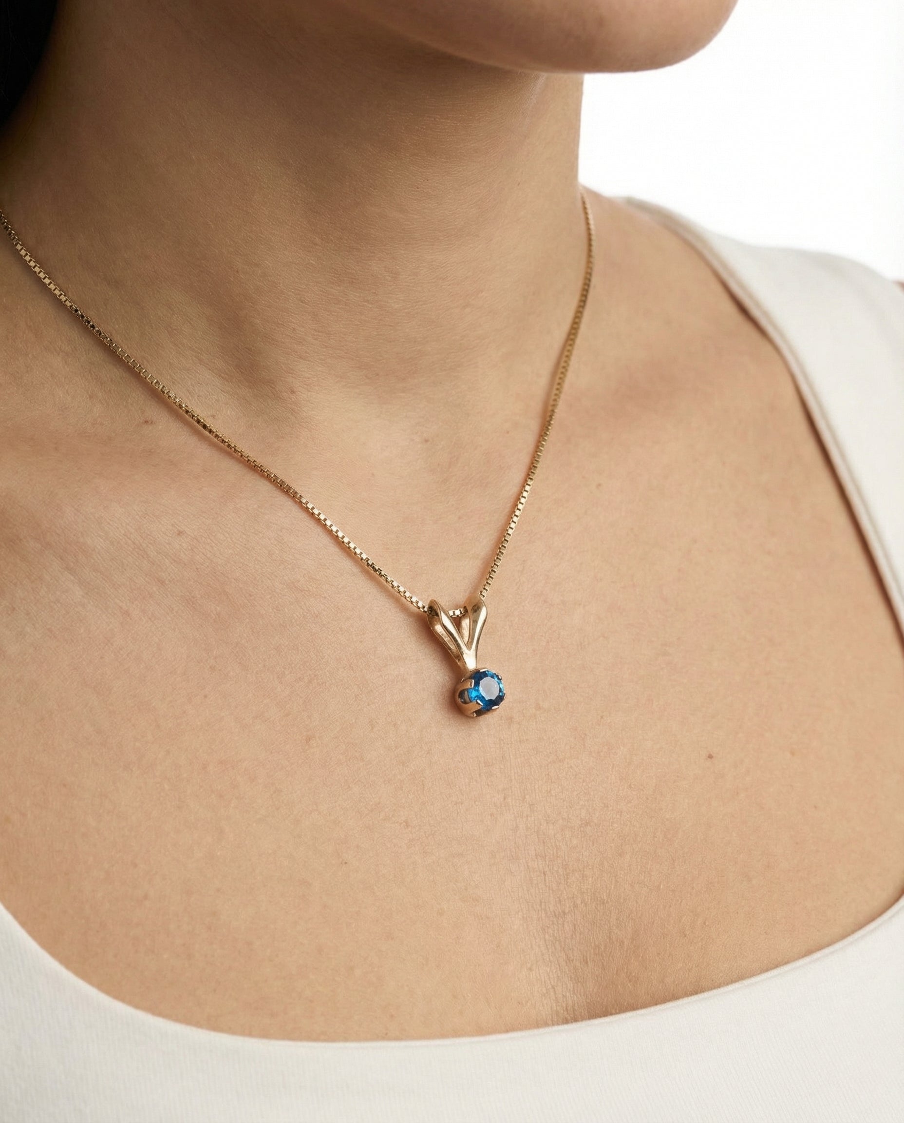 Solitaire vedhæng i 8K guld med en blå sten, 1 cm, 0,35 g