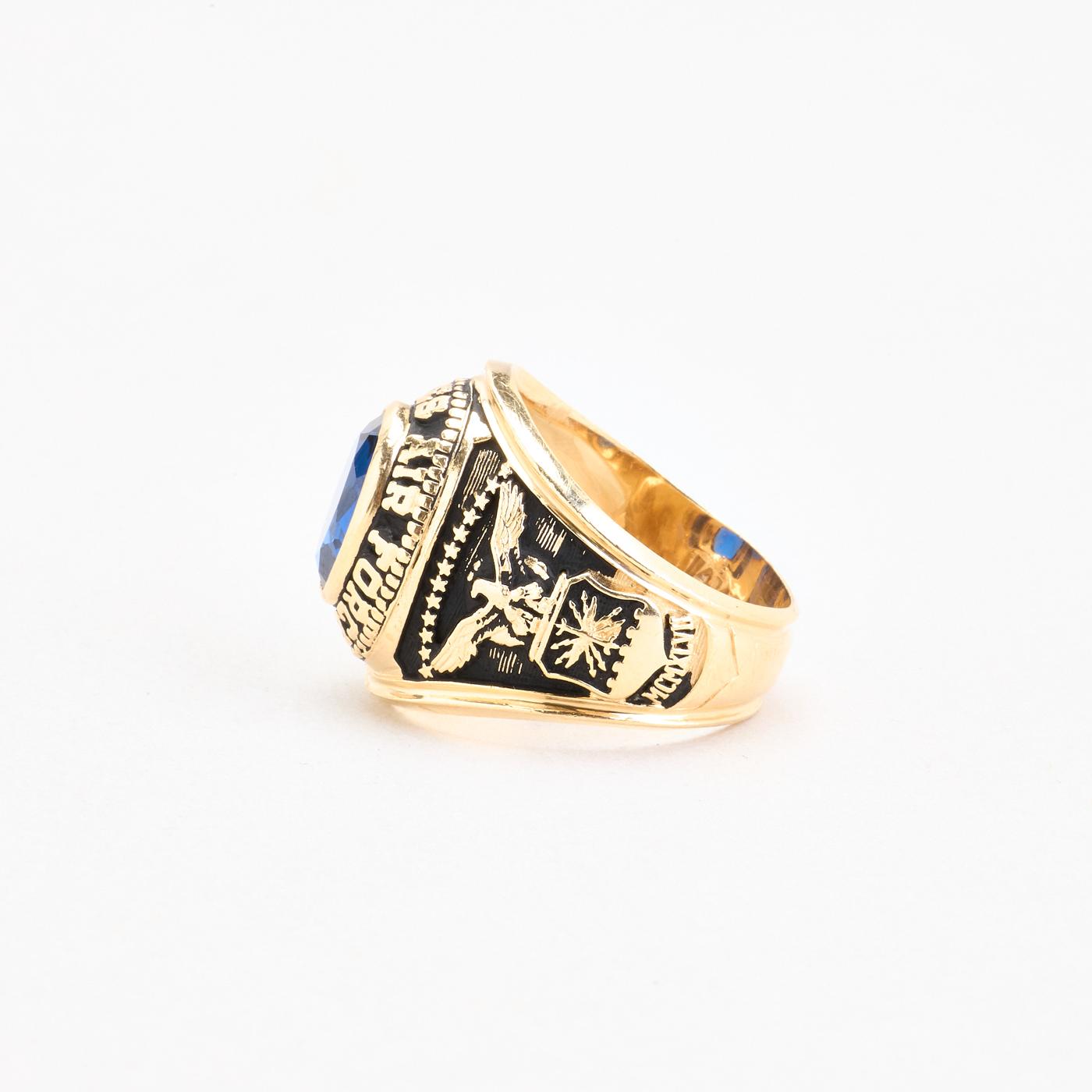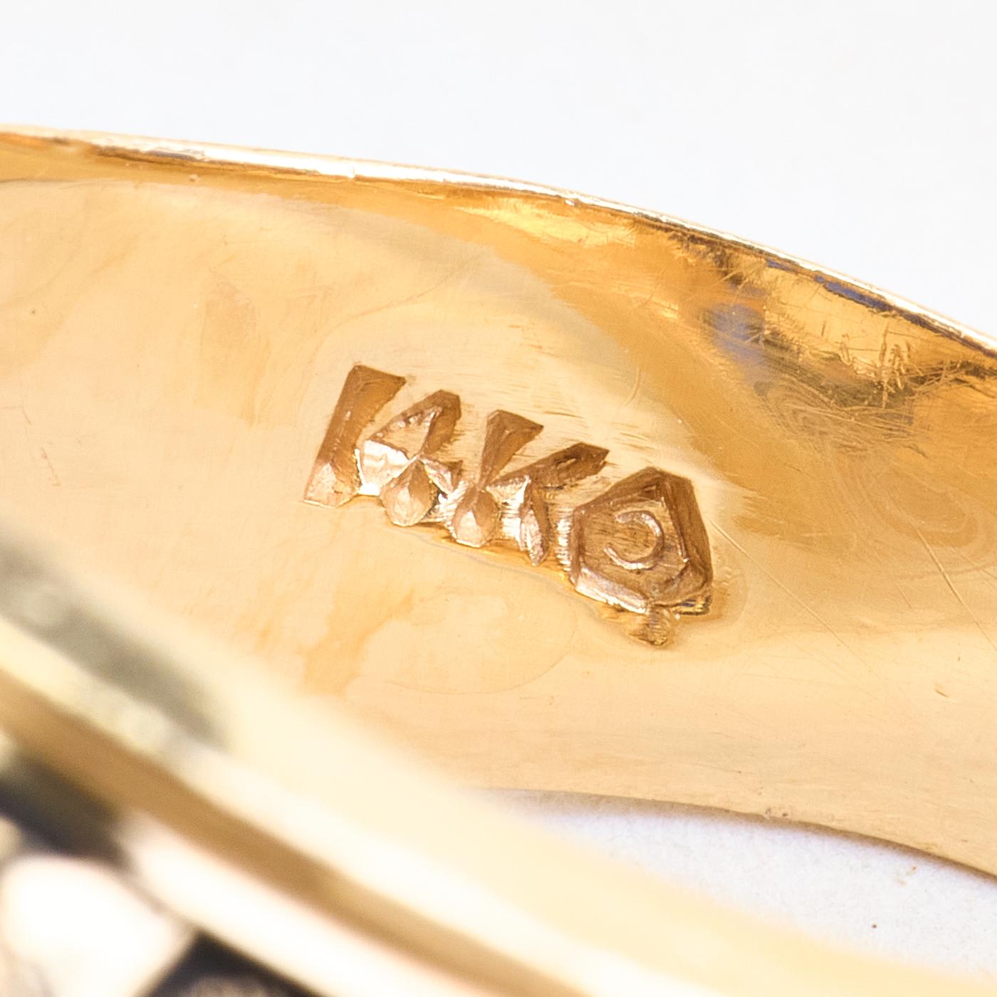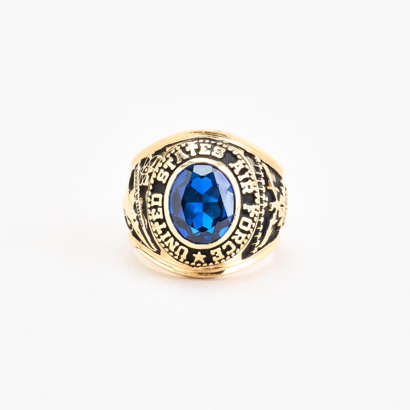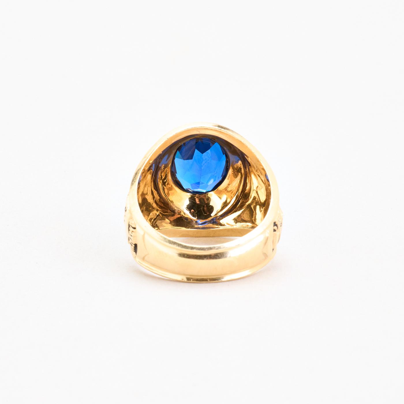 Gypsyring i 14K guld med blå sten, str. 62
