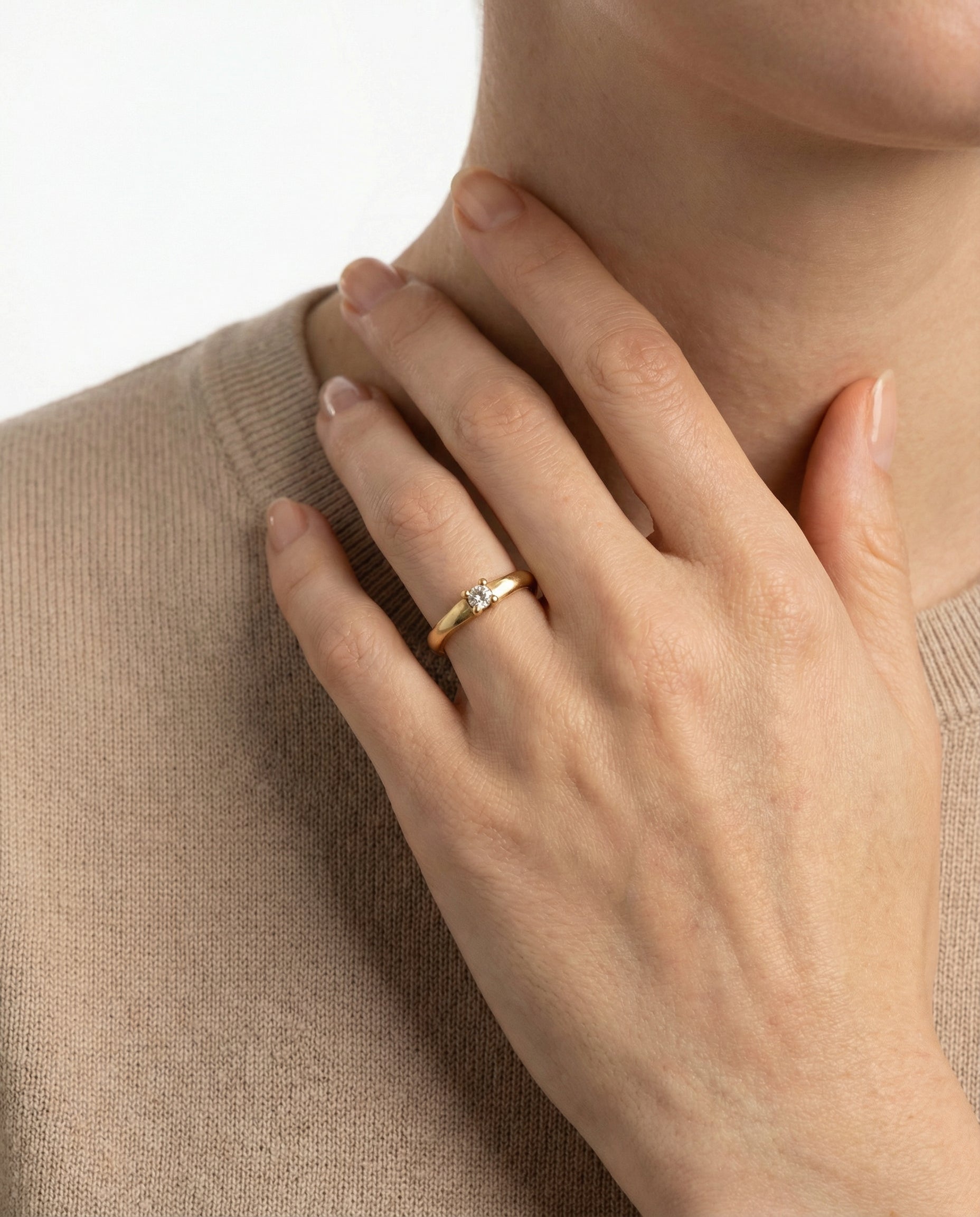 Solitairering med diamant (0.09 ct) i 14K guld, str. 56