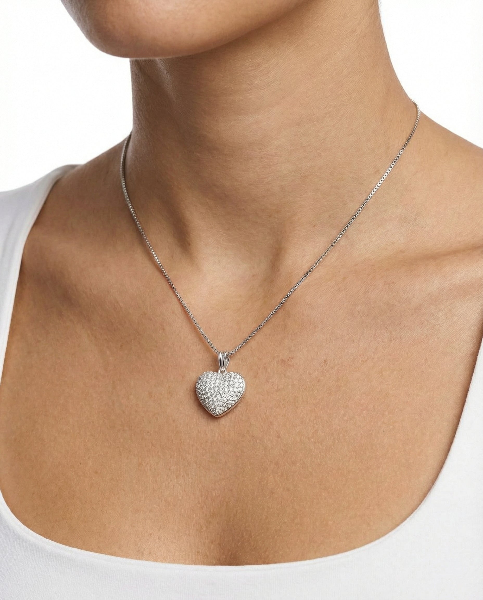 Hjerte vedhæng med diamant (0.48 ct) i 14K hvidguld, 2 cm, 3.47 g