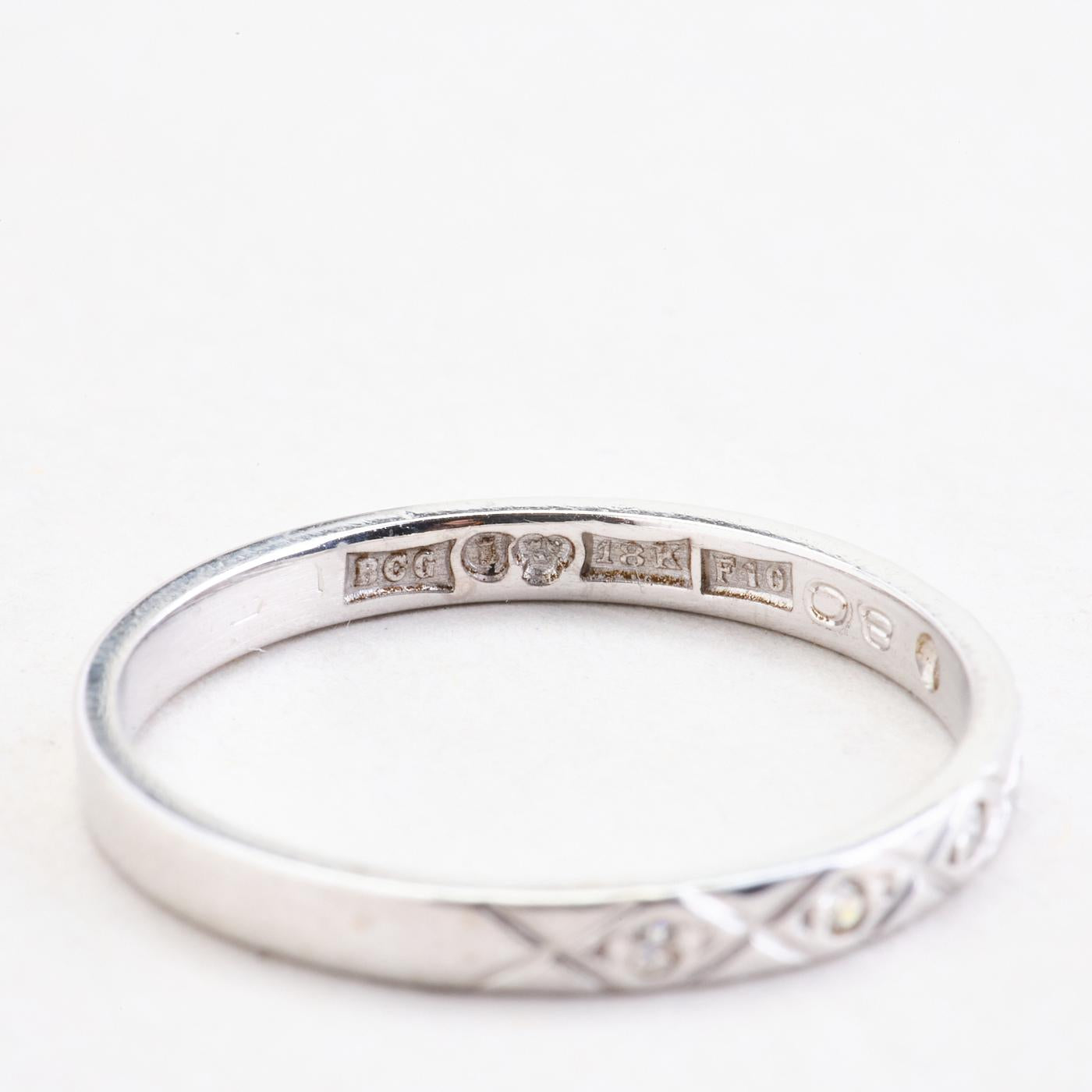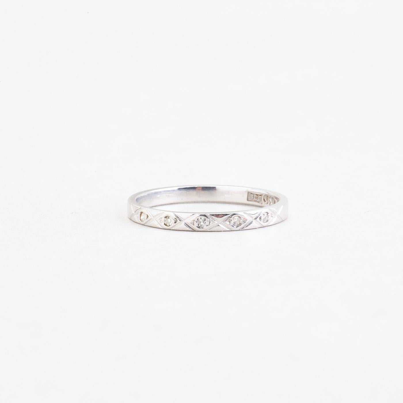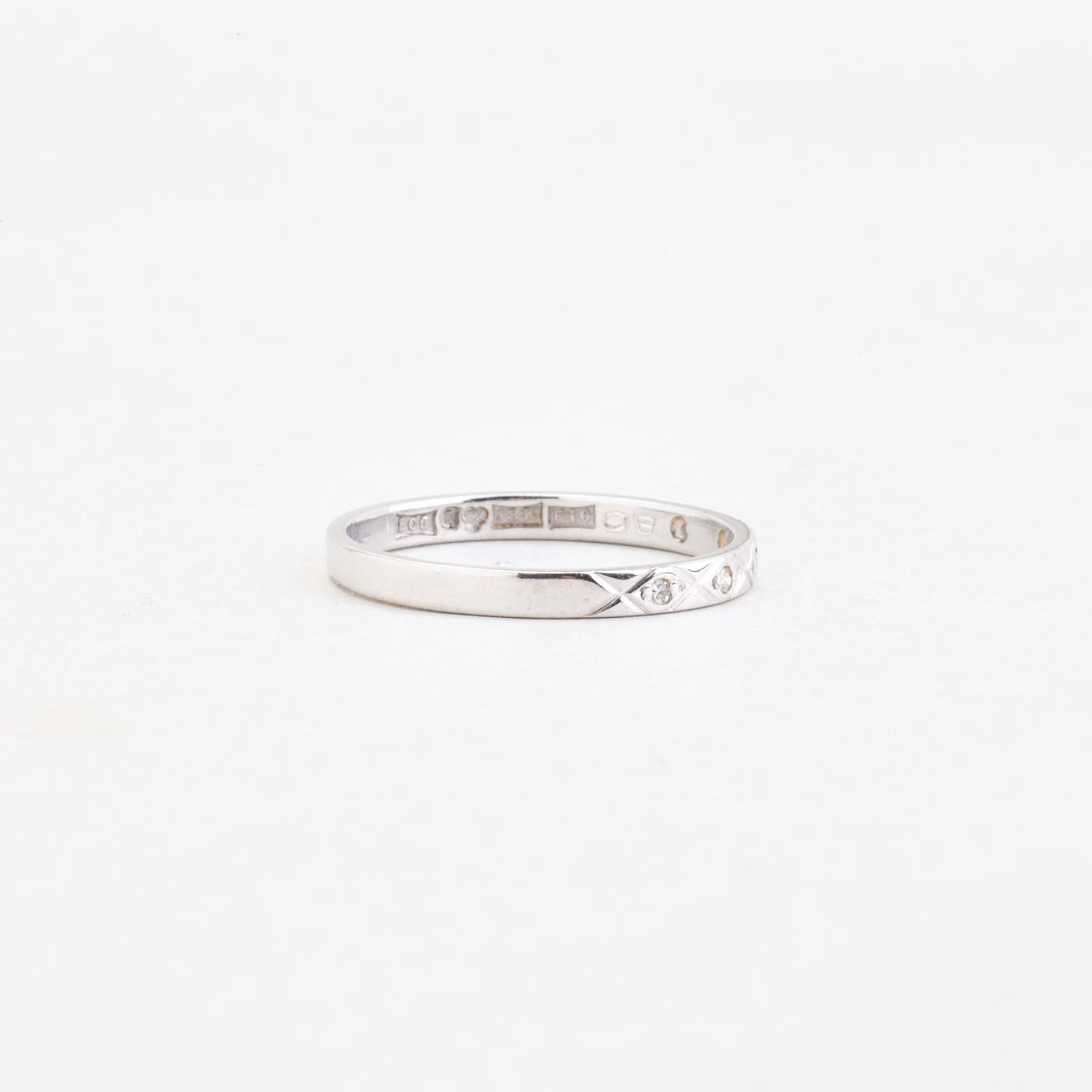 Alliancering med diamant (0.03 ct) i 18K hvidguld, str. 53
