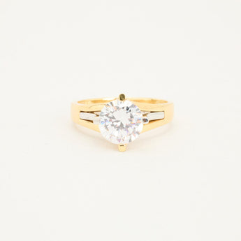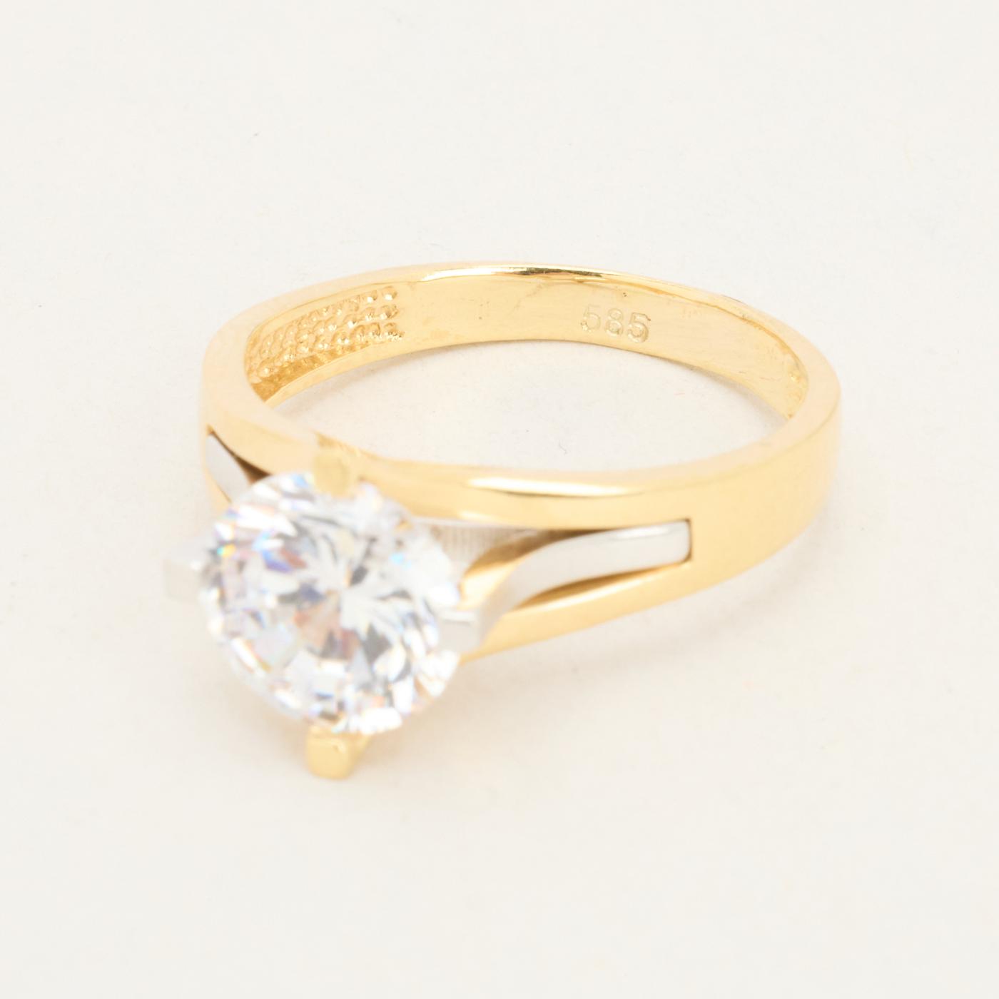Solitairering i 14K guld og hvidguld med en glas sten, str. 54