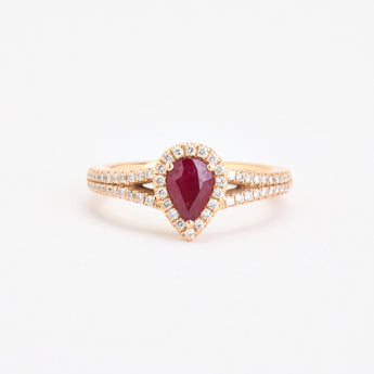 Haloring med diamant (0.19 ct) i 18K guld med en rubin, str. 54