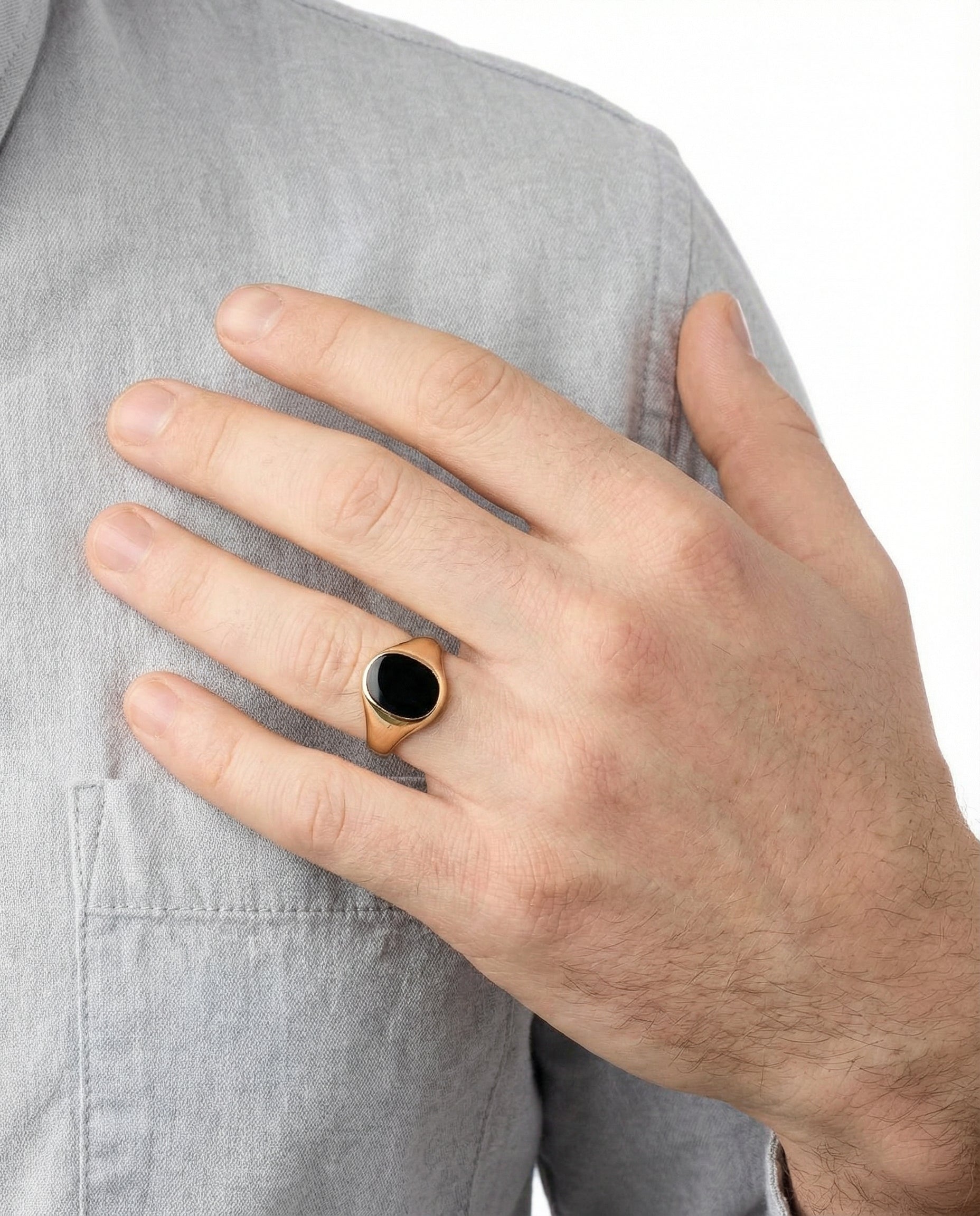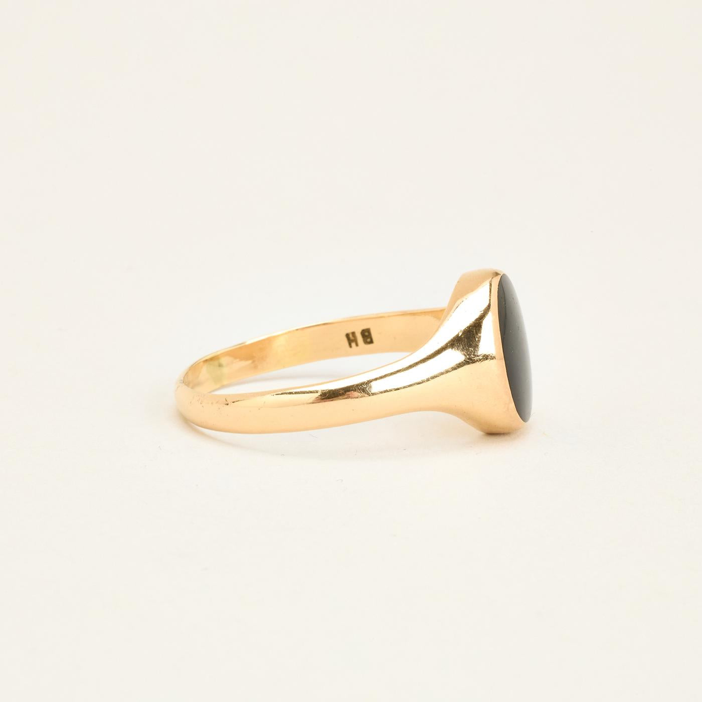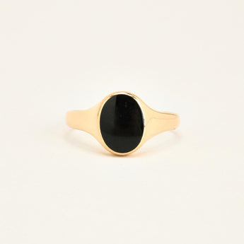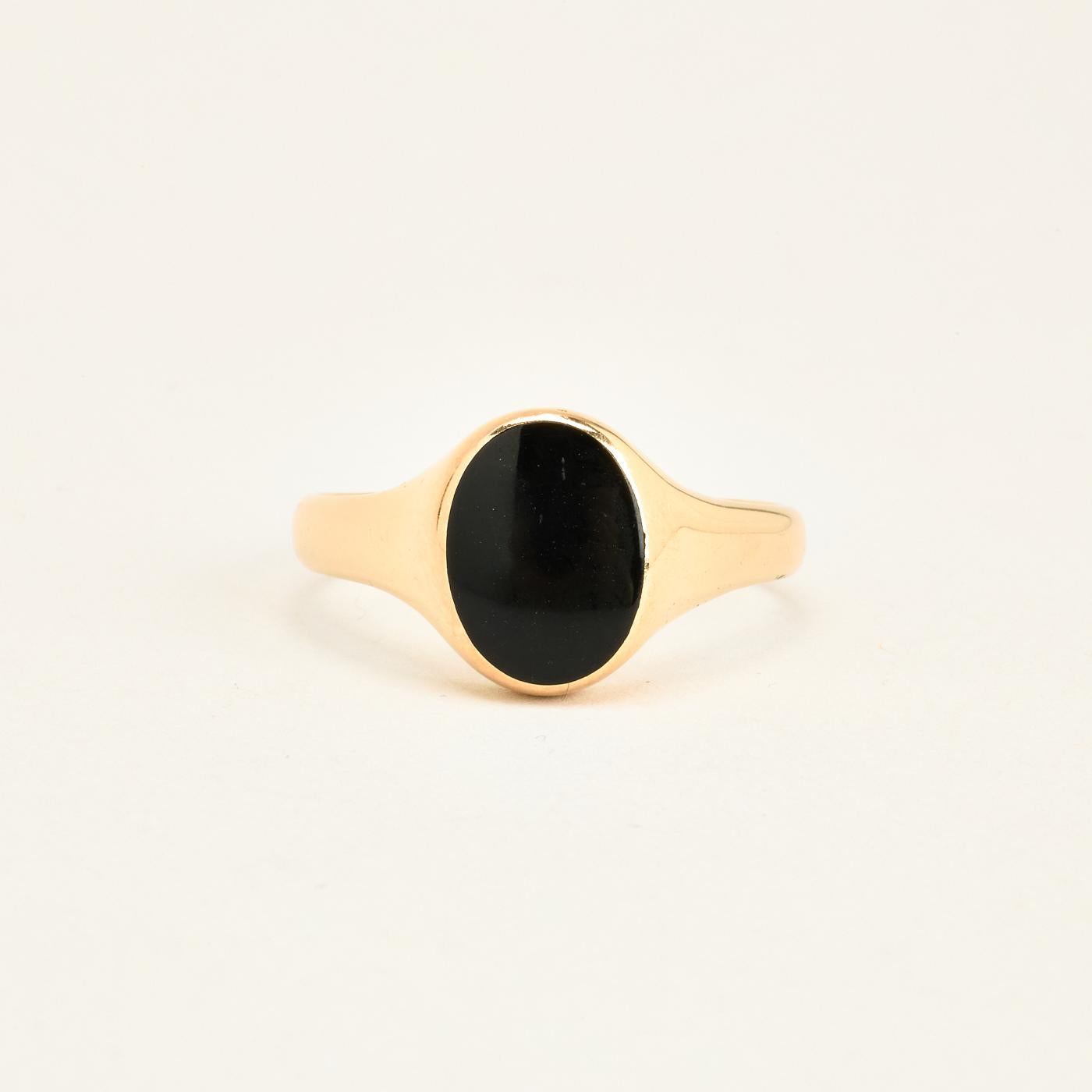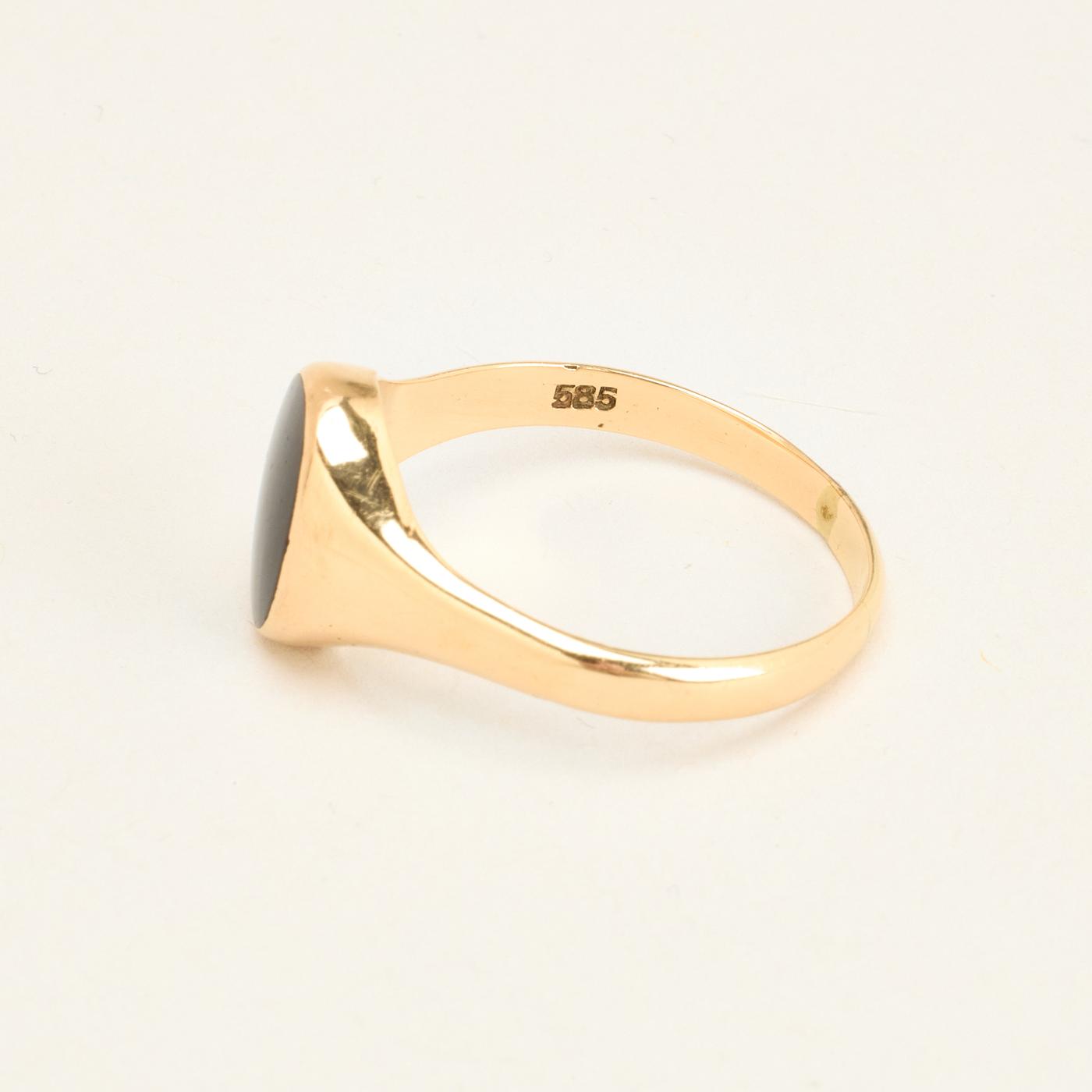Signetring i 14K guld med onyks, Str. 72