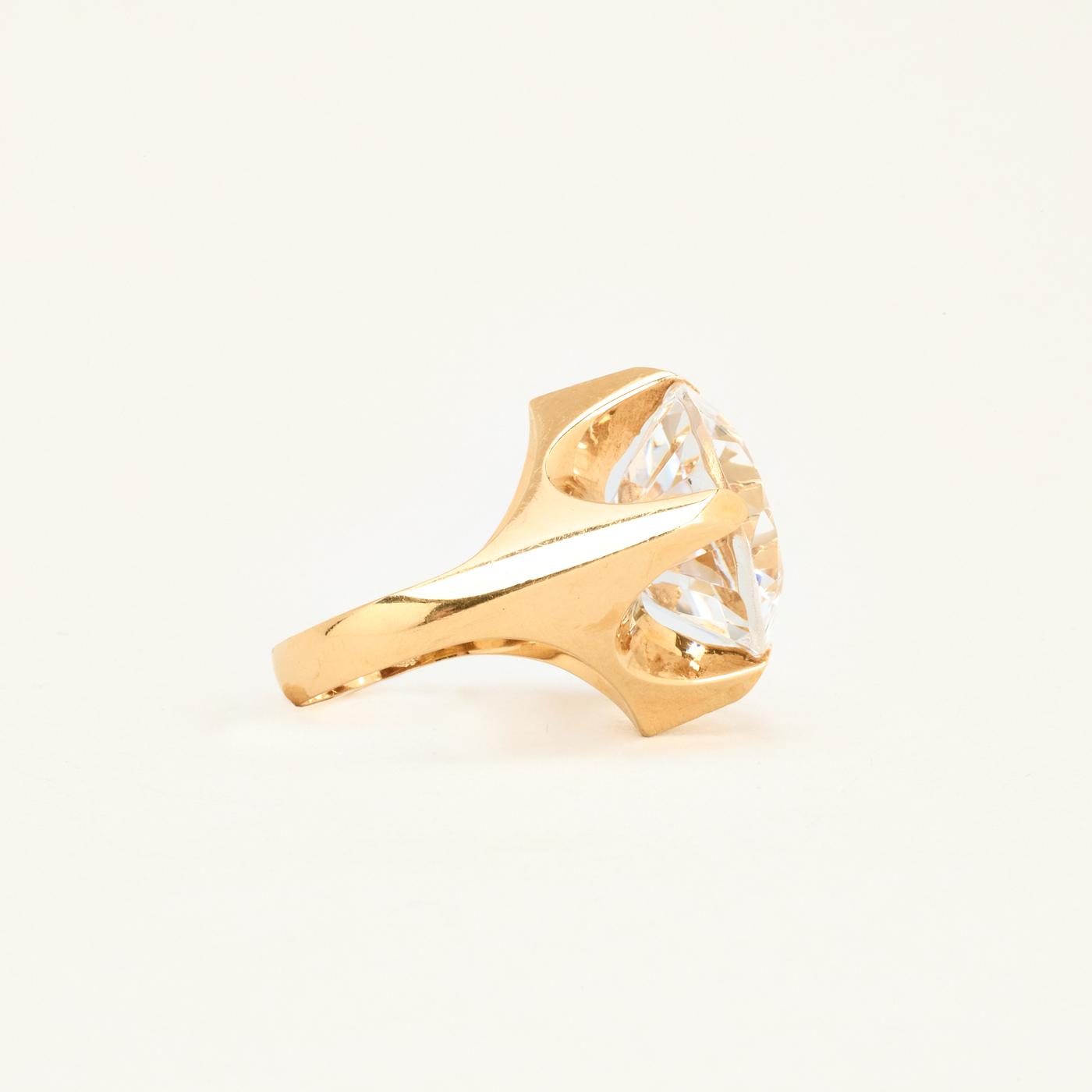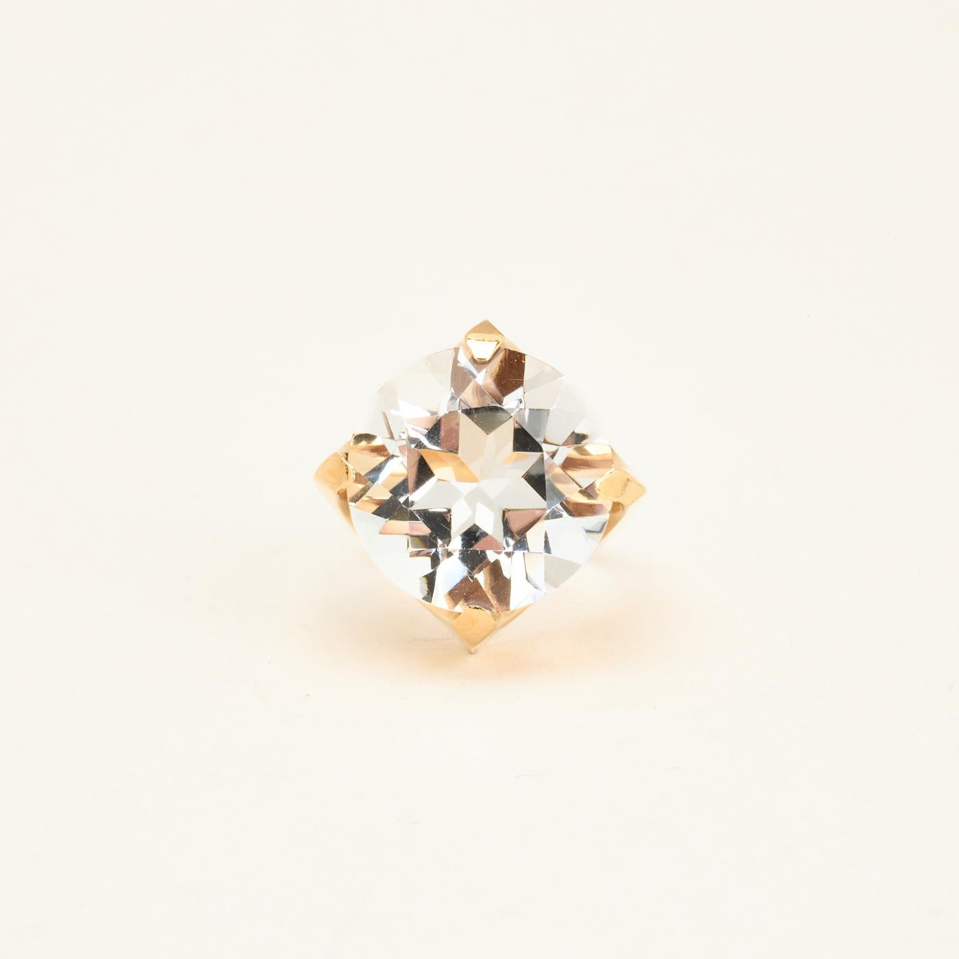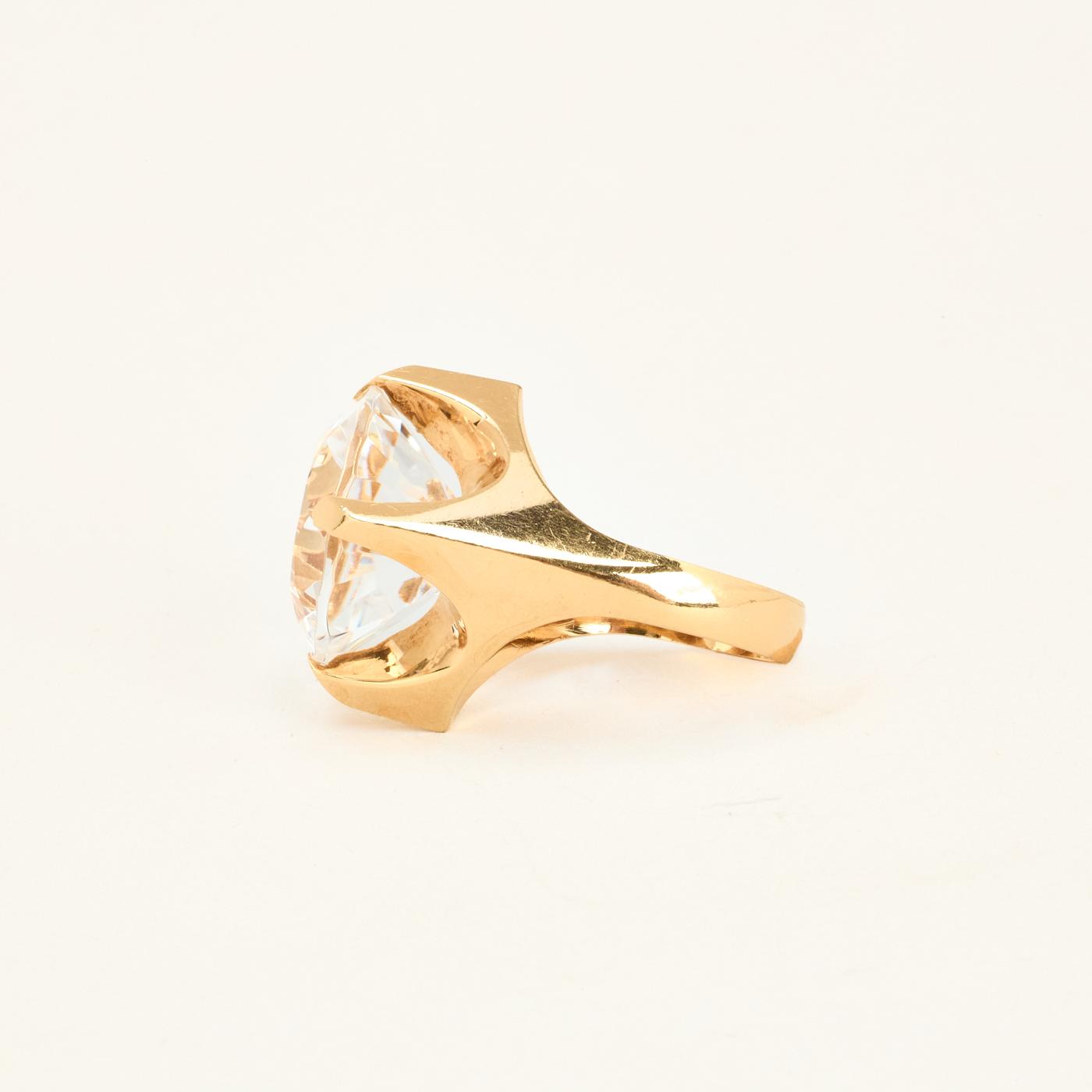 Cocktail ring i 14K guld med hvid sten, str. 52