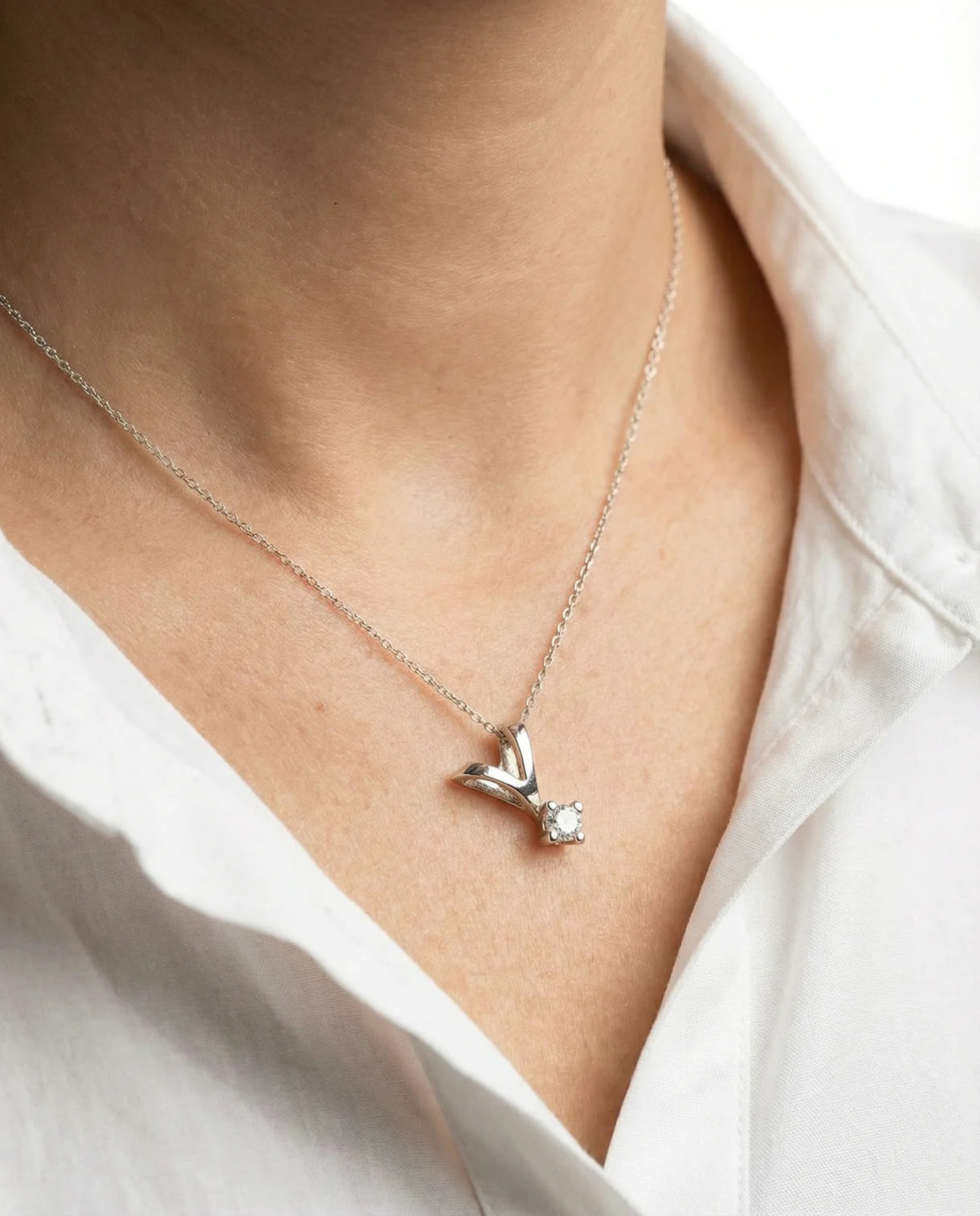 Solitaire vedhæng med diamant (0.13 ct) i 14K hvidguld, 1 cm, 0.49 g