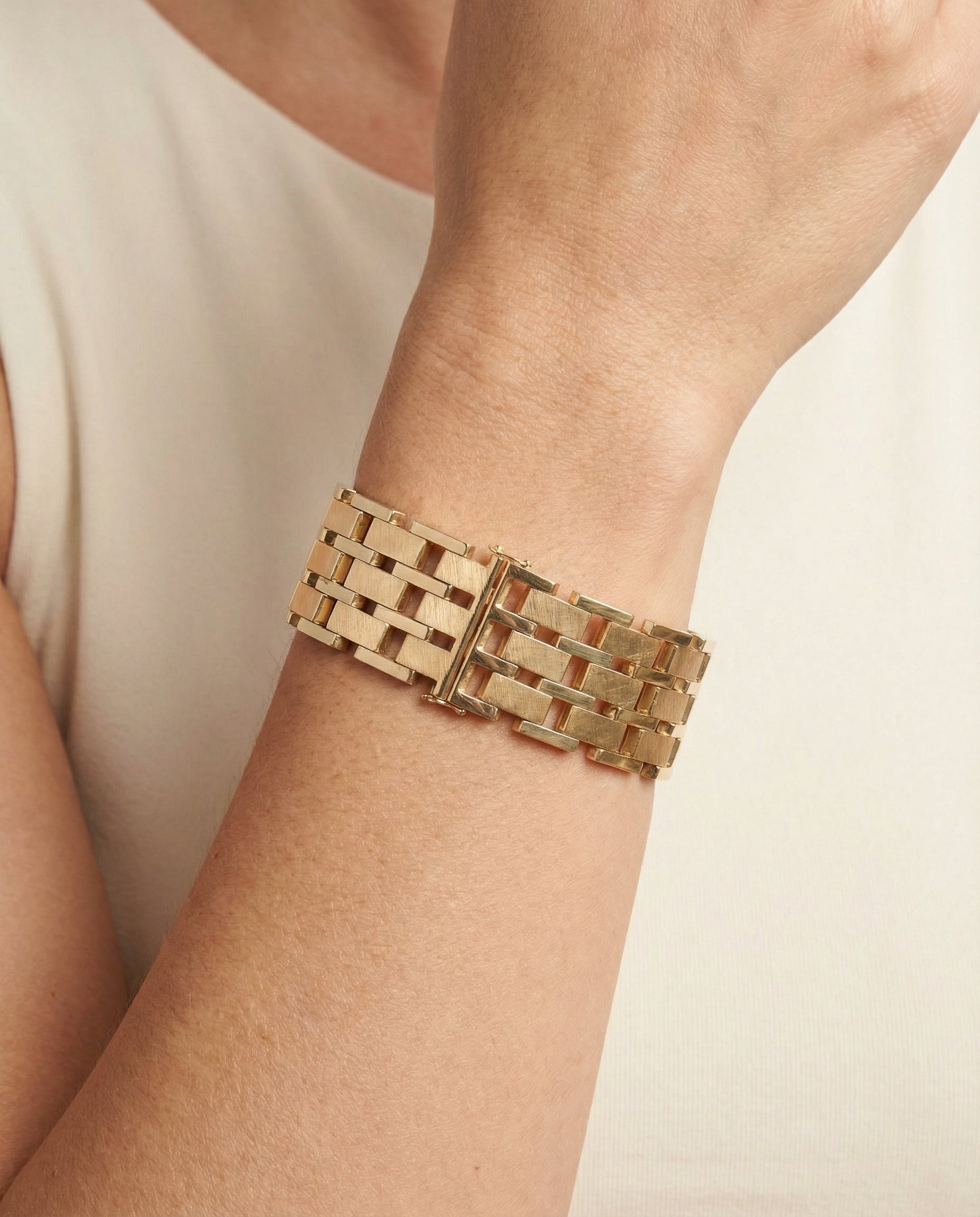 Model: Blok Armbånd i 14K guld, 19 cm, 57.2 g
