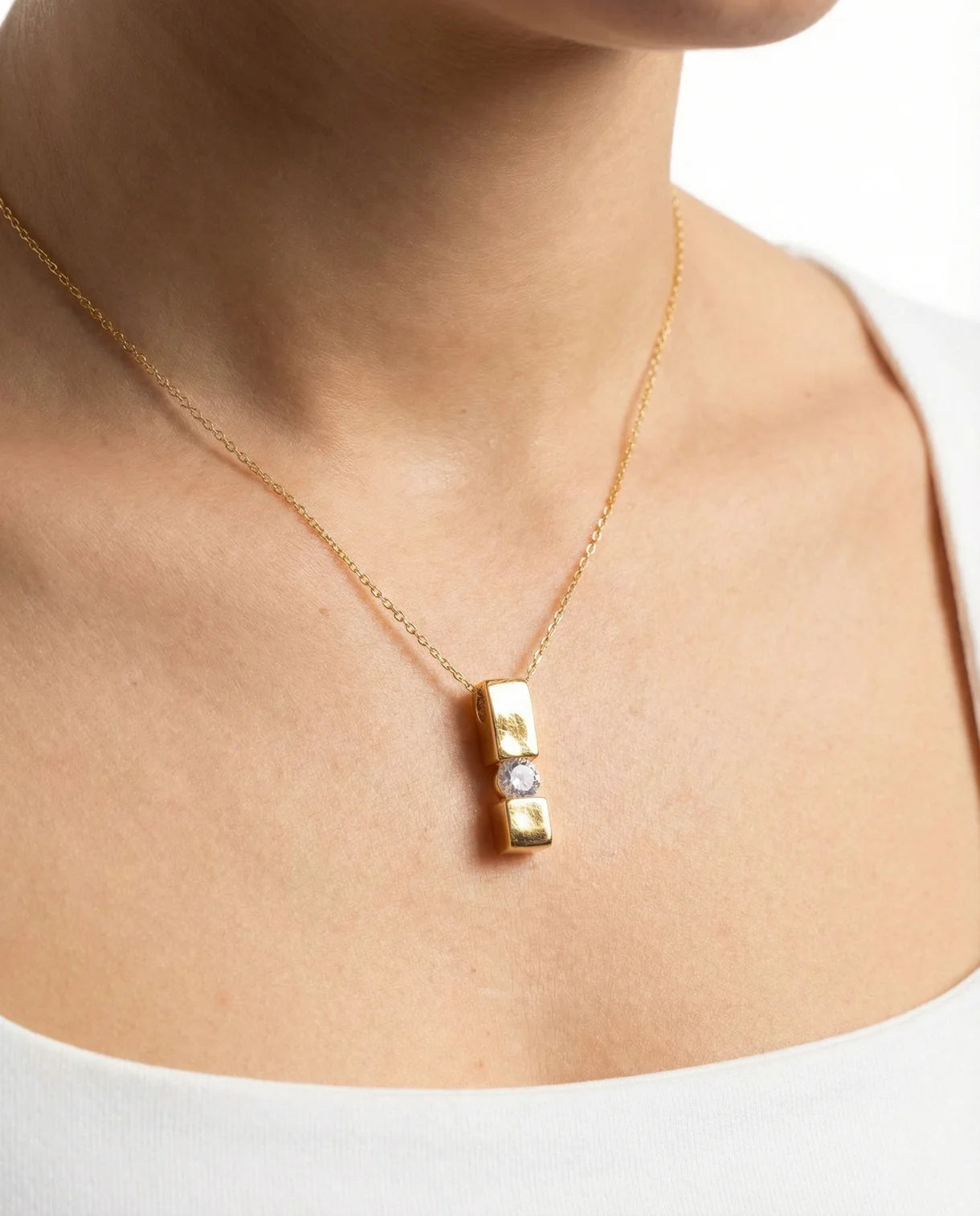 Vedhæng i 18K guld med hvid sten, 1.8 cm, 1.5 g