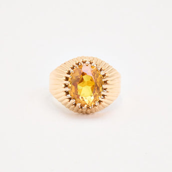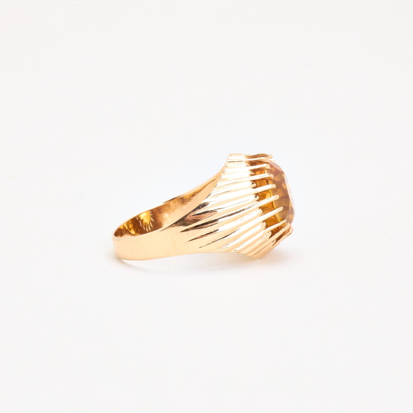 Signetring i 18K guld med gule sten, Str. 55