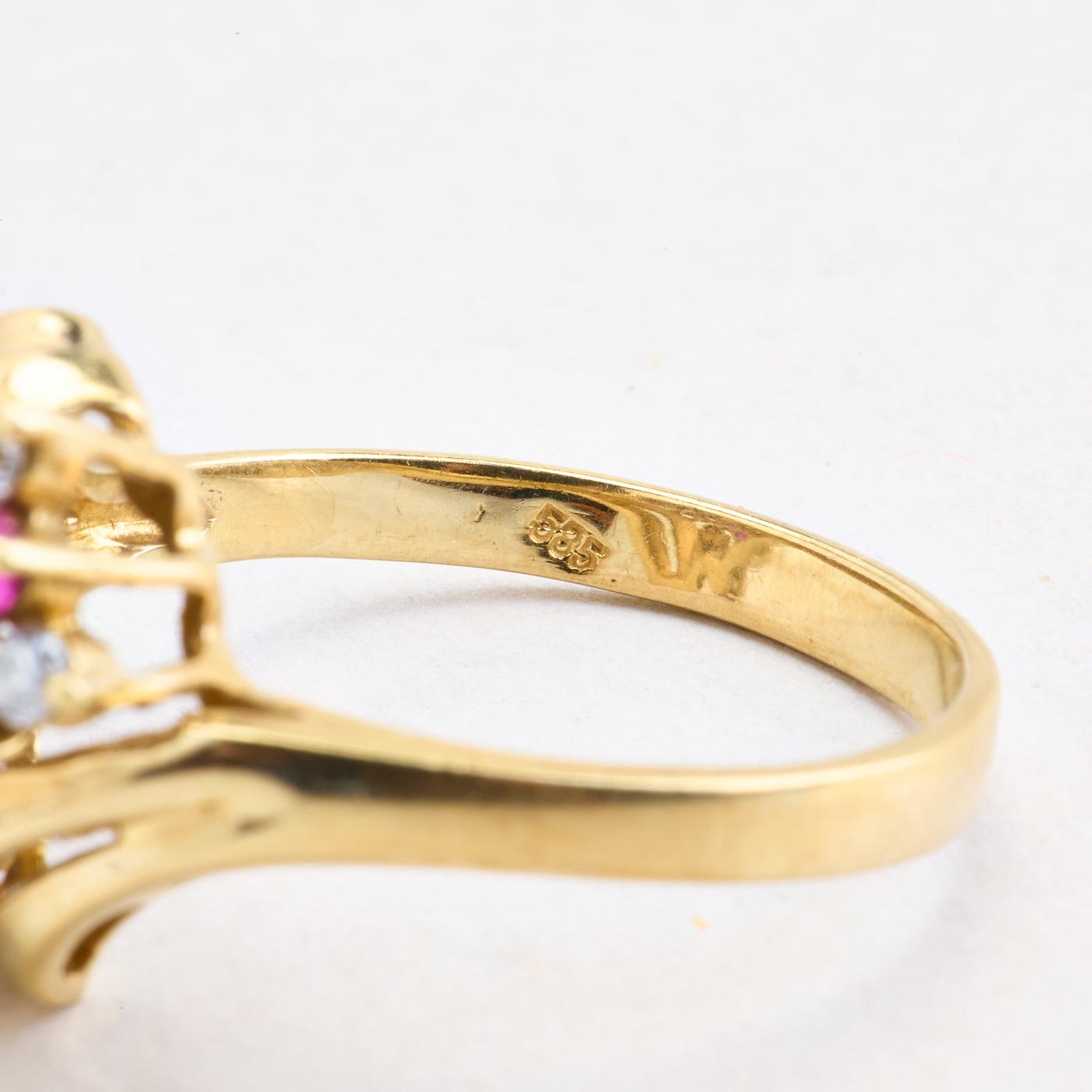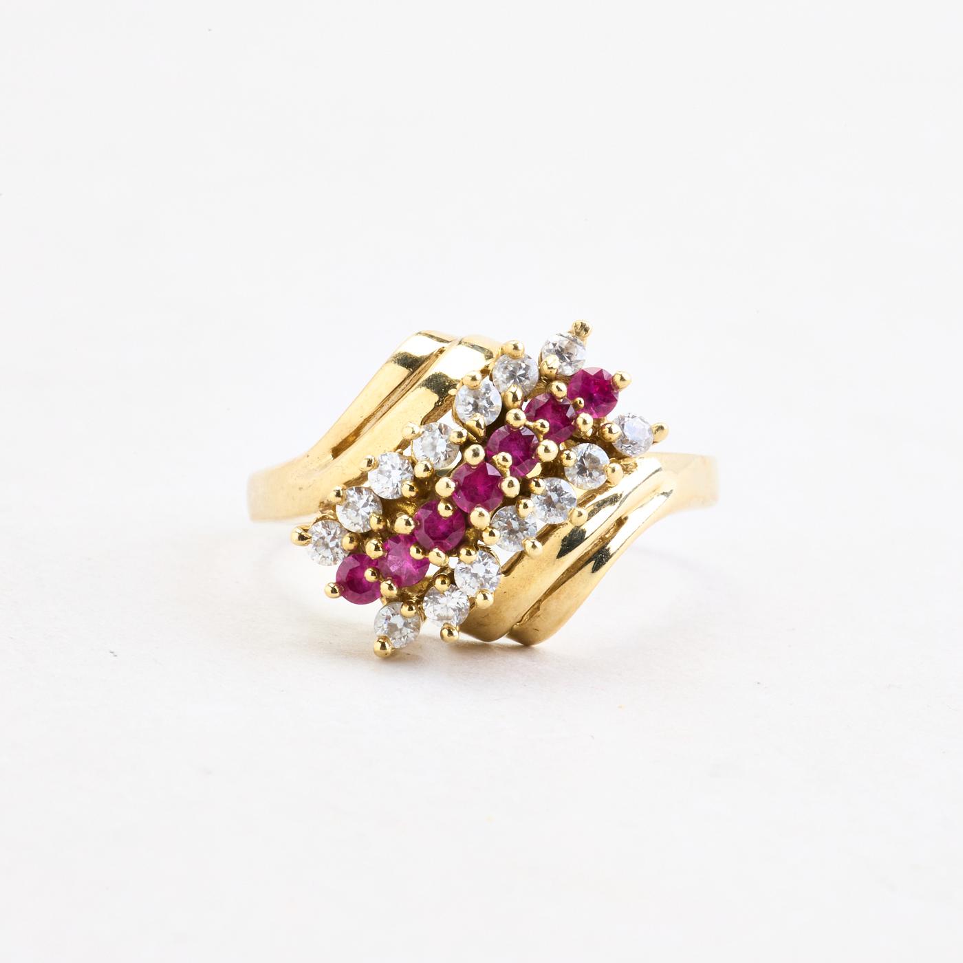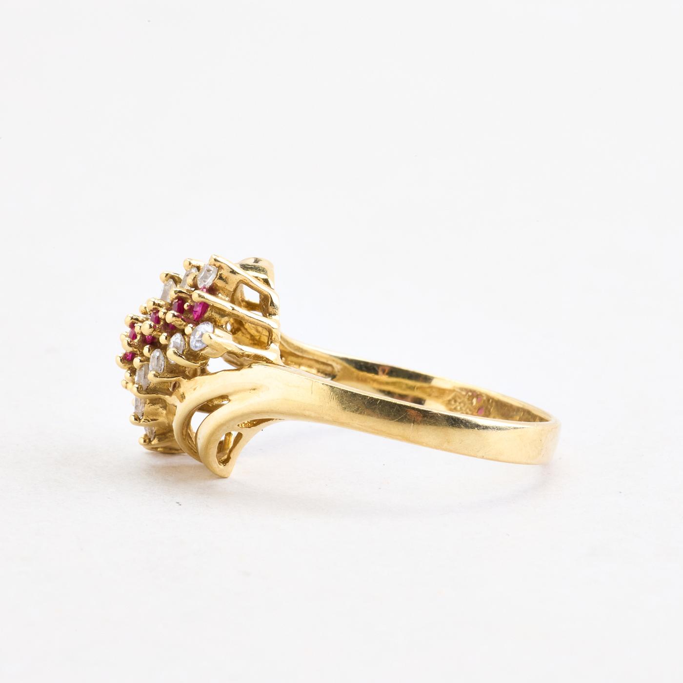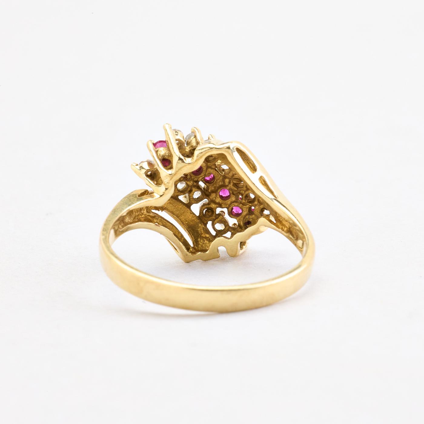 Clusterring i 14K guld med flerfarvede sten, str. 61