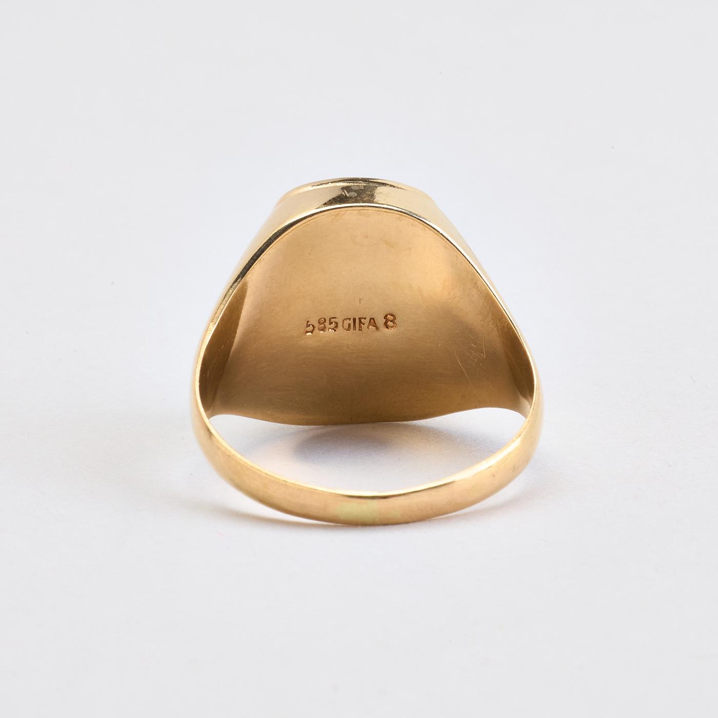 Signetring i 14K guld med en onyx, Str. 63