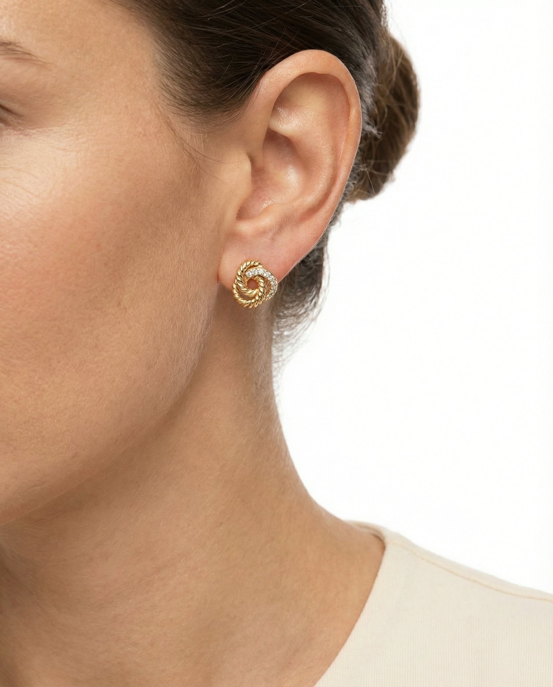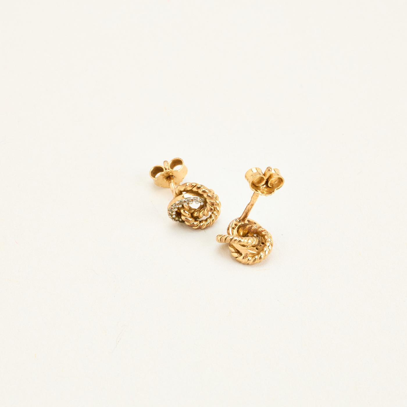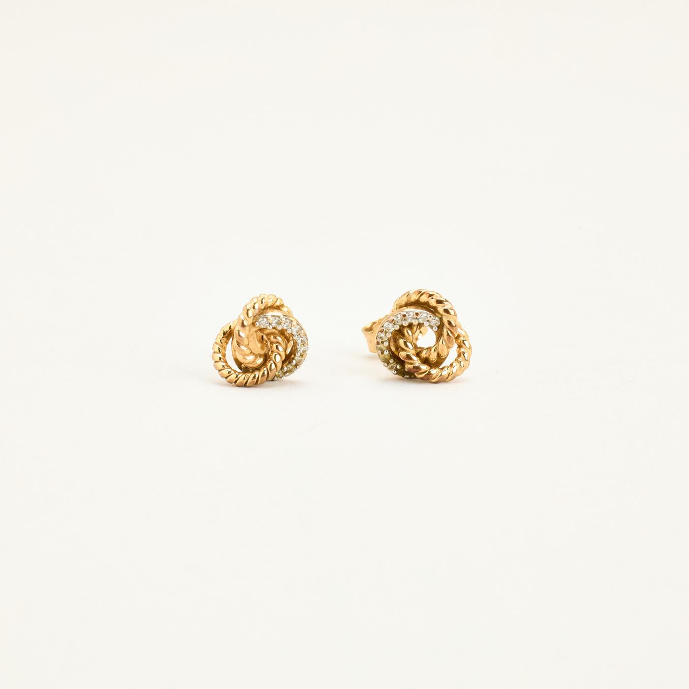Knude Øreringe med stik i 8K guld med en zirkonia, 0.7 cm,