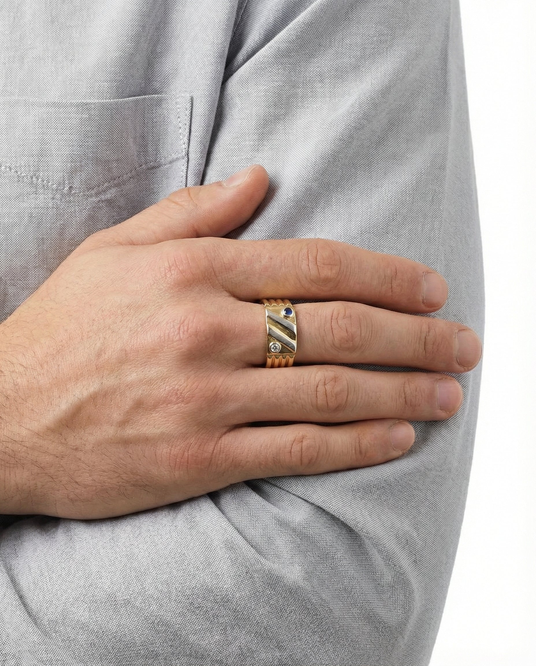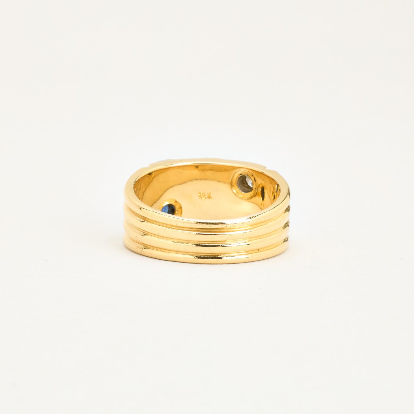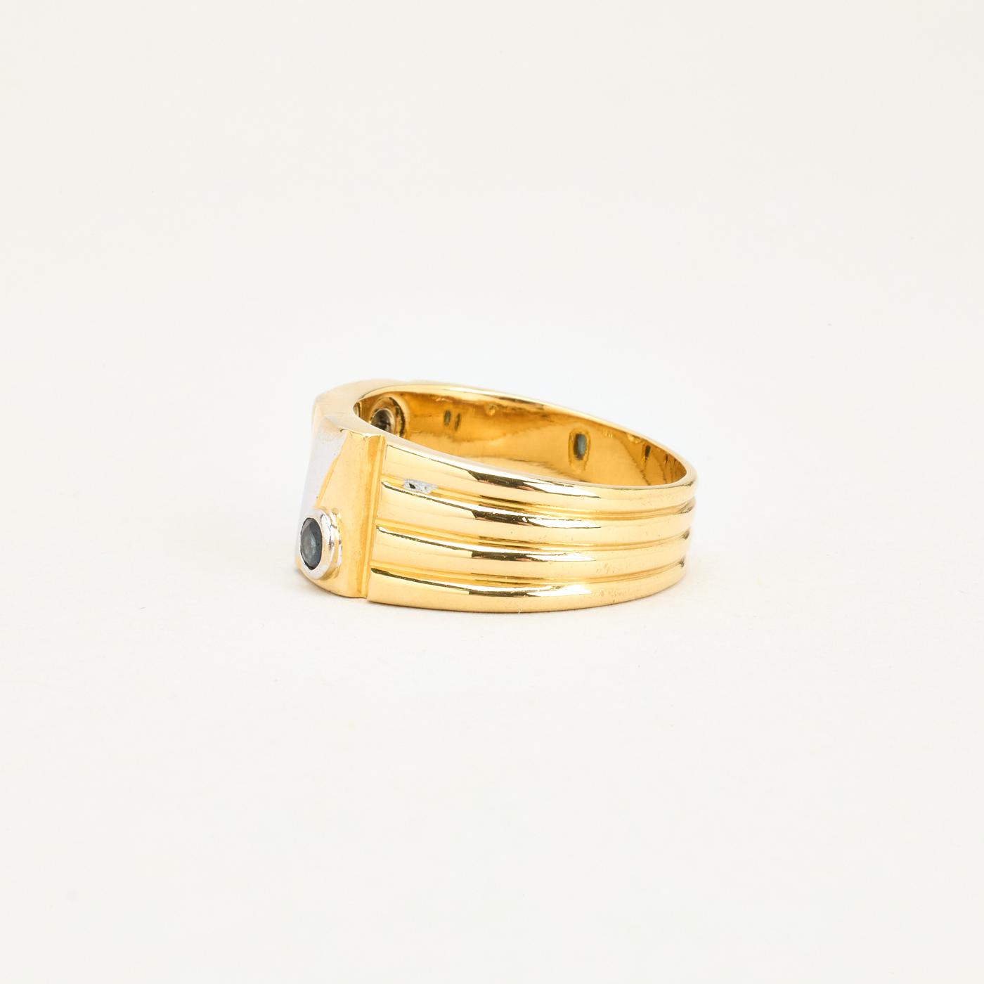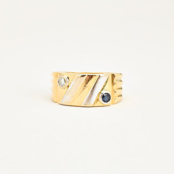 Gypsyring med diamant (0.07 ct) i 18K guld og hvidguld med en safir, str. 62