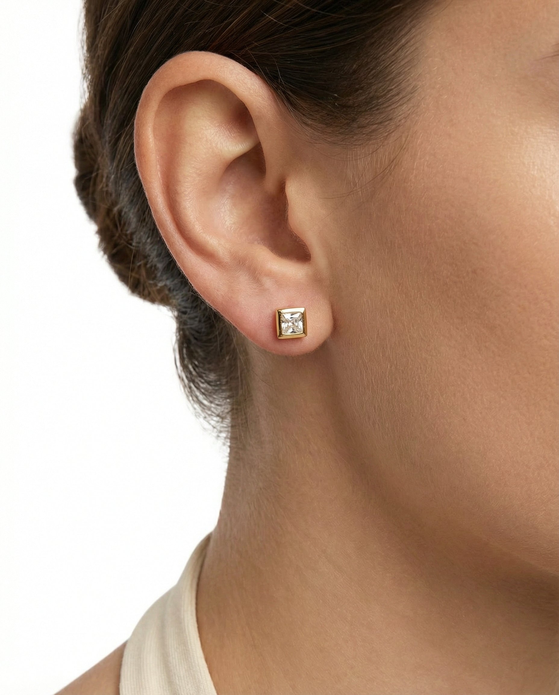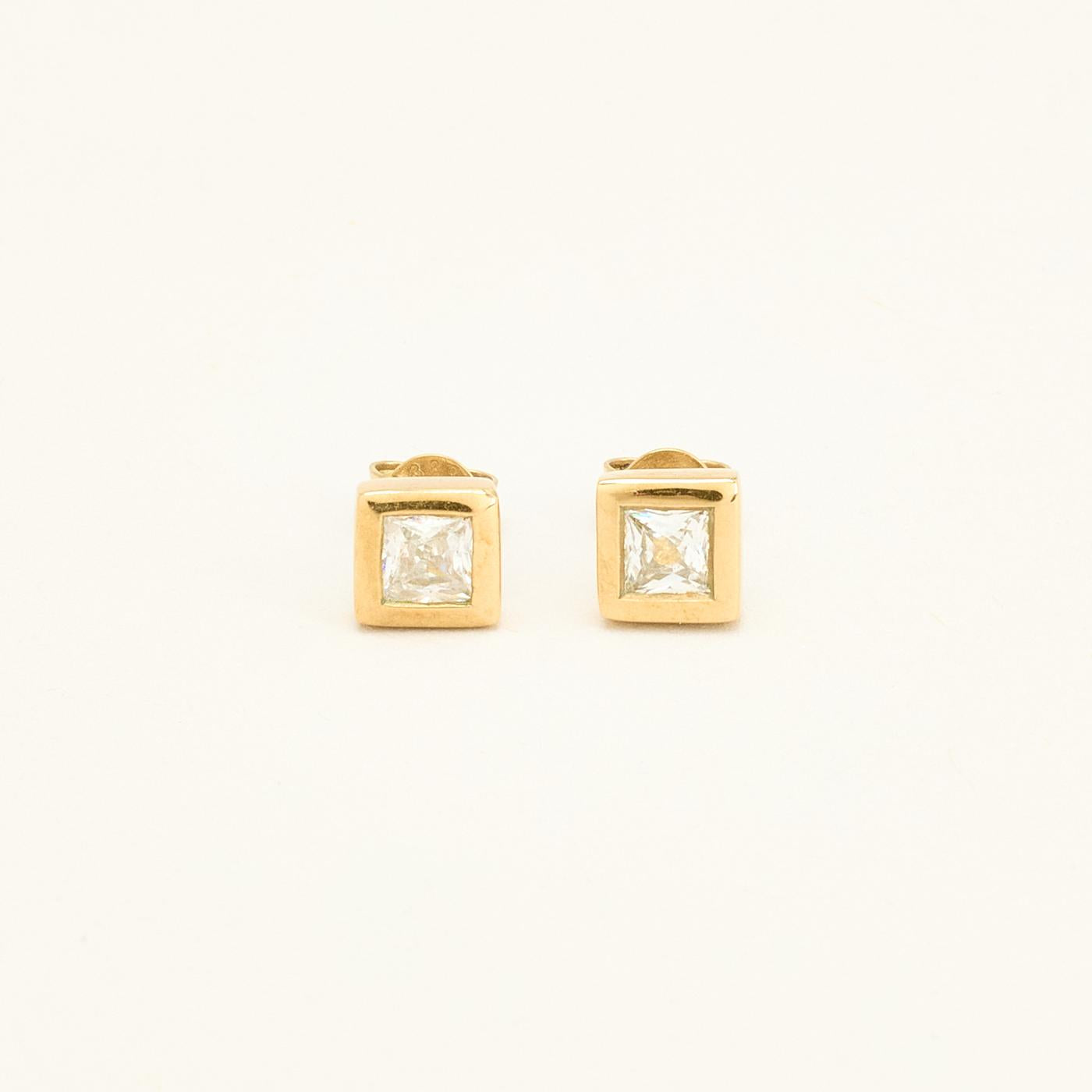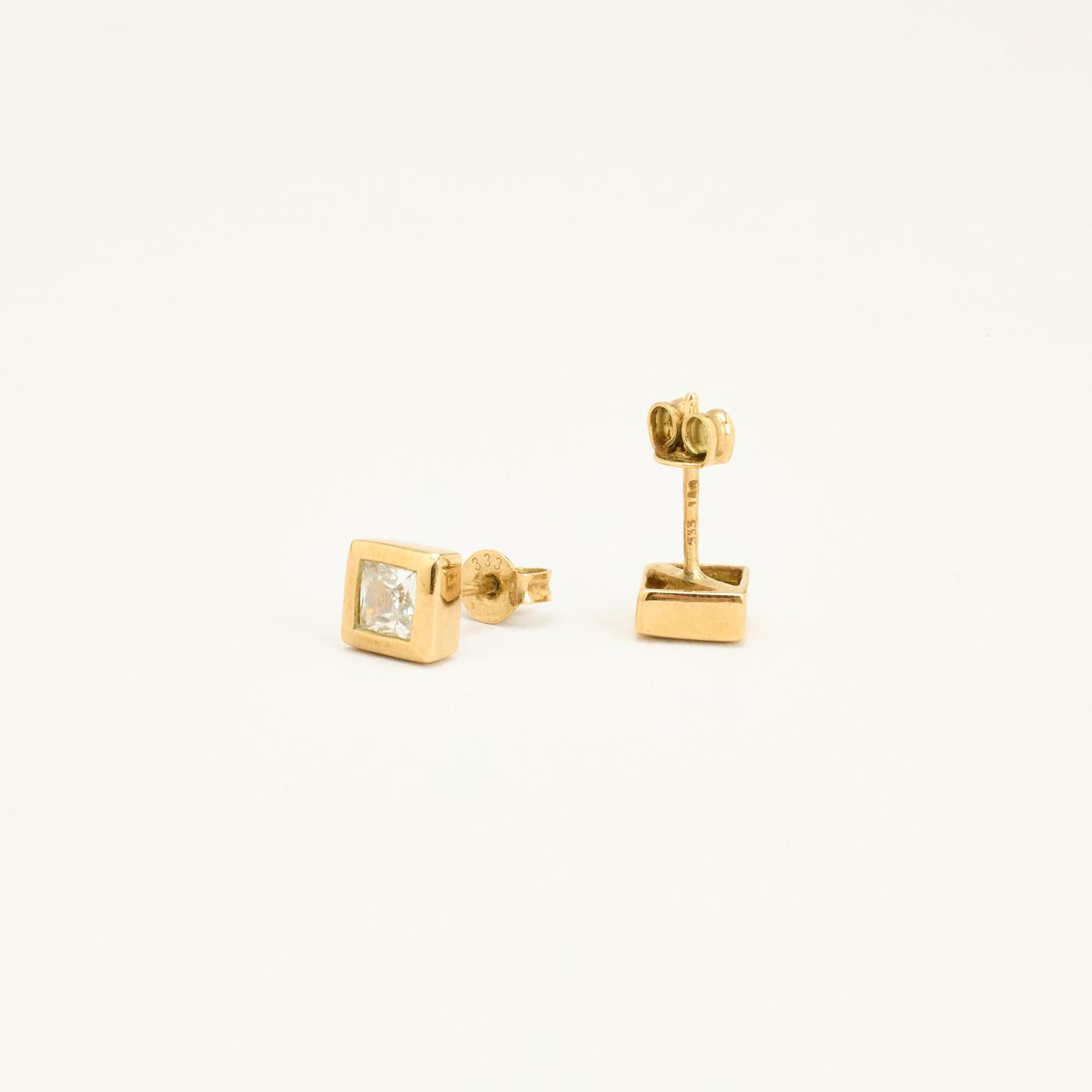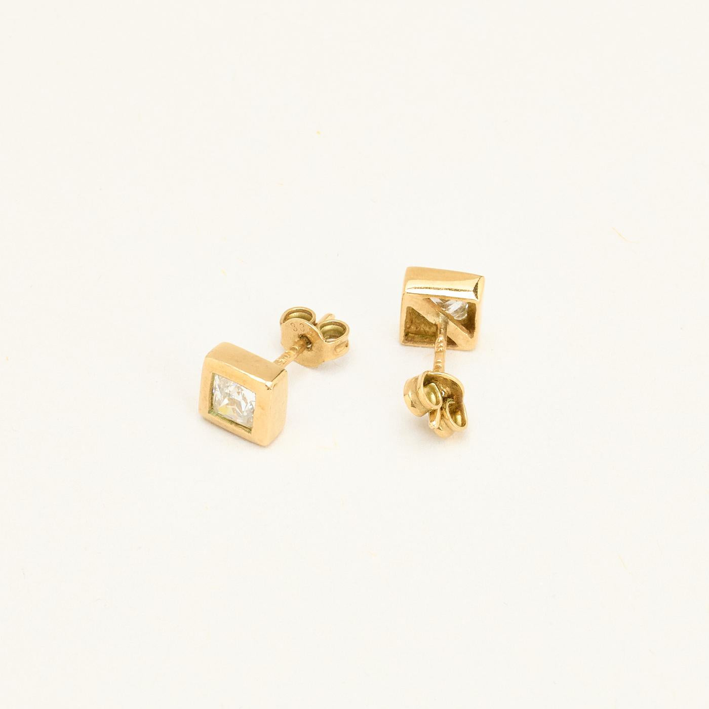 Solitair øreringe i 8K guld med zircon, 0.6 cm