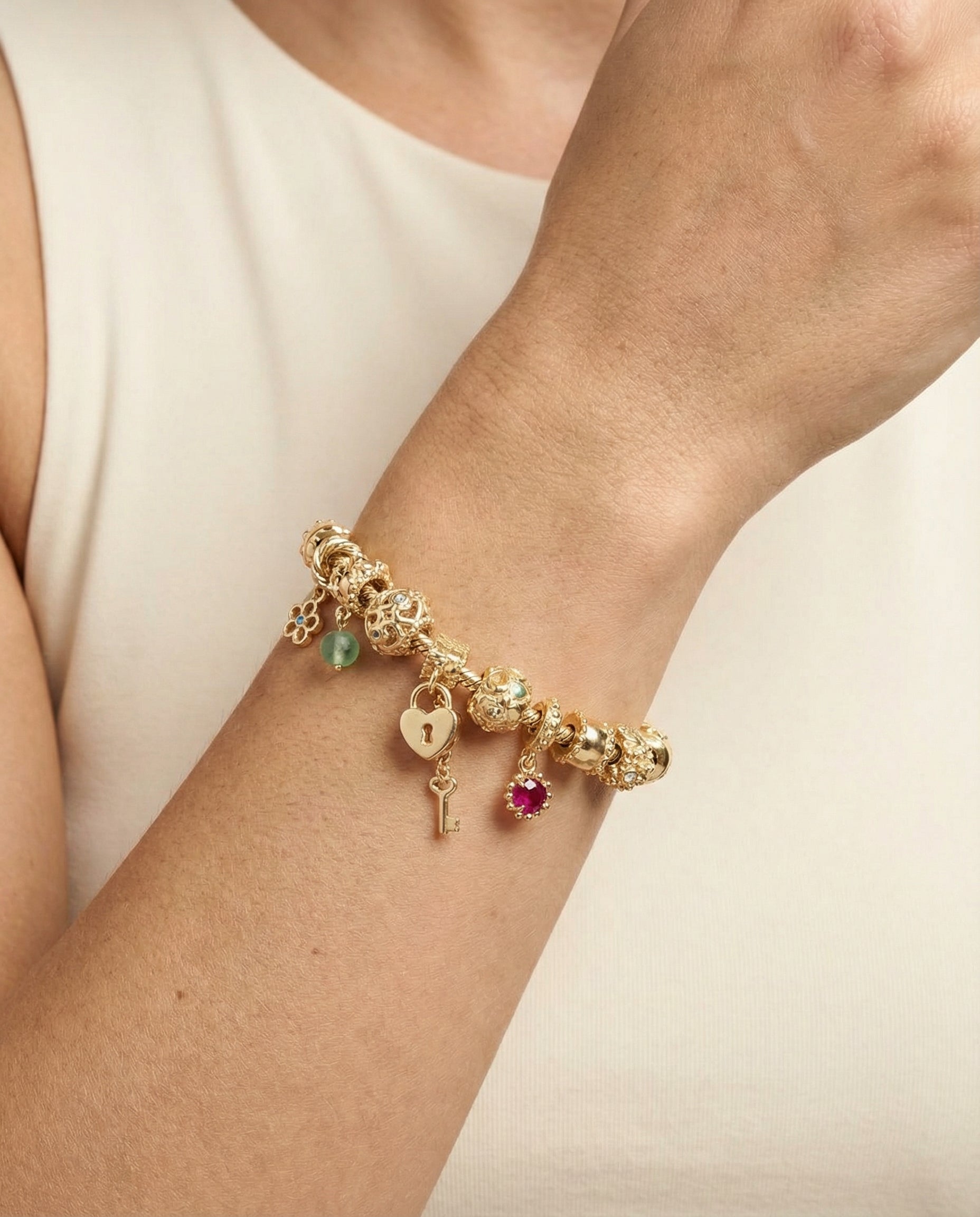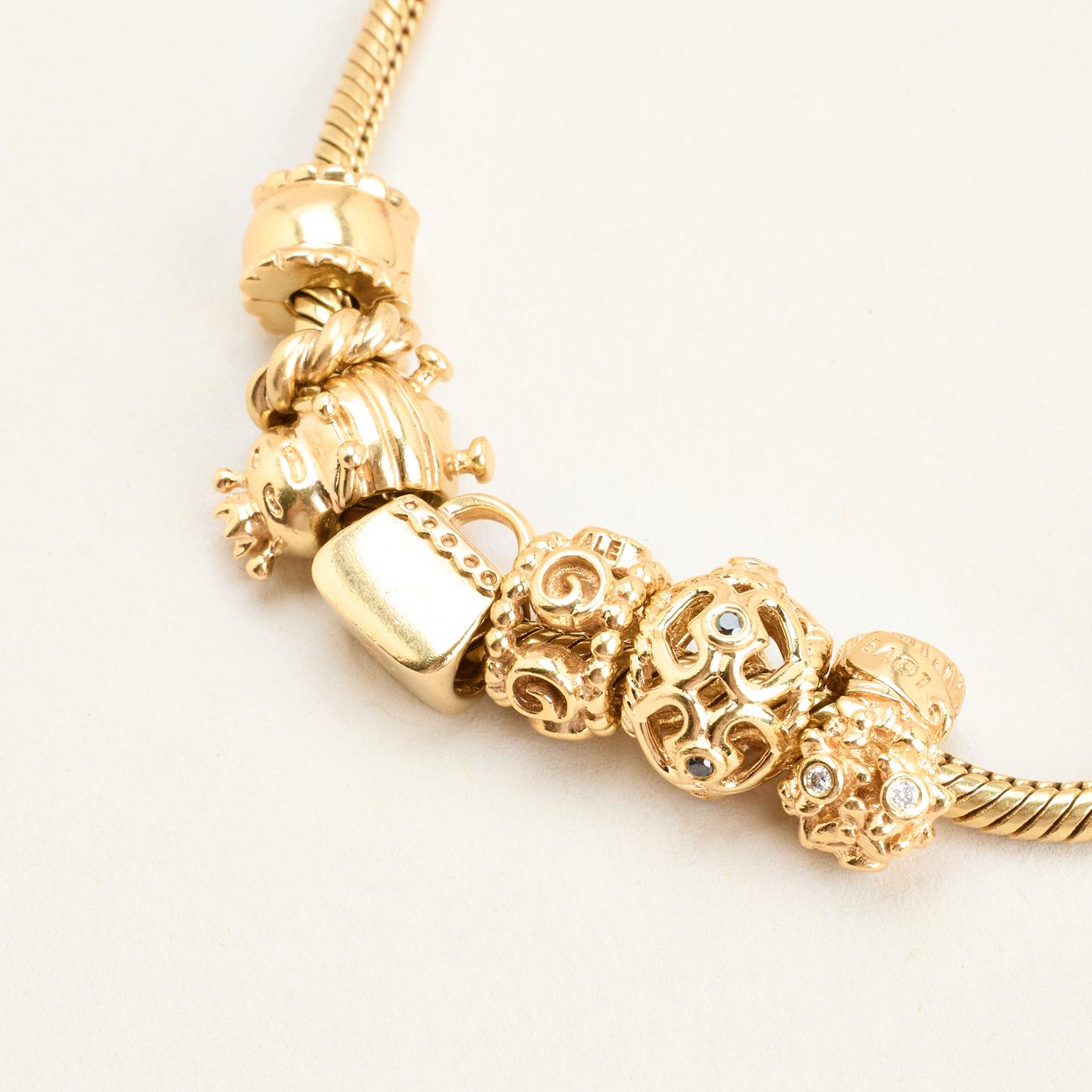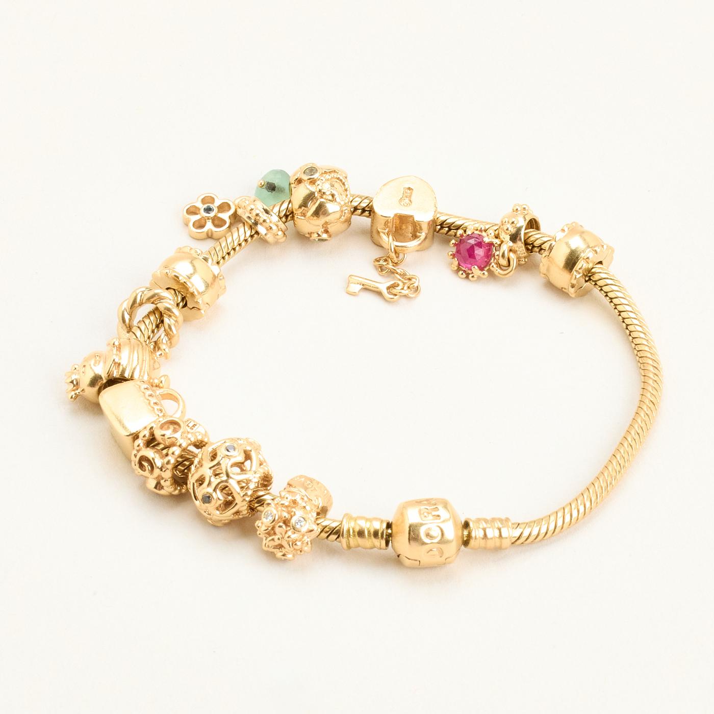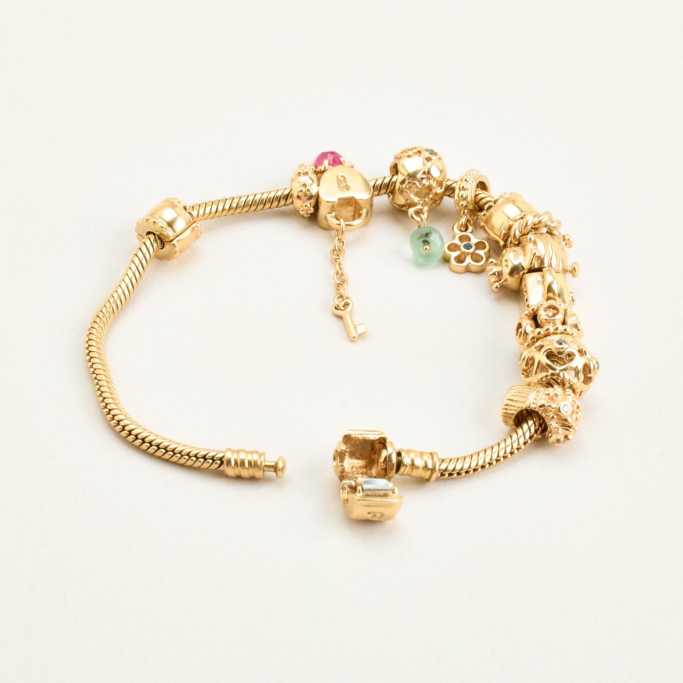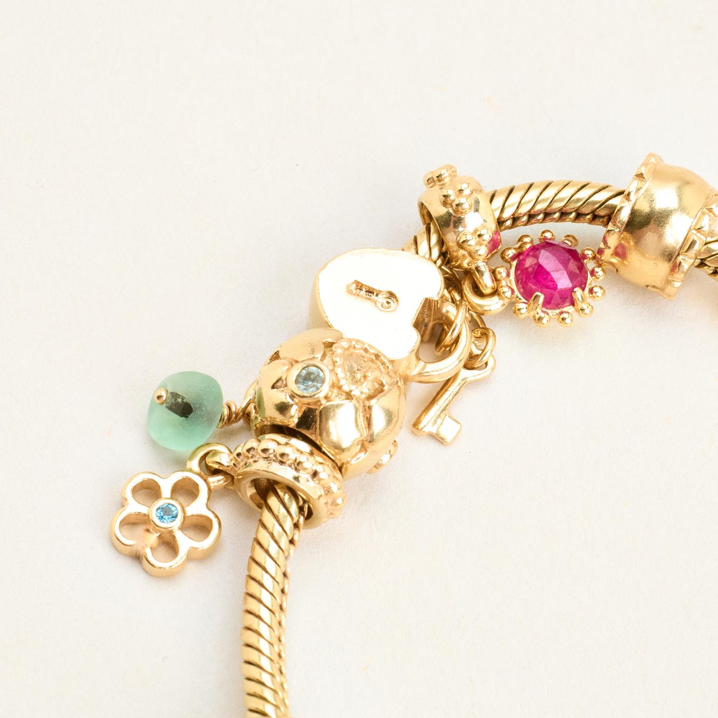 Model: Pandora Moments Slangekæde Charm-armbånd med diamant (0.08 ct) i 14K guld med flerfarvede sten, 20 cm, 49.83 g