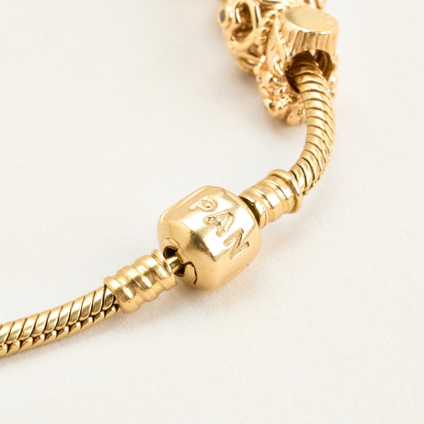 Pandora Moments Slangekæde Charm-armbånd med diamant (0.08 ct) i 14K guld med flerfarvede sten, 20 cm, 49.83 g