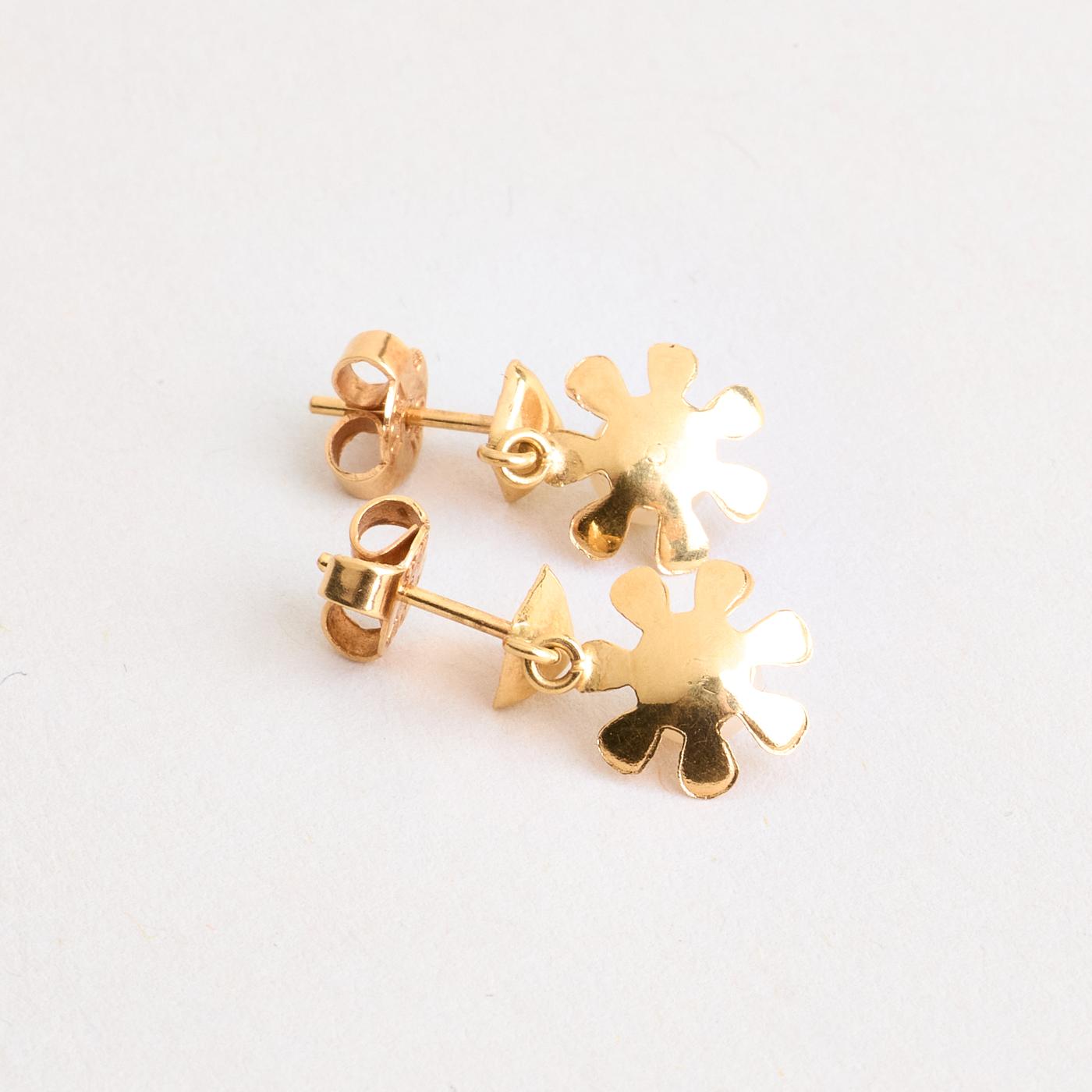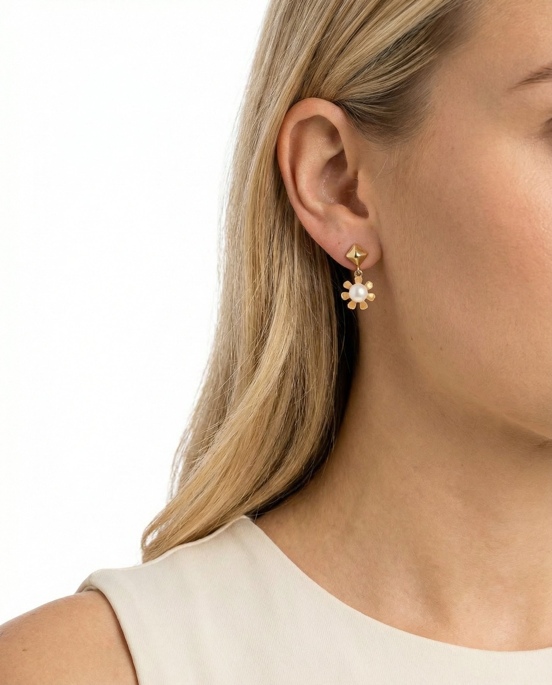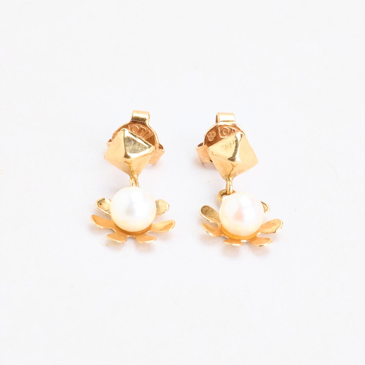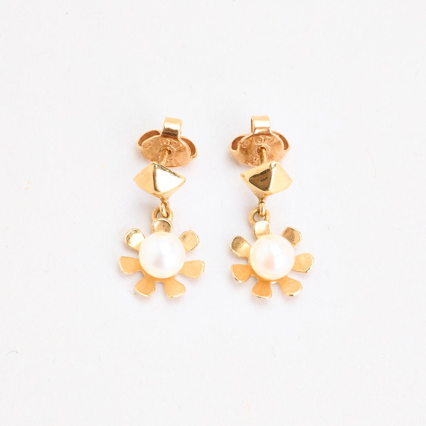 Blomster ørestikker i 18K guld med flere perler, 1.5 cm