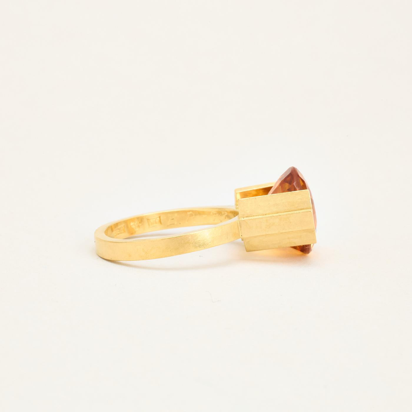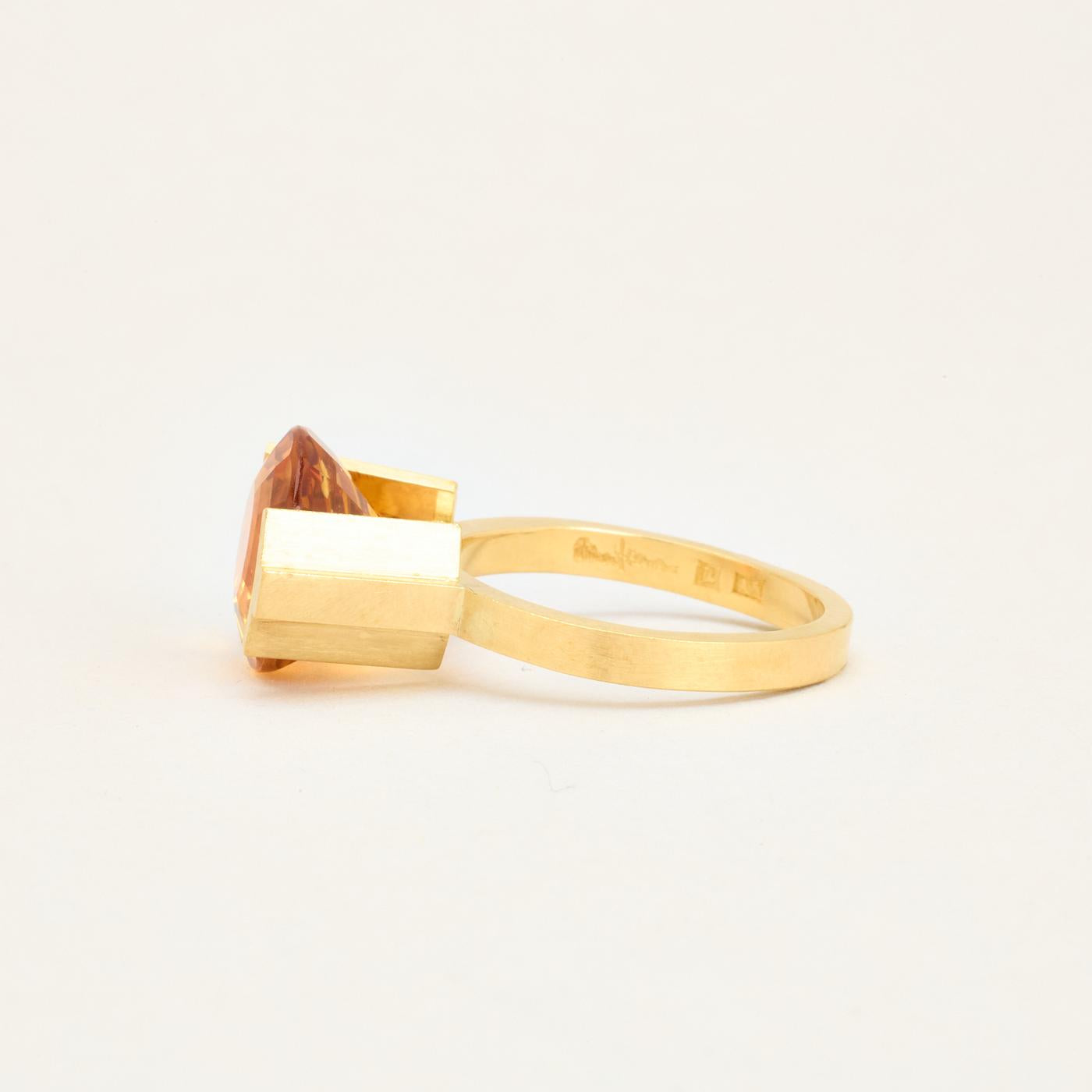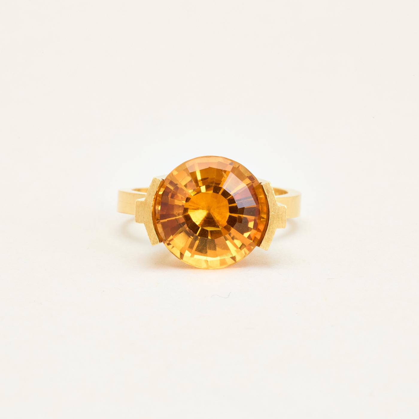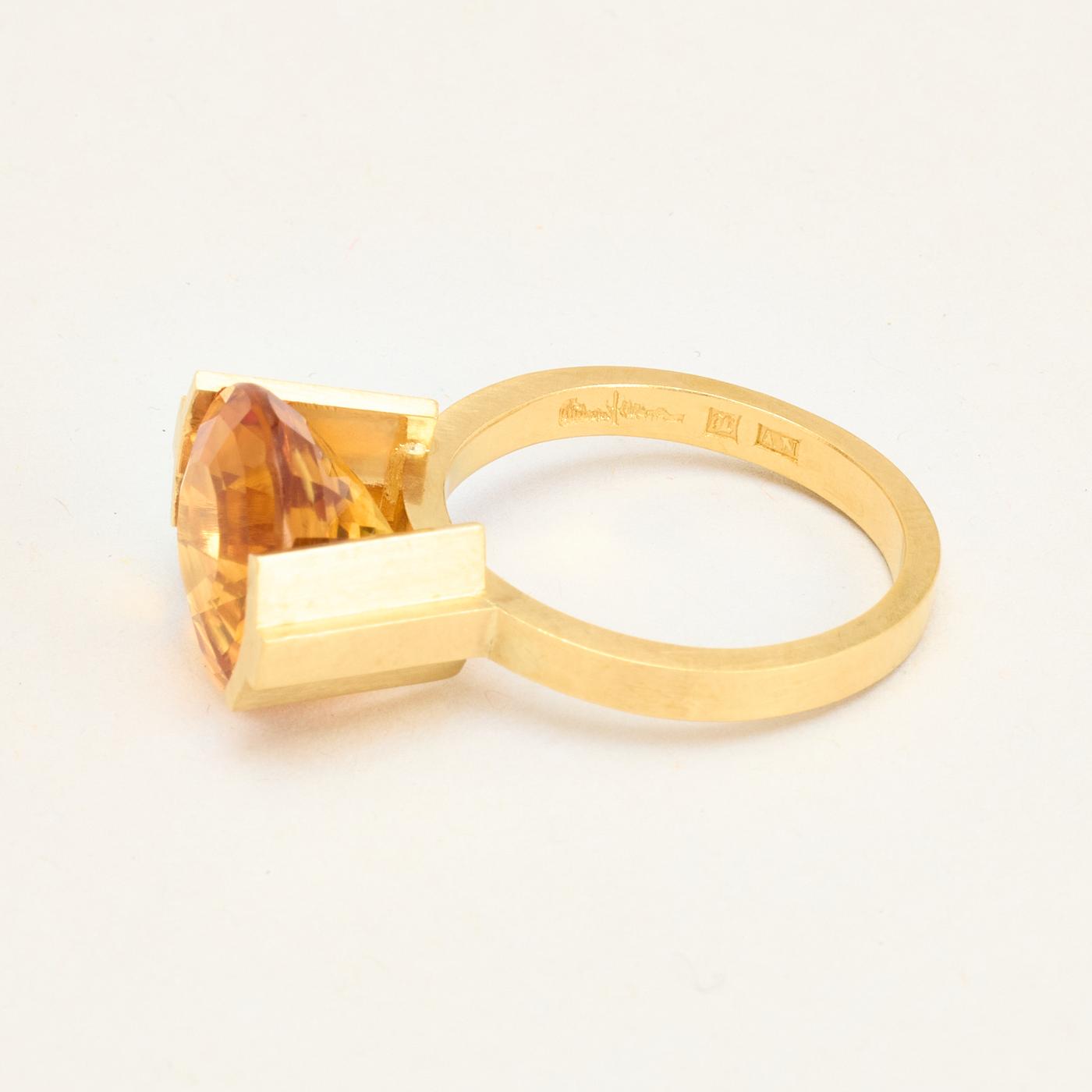 Cocktailring i 18K guld med orange sten, Str. 57