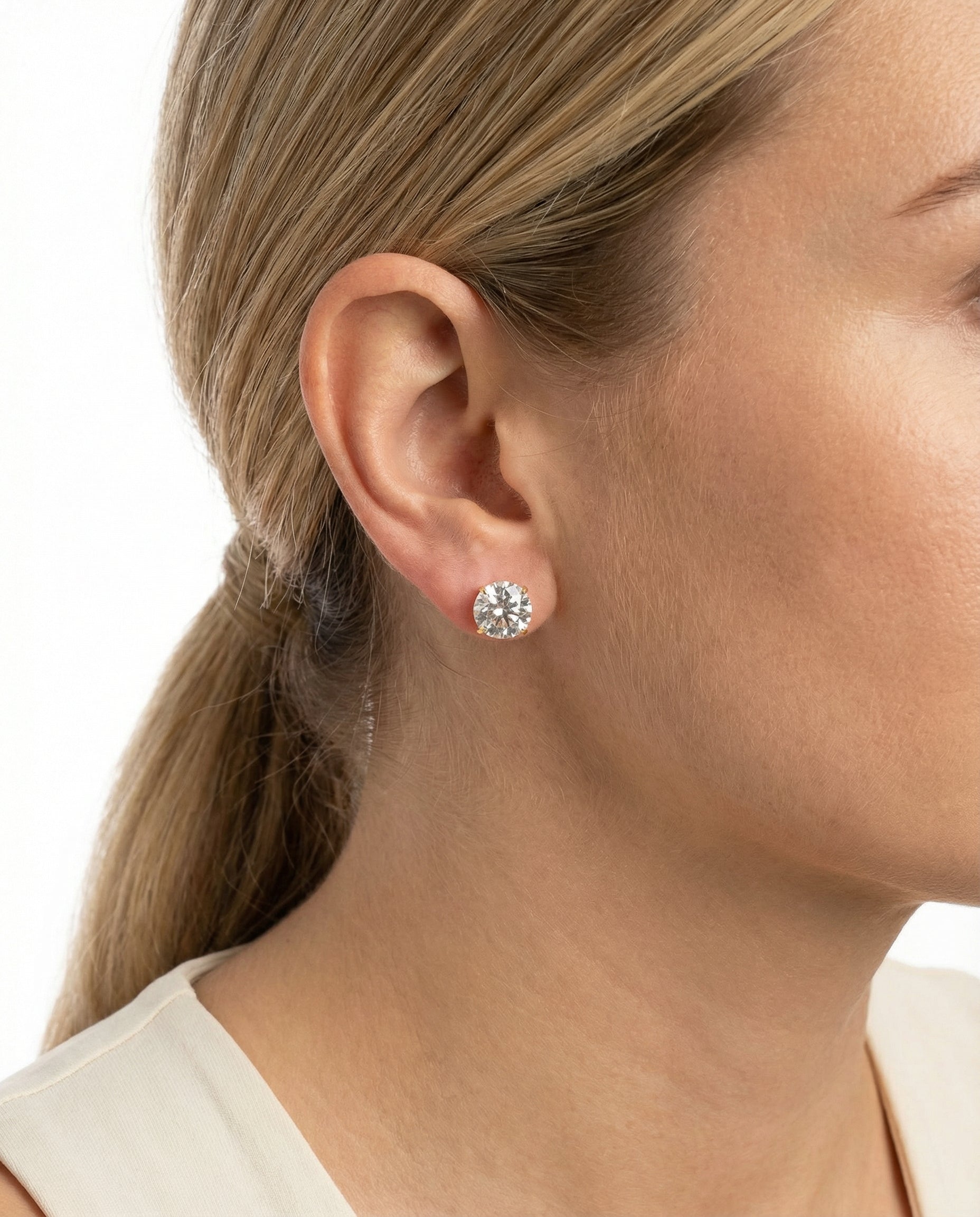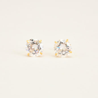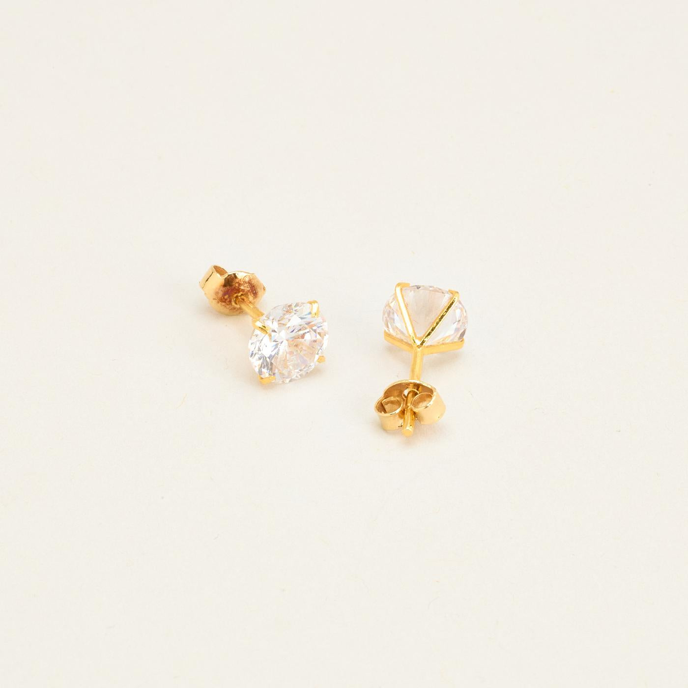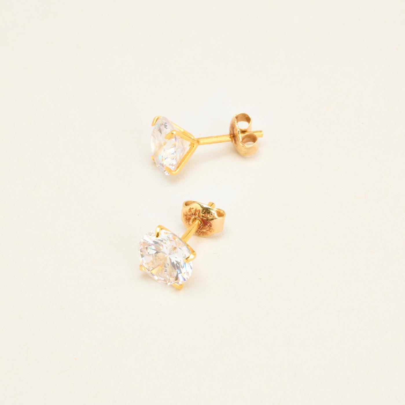 Solitair øreringe i 14K guld med flere zirkoniaer, 0.8 cm