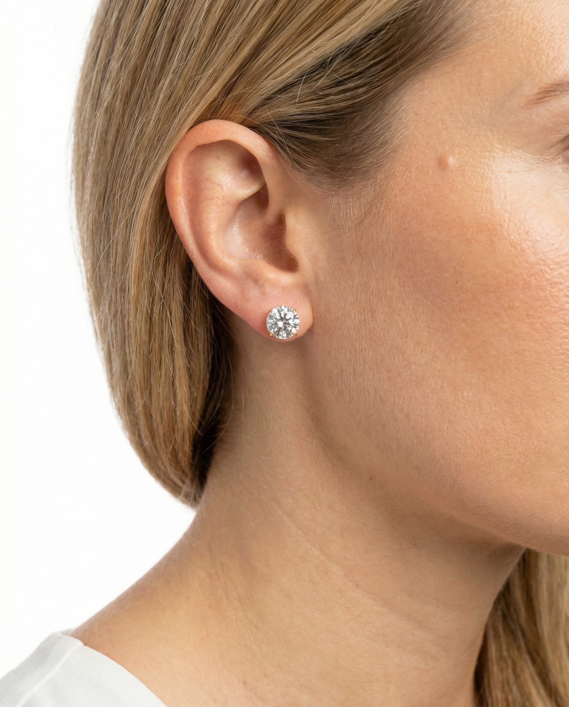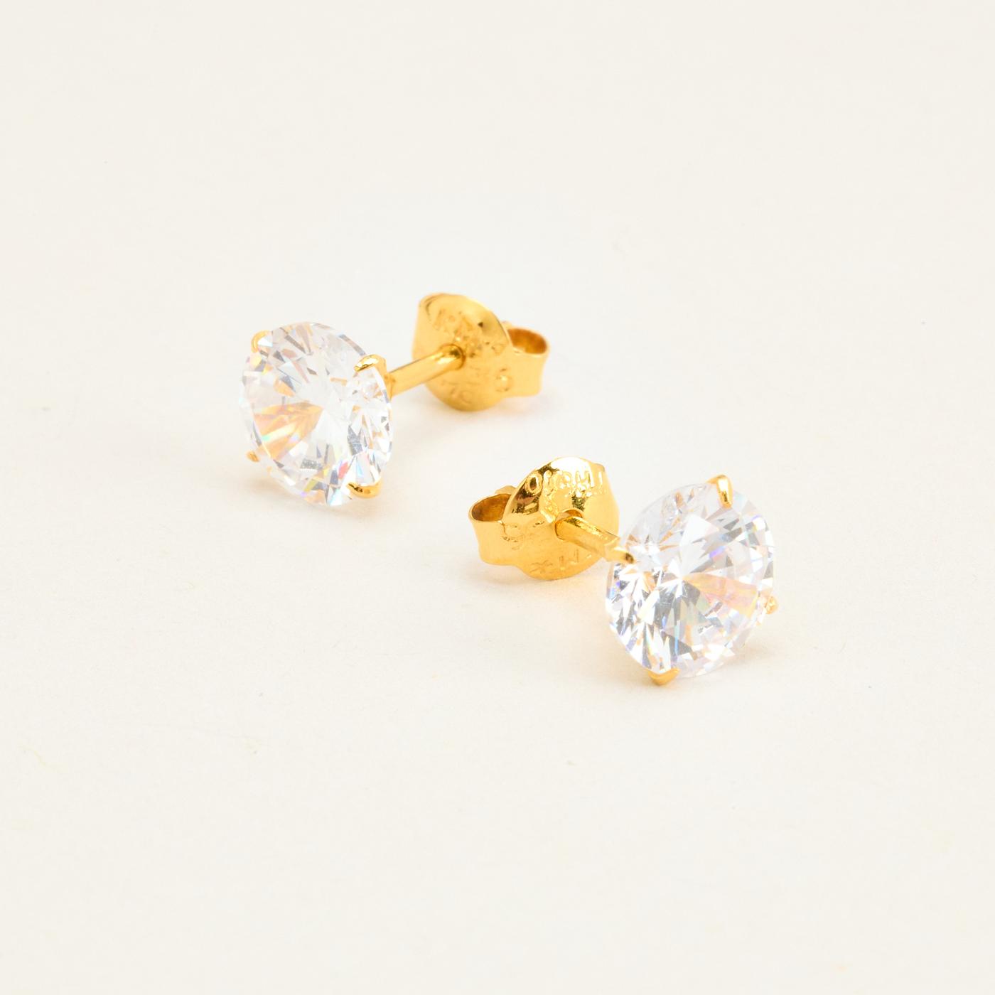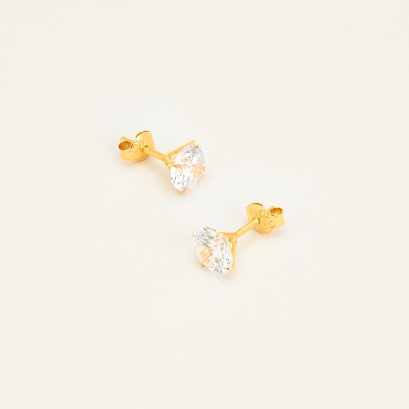Solitair øreringe i 14K guld med zircon, 0.8 cm